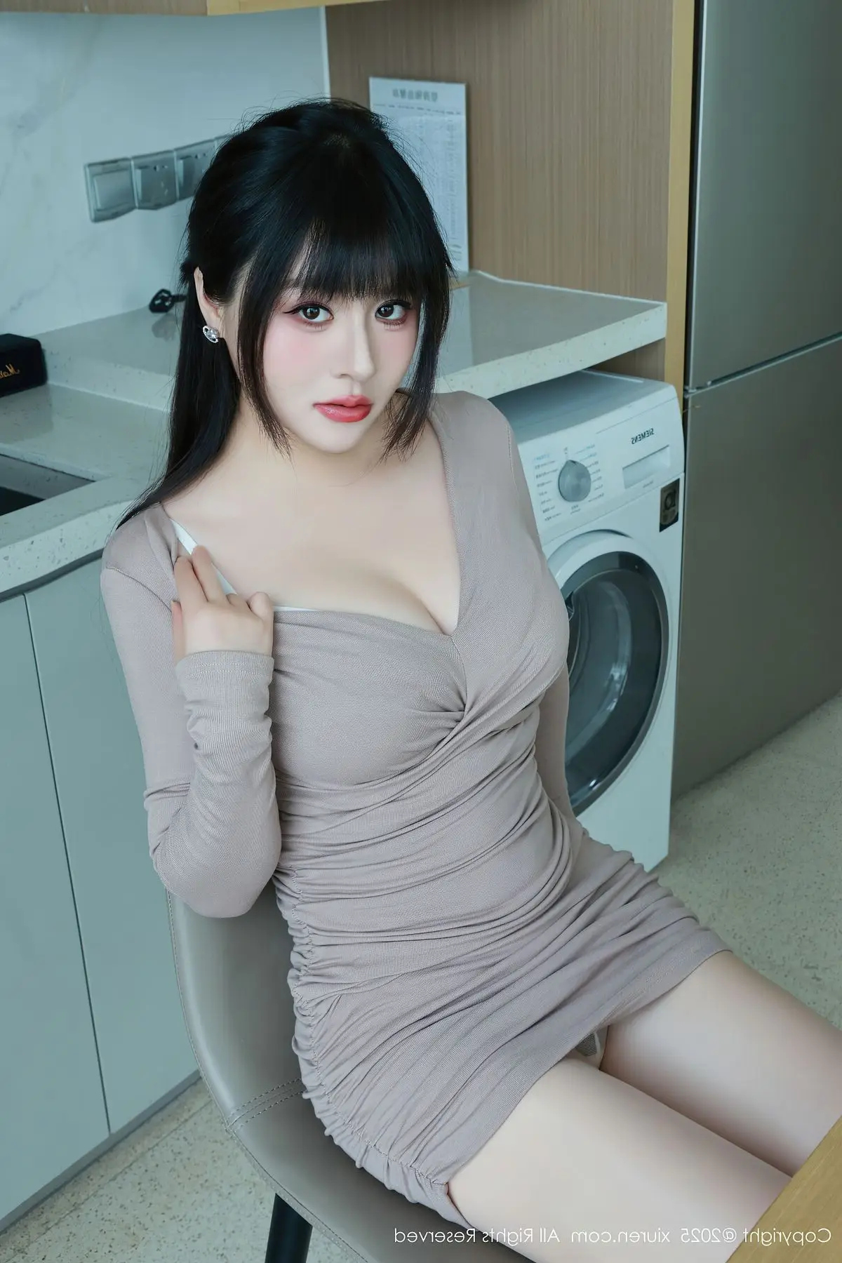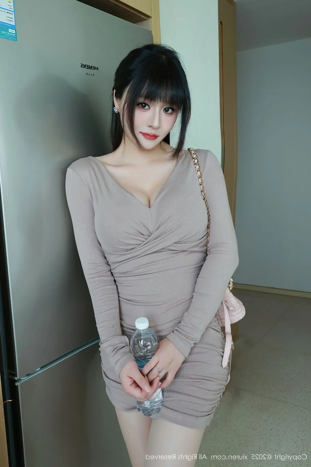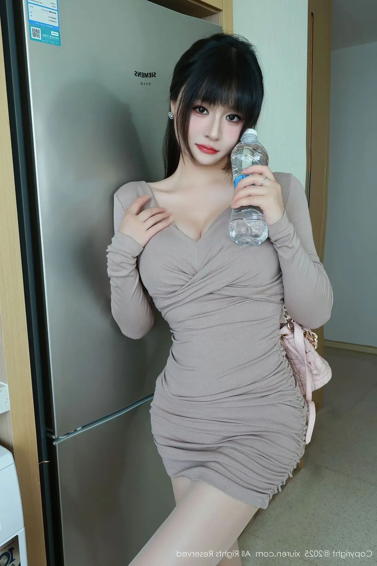This XiuRen No.10718 photoshoot beautifully captures Shen Nan Xi RuRu's elegant presence and captivating allure. Dressed in a form-fitting nude mini dress she radiates confidence showcasing her slender figure and graceful curves. The sophisticated outfit is perfectly complemented by sheer stockings and classic white high heels creating a harmonious and modern fashion statement. A delicate pink handbag adds a touch of charm completing her polished and chic look. Shen Nan Xi RuRu embodies a blend of sweet innocence and mature sophistication making this collection a true highlight of contemporary style.#ShenNanXiRuRu #XiuRen #AsianFashion #ElegantStyle #ModelShoot