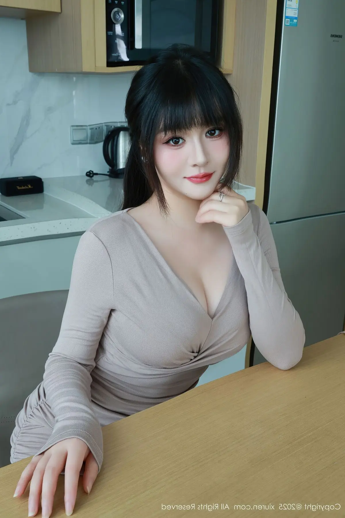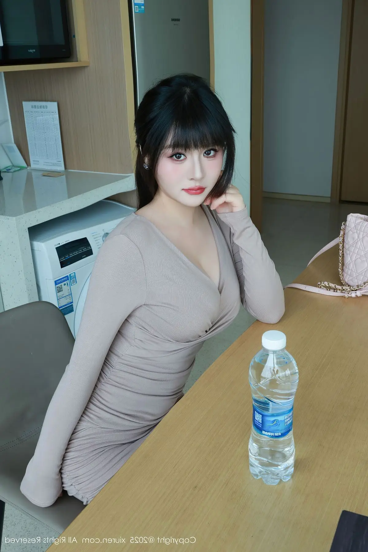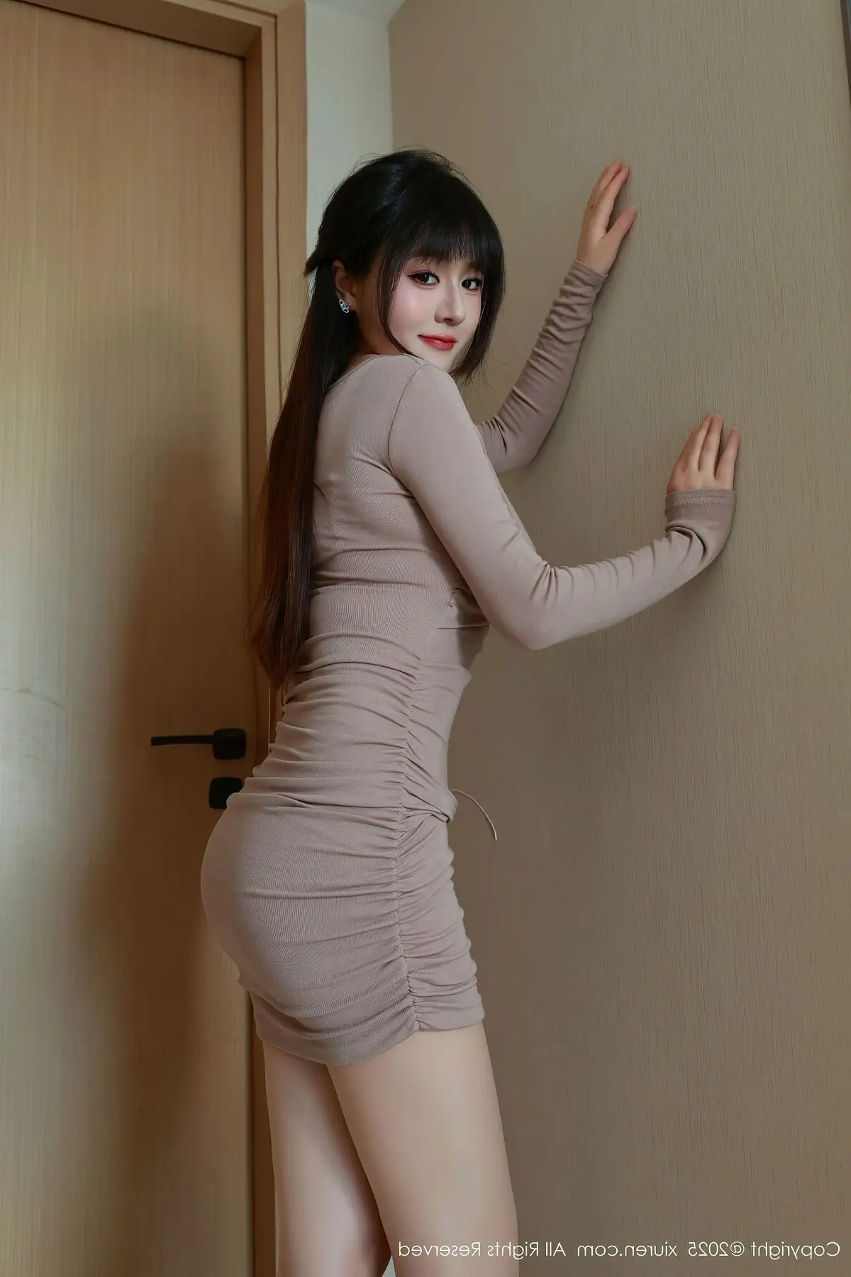 This XiuRen No.10718 photoshoot beautifully captures Shen Nan Xi RuRu's elegant presence and captivating allure. Dressed in a form-fitting nude mini dress she radiates confidence showcasing her slender figure and graceful curves. The sophisticated outfit is perfectly complemented by sheer stockings and classic white high heels creating a harmonious and modern fashion statement. A delicate pink handbag adds a touch of charm completing her polished and chic look. Shen Nan Xi RuRu embodies a blend of sweet innocence and mature sophistication making this collection a true highlight of contemporary style.#ShenNanXiRuRu #XiuRen #AsianFashion #ElegantStyle #ModelShoot