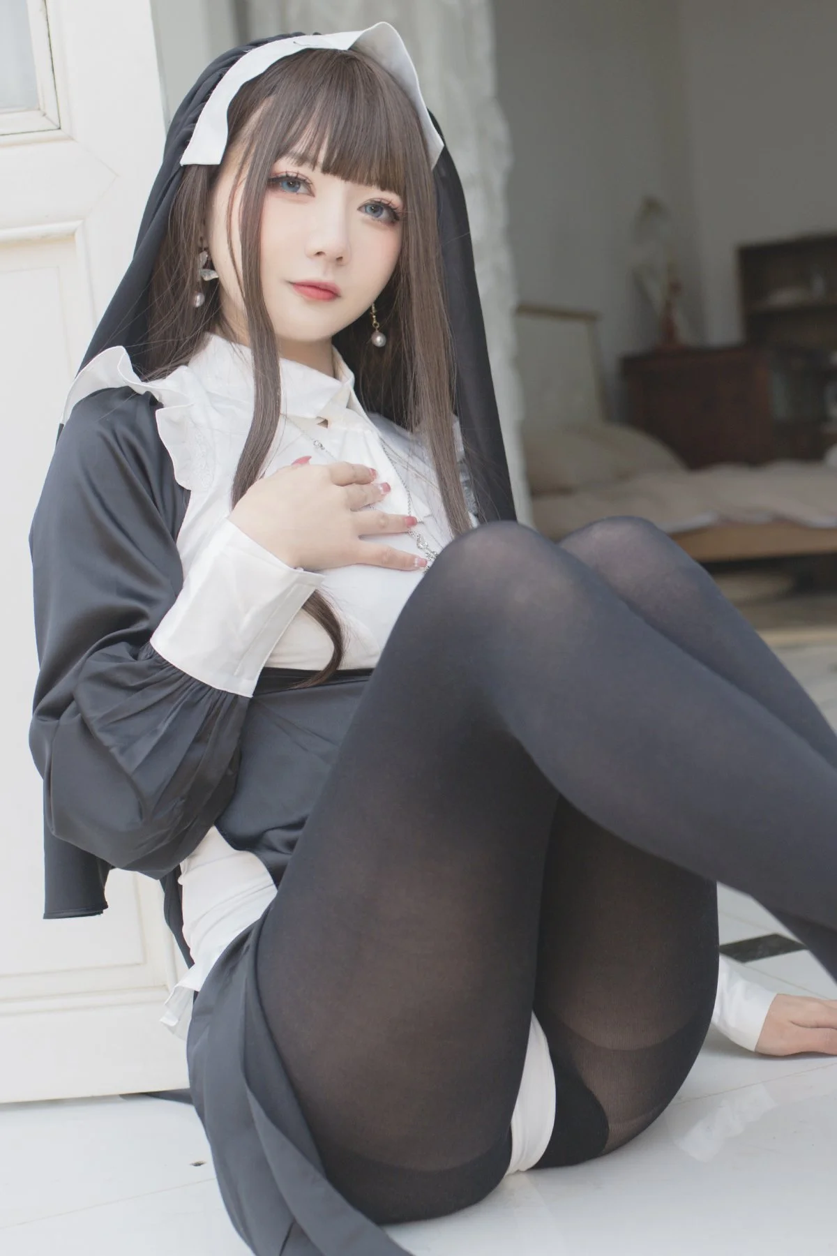 #NunCosplay , #51Jiang , #GothicAesthetic , #PortraitPhotography , #CostumeDesign , #CosplayInspiration , #AestheticPhotography , #StudioPortrait