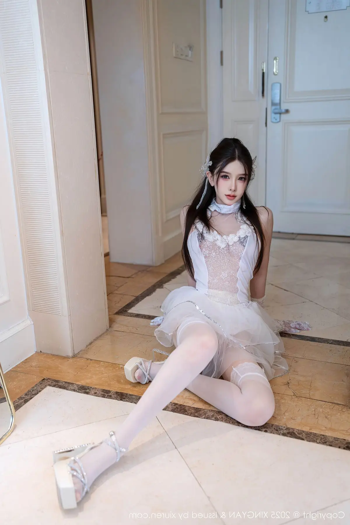 Experience the captivating allure of Li Li Sha in the exclusive XingYan Vol.402 collection. This stunning image showcases Li Li Sha embodying pure elegance and irresistible charm. Dressed in an exquisite sheer white lace gown or lingerie she gracefully accentuates her flawless silhouette. The delicate lace fabric combined with her confident gaze creates a powerful and sophisticated visual appeal. This collection promises to deliver a series of artistic and emotionally rich moments for admirers of sensual and refined beauty. Li Li Sha once again establishes herself as a true icon of grace and allure through these mesmerizing photographs.#LiLiSha #XingYan #Model #WhiteLace #AlluringBeauty