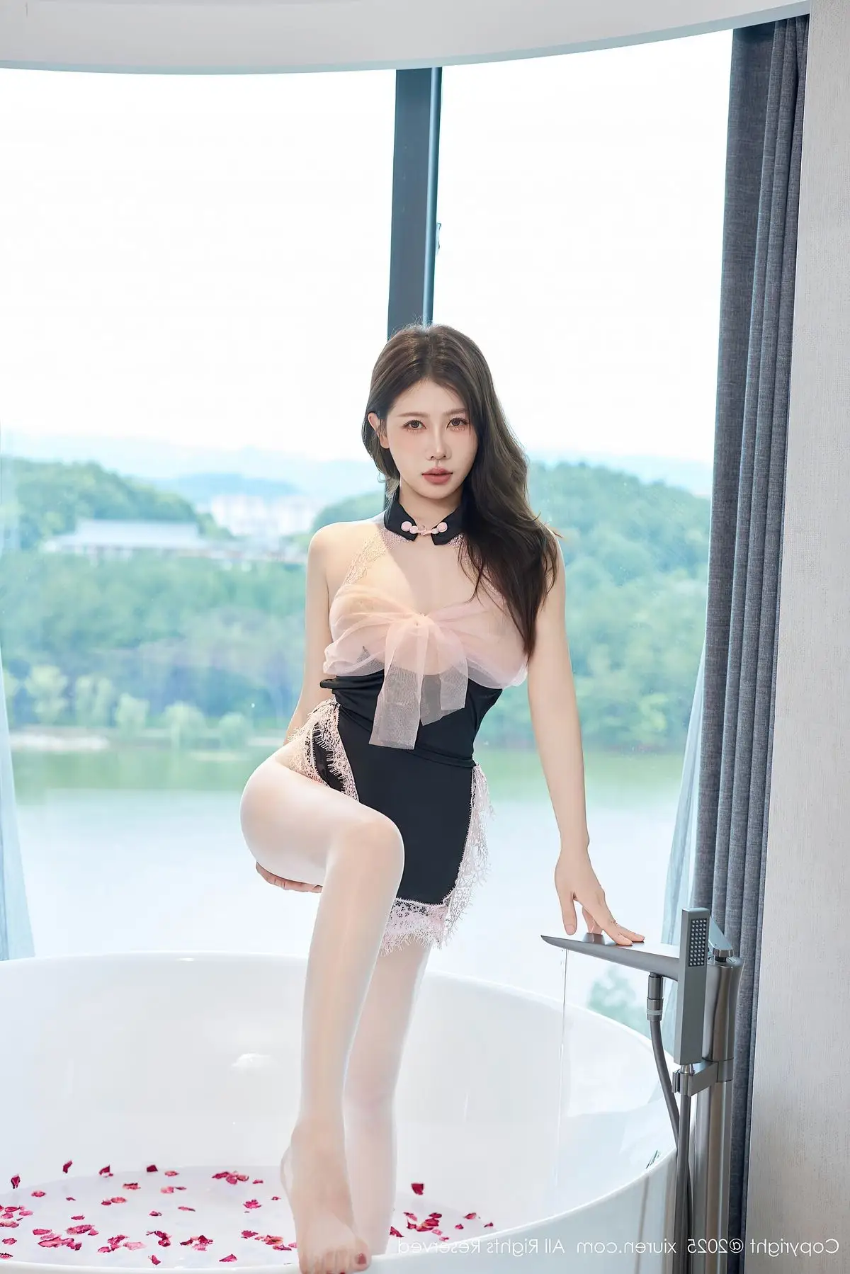 Immerse yourself in the captivating world of Yi Tian Tian featured in the exclusive XiuRen No.10680 collection. This stunning photo captures an enchanting moment as Yi Tian Tian relaxes in a luxurious bathtub filled with romantic rose petals. Dressed in a delicate and sensual outfit, she exudes an irresistible elegance and charm. Her deep gaze and gentle smile perfectly blend with the serene window view of lush green nature, creating a harmonious picture of sophisticated luxury and natural beauty. This emotionally rich photographic work fully showcases the allure of model Yi Tian Tian, offering viewers an unforgettable visual experience.#YiTianTian #XiuRen #RosePetalBath #AlluringBeauty #AsianModel