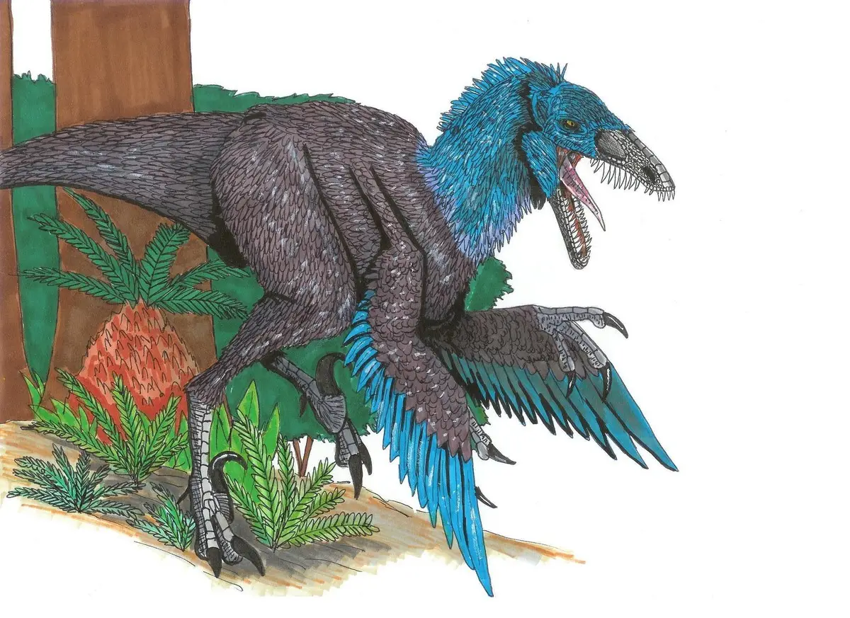 This vivid image transports you to the ancient world of Sinornithosaurus a mysterious feathered dinosaur with an impressive appearance You can clearly see the striking blue feathers on its neck and wings along with its dark mysterious body covered in fine plumage This creature not only possessed a unique look but was also believed to be venomous a rare biological trait among dinosaurs Sinornithosaurus offers deep insight into the close link between dinosaurs and birds showcasing incredible evolution Discoveries about them from Chinese fossils open a window to understanding these intelligent predators and their remarkable adaptability in harsh environments millions of years ago#Sinornithosaurus #FeatheredDinosaur #VenomousDinosaur #CretaceousPeriod #DinosaurEvolution
