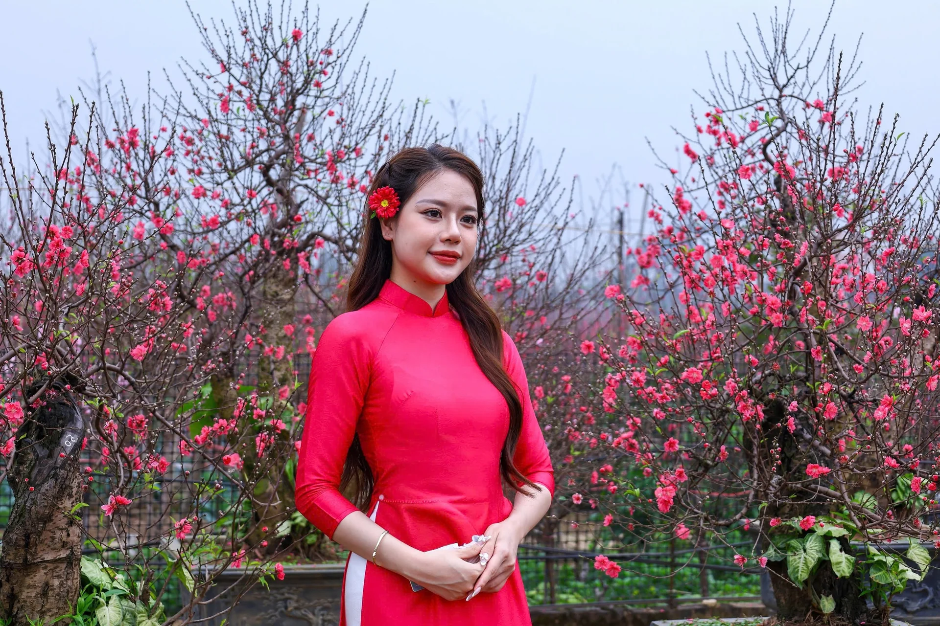 Immerse yourself in the enchanting atmosphere of Hanoi during the most beautiful time of the year—the Spring season. This stunning visual captures the essence of 'Du Xuan,' the traditional Vietnamese practice of taking a spring excursion to welcome the Lunar New Year. Dressed in a graceful Ao Dai, the iconic national garment of Vietnam, the scene reflects a perfect blend of timeless elegance and cultural heritage. The vibrant red and white tones of the dress symbolize luck and purity, standing out beautifully against the historic backdrop of the Hanoi Old Quarter.Walking through the ancient streets of Hanoi during the Tet Festival is a sensory delight. From the red lanterns swaying in the breeze to the bustling markets filled with peach blossoms, every corner tells a story of tradition. For travelers and fashion enthusiasts alike, experiencing this festive spirit is a must-do when visiting Southeast Asia. Whether you are exploring the hidden alleys of Phố Cổ or capturing the perfect Instagram moment, the Ao Dai offers a unique way to connect with local customs.