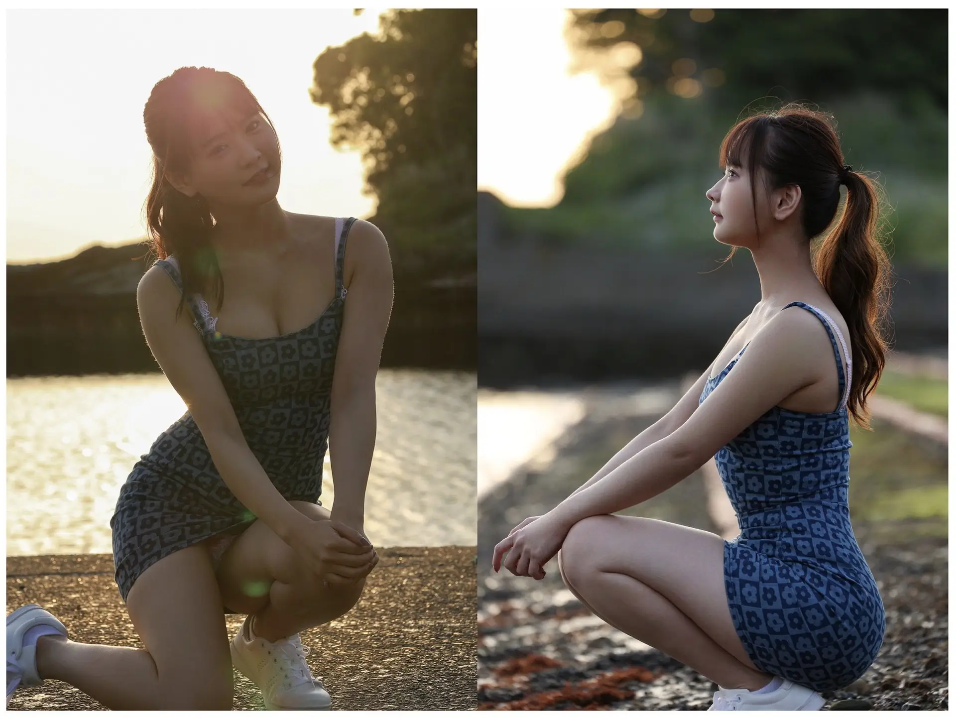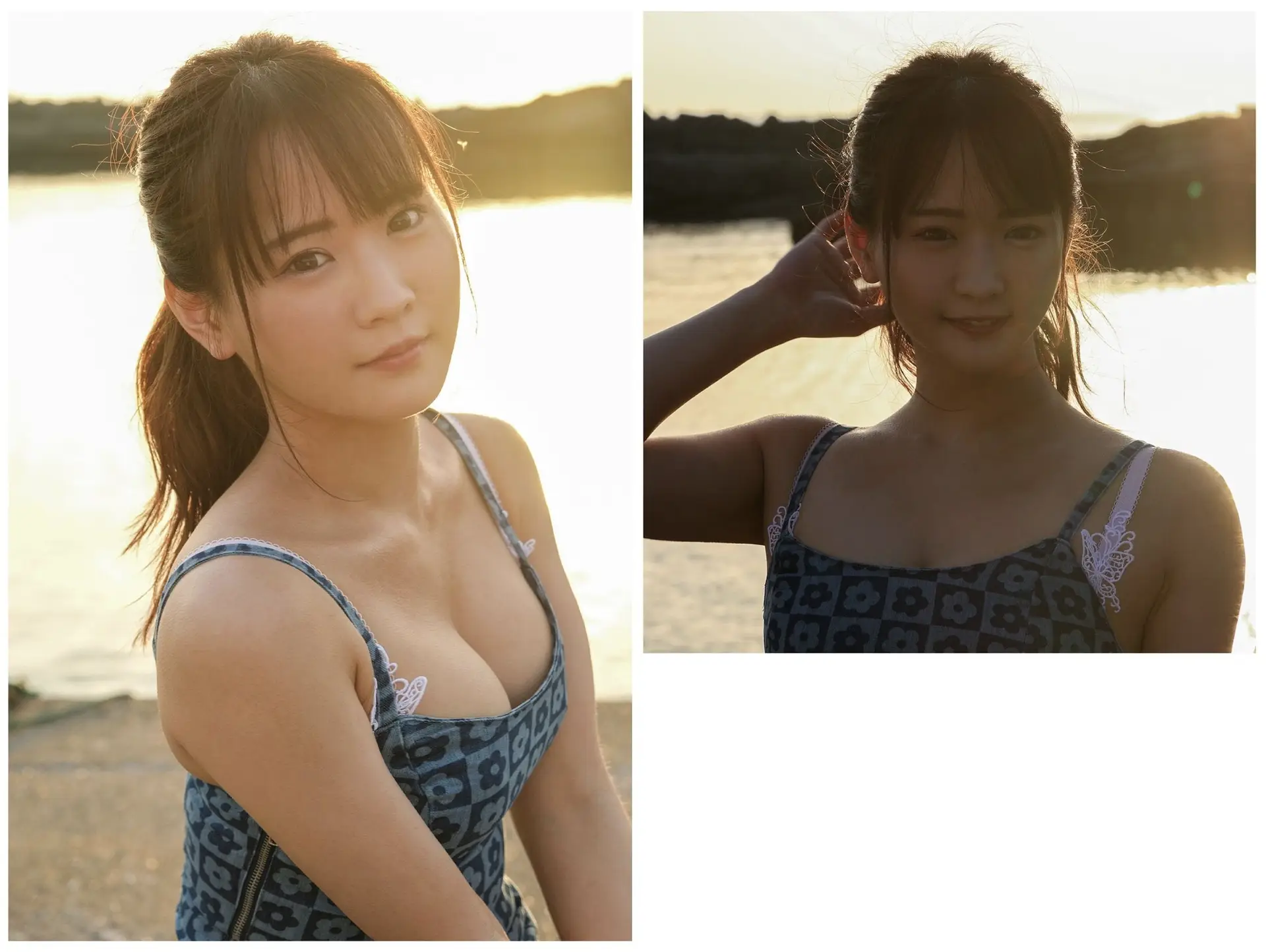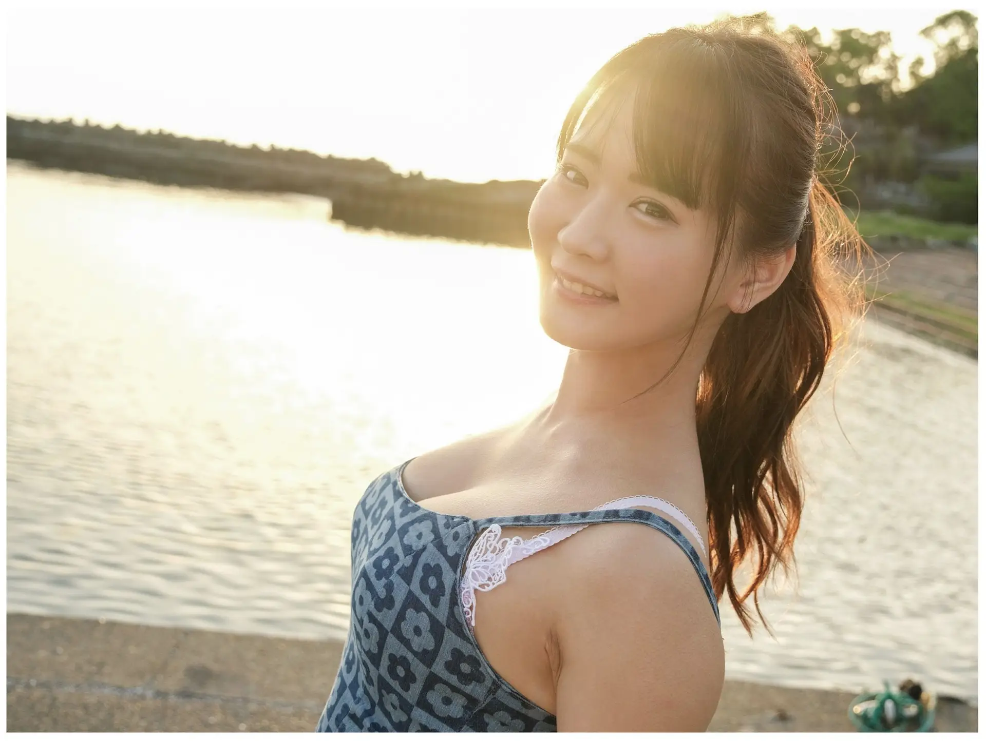 This captivating image offers a mesmerizing blend of Narumi Hirose's alluring beauty and the raw vitality of nature. With an expressive and enchanting gaze, Narumi showcases her natural charm, seemingly embraced by the wind, creating a moment that is both delicate and powerfully seductive. In stark contrast to her gentle presence is the majestic backdrop of a rapidly flowing stream, its waters rushing amidst lush green foliage. This striking juxtaposition not only accentuates Narumi's exquisite beauty but also evokes a profound sense of harmony between humanity and the untamed natural world. It is an emotionally rich piece of art, inviting contemplation on the multifaceted nature of beauty.
