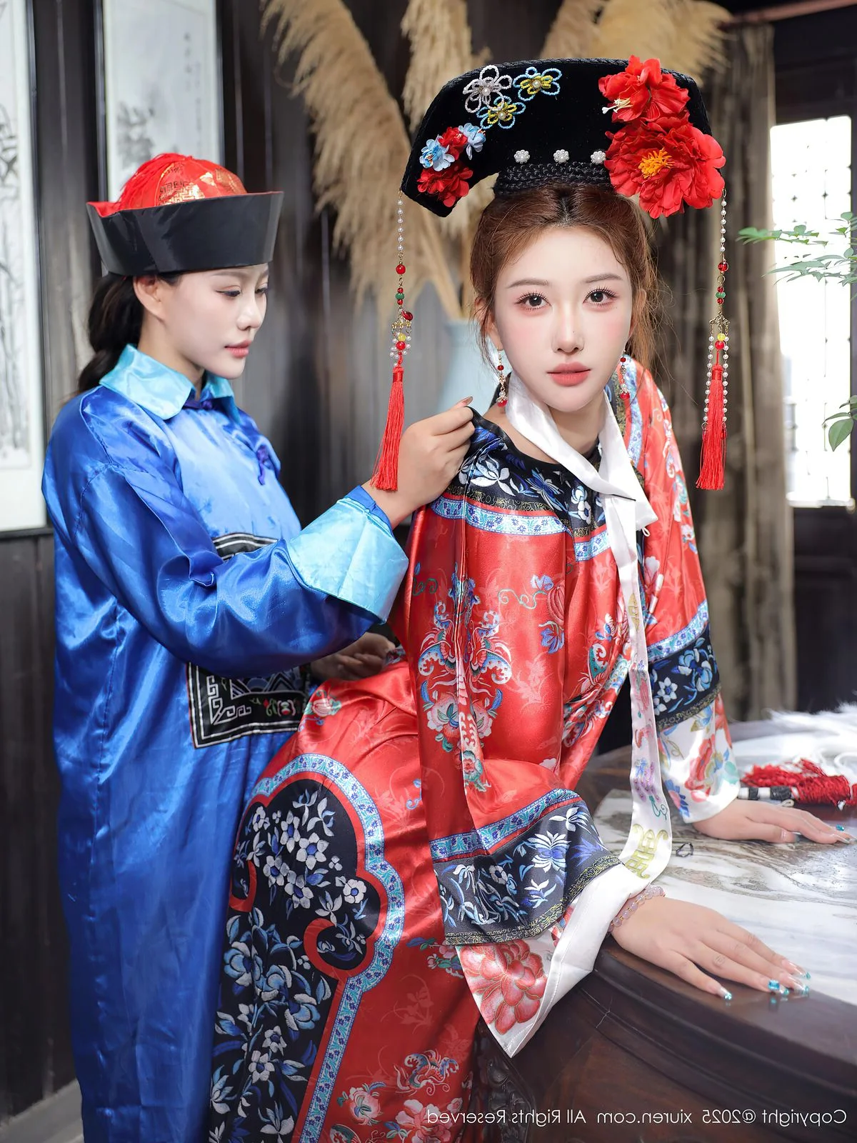 Step into a world of nostalgic grace with the captivating presence of Jin Yun Xi Yuki. Dressed in exquisite Qing Dynasty inspired attire, Yuki embodies a perfect blend of gentleness and nobility. The lustrous red silk adorned with intricate traditional embroidery creates a stunning visual contrast against the deep wooden tones of the antique interior. Her gaze is filled with a subtle poetic melancholy that draws the viewer into a silent narrative of the past. The elaborate headpiece with vibrant floral accents beautifully frames her delicate features, showcasing a sophisticated appreciation for Oriental aesthetics. Every detail from the soft ambient lighting to the classic furniture transforms the scene into a cinematic moment where cultural heritage meets modern artistic expression. It is a breathtaking tribute to timeless style and the enduring charm of classical beauty that resonates with anyone who loves historical fashion and visual storytelling.#TimelessElegance #AsianAesthetic #TraditionalCouture #JinYunXiYuki #ArtisticPhotography