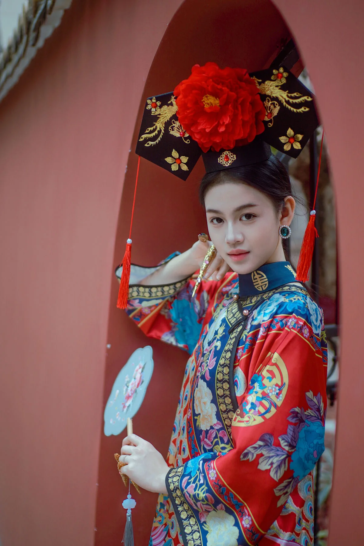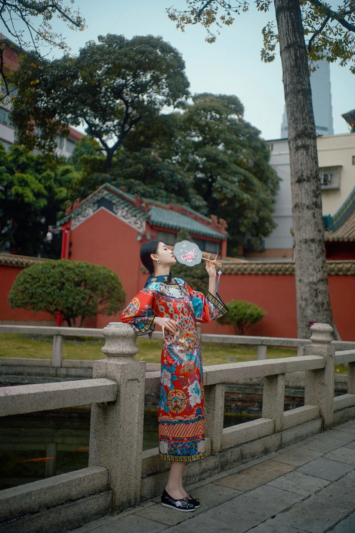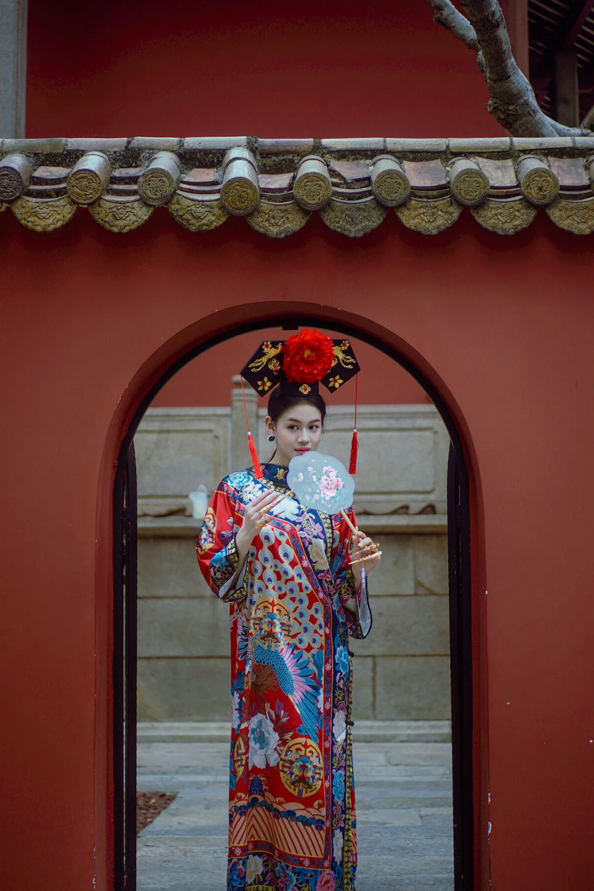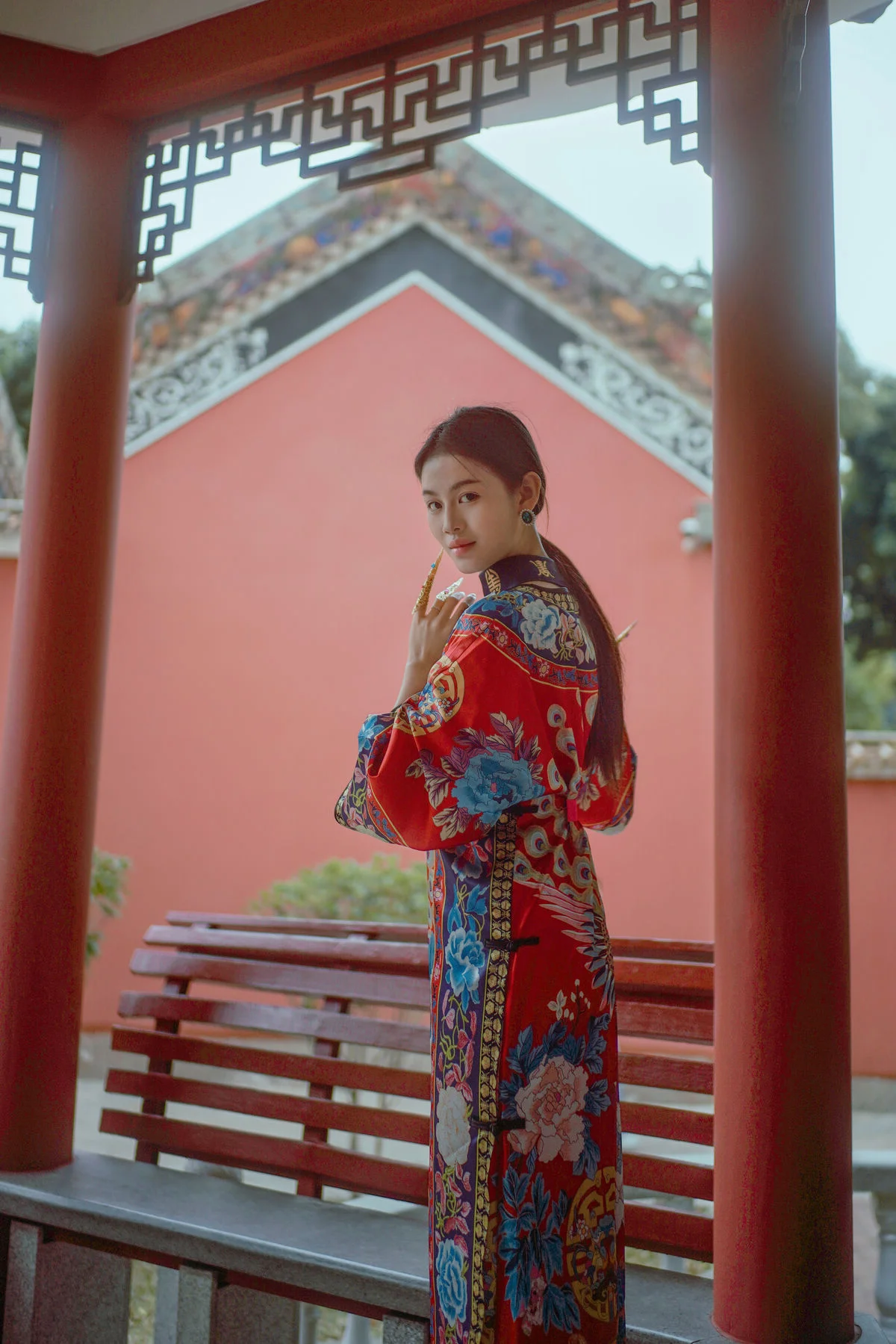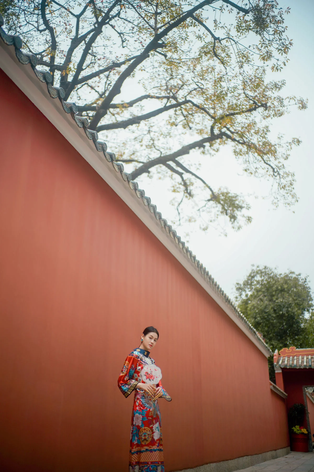 Stepping into the world of YiTuYu Vol.8871 feels like entering a classic cinematic scene where Man Li embodies grace and sophistication. The deep red wall a signature element of traditional palace architecture serves as a powerful backdrop that bridges the gap between heritage and modern aesthetics. Man Li wears an exquisitely patterned Qipao featuring vibrant floral embroidery that catches the soft natural light beautifully. Her poised silhouette complemented by a delicate round fan evokes a sense of nostalgia and high class charm. The composition is masterfully balanced with the minimalist red expanse contrasted against the intricate details of her attire and the gentle shadows cast by the trees above. It is a visual journey that celebrates the profound beauty of Eastern culture capturing a moment of stillness and artistic depth that resonates long after the first look. This collection is a perfect blend of fashion and visual storytelling.#AsianAesthetics #QipaoStyle #YiTuYu #FineArtPhotography #ManLi #CulturalHeritage