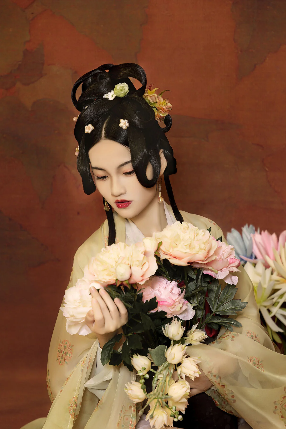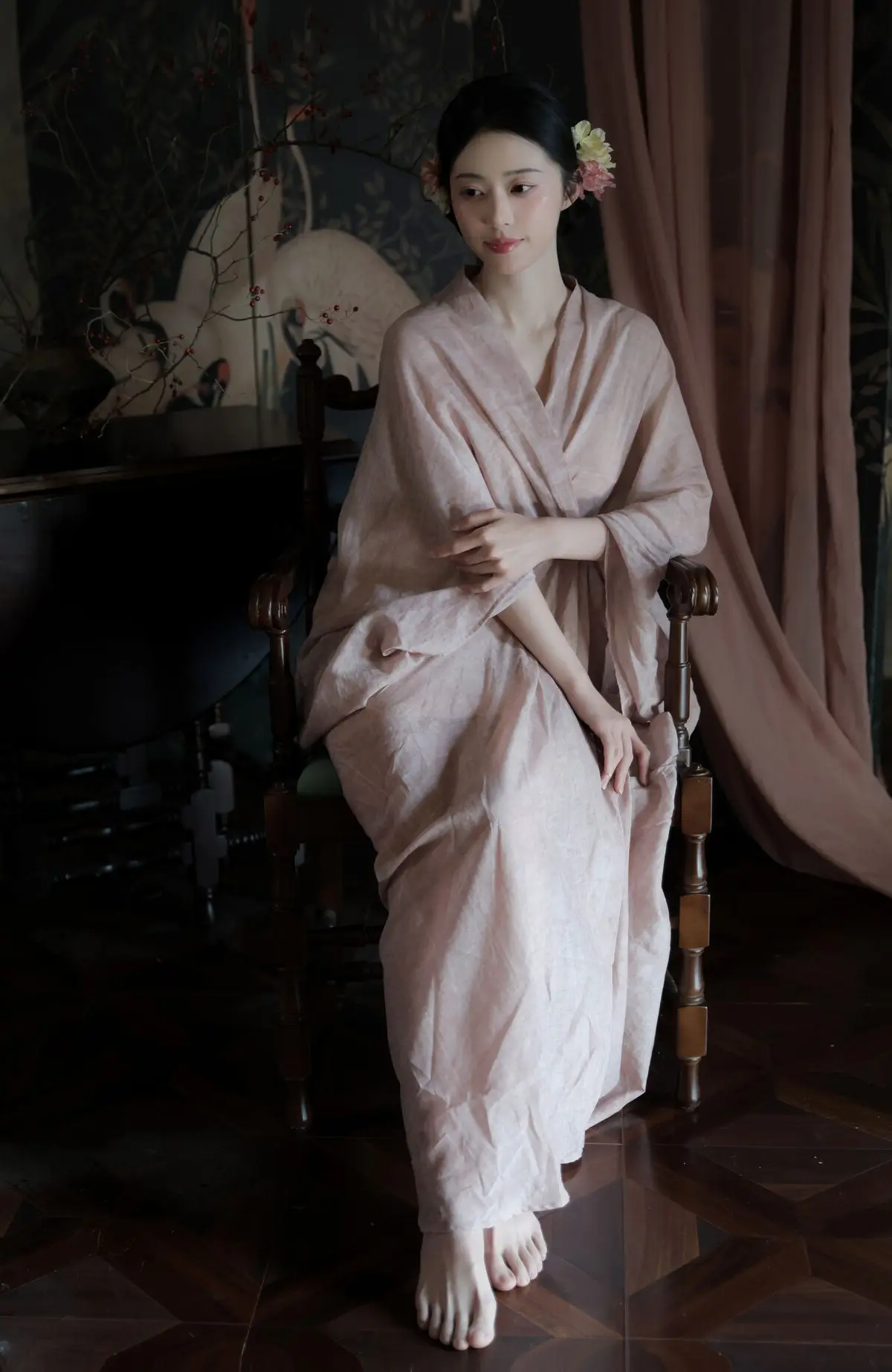 From the meticulous hair styling to the authentic accessories, every element in these images tells a story of tradition preserved in the modern era. Whether you are a designer looking for textile inspiration or a photography lover seeking creative indoor compositions, this set provides a wealth of visual beauty. Immerse yourself in the sophisticated charm of Shan Shan as she brings the legendary elegance of the Hanfu era to life in this unique and captivating digital art collection.
