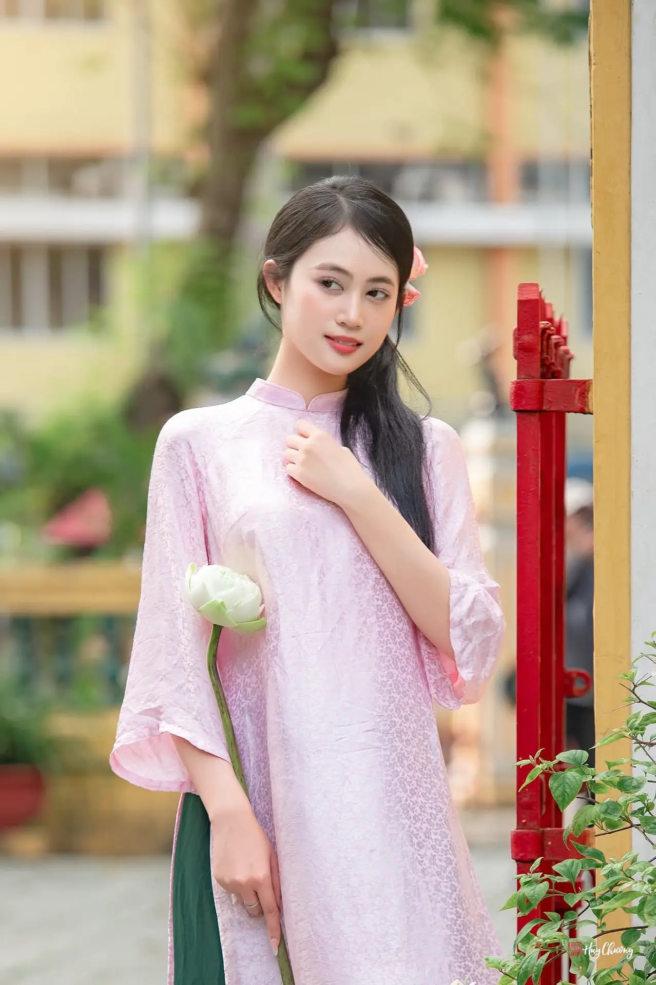 #AoDai #VietnameseBeauty #LotusFlower #TraditionalDress #AsianGrace