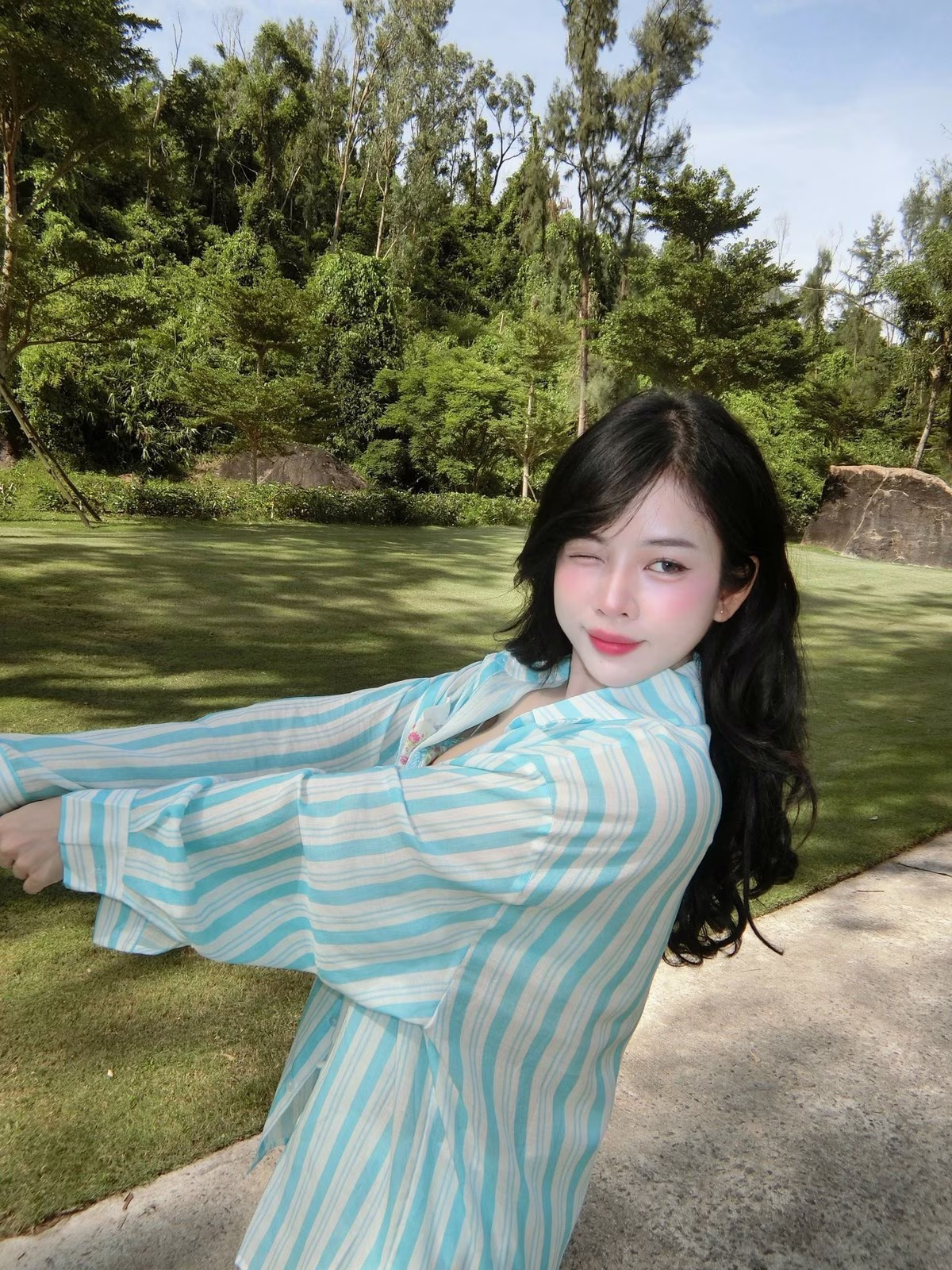 Hot girl Linh Truong showcases her flawless figure during a sunny beach trip Dressed in a unique black one-piece bikini she exudes a captivating and alluring beauty The form-fitting swimwear highlights her sensual curves and confident demeanor against the vast blue ocean backdrop This image not only reflects her exquisite beach fashion sense but also her radiant self-assurance These are undoubtedly memorable moments attracting every gaze from fans and beach fashion enthusiasts Linh Truong truly stands as the center of attention with her distinct style and irresistible charm