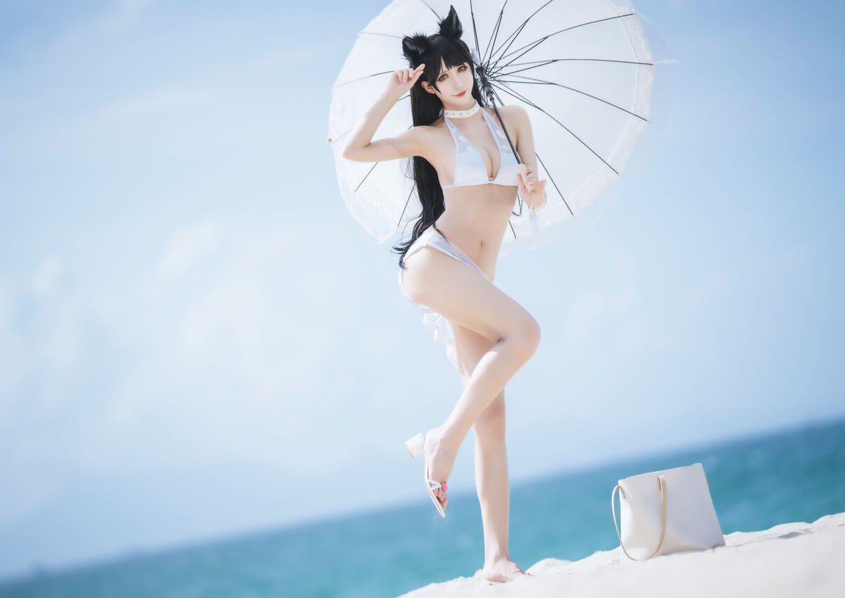 Immerse yourself in the stunning Azur Lane Atago cosplay by Masaki Ya Qi a magnificent blend of character allure and breathtaking natural scenery. Coser Masaki Ya Qi masterfully embodies the charming Atago gracing the golden sands and crystalclear blue waters in a pristine white bikini. Each photograph radiates a confident and captivating aura sometimes playful sometimes profoundly alluring. The vibrant sunlight beautifully accentuates her healthy and dynamic beauty bringing the character to life. More than just a cosplay collection this is an artistic showcase that perfectly captures the essence of an endless summer and Atagos distinctive charm guaranteed to mesmerize every viewer.