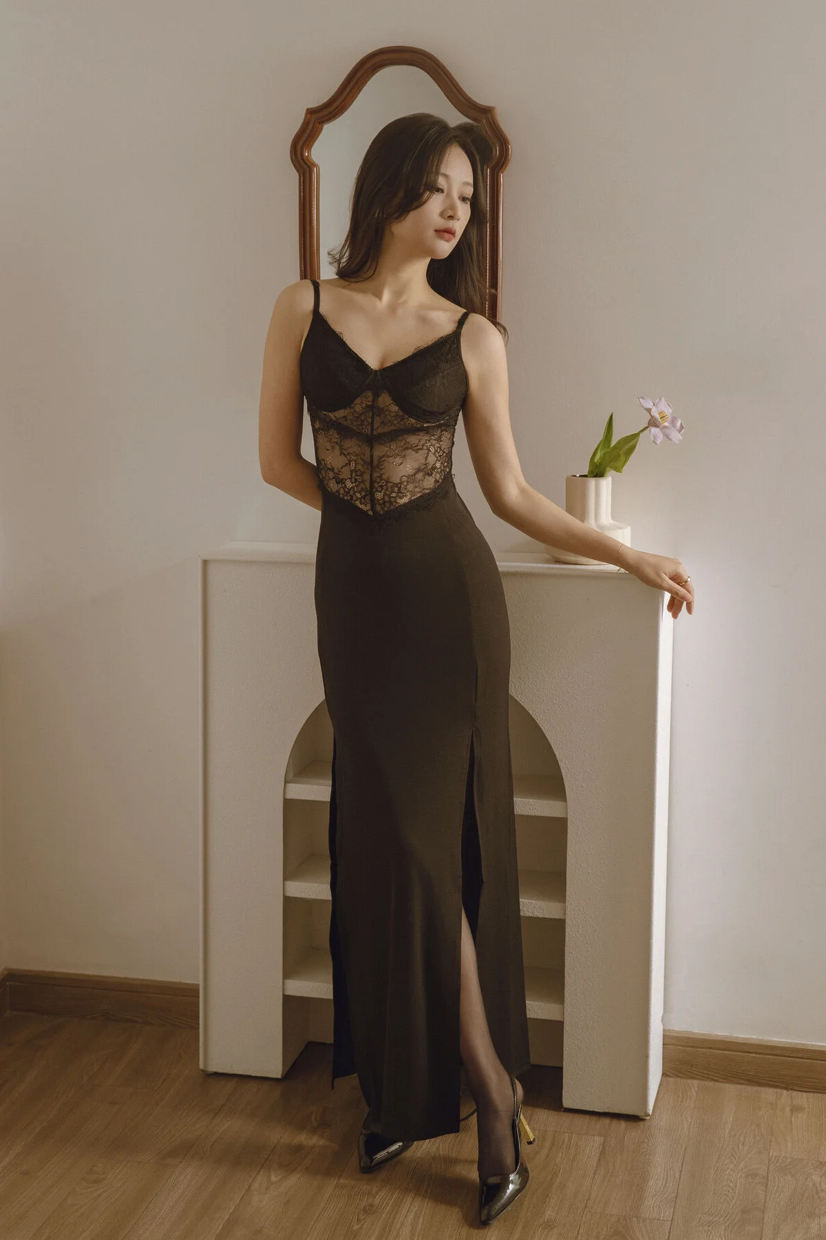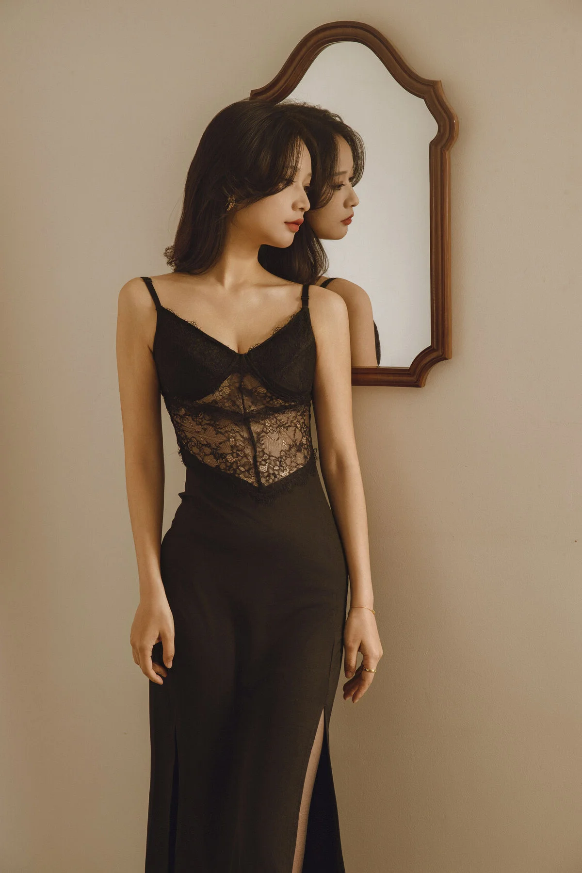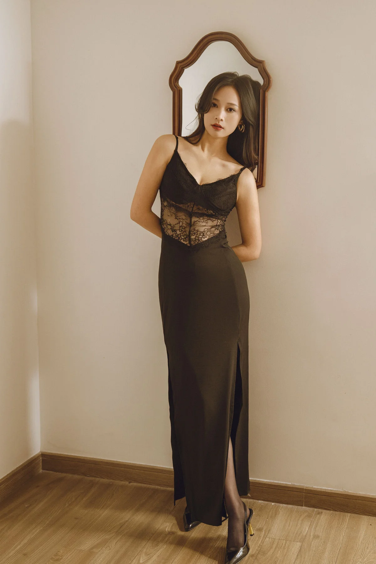 Cheng Zi Vol.8797: Elegant Glamour in a Black Lace Dress – YiTuYu Art Language