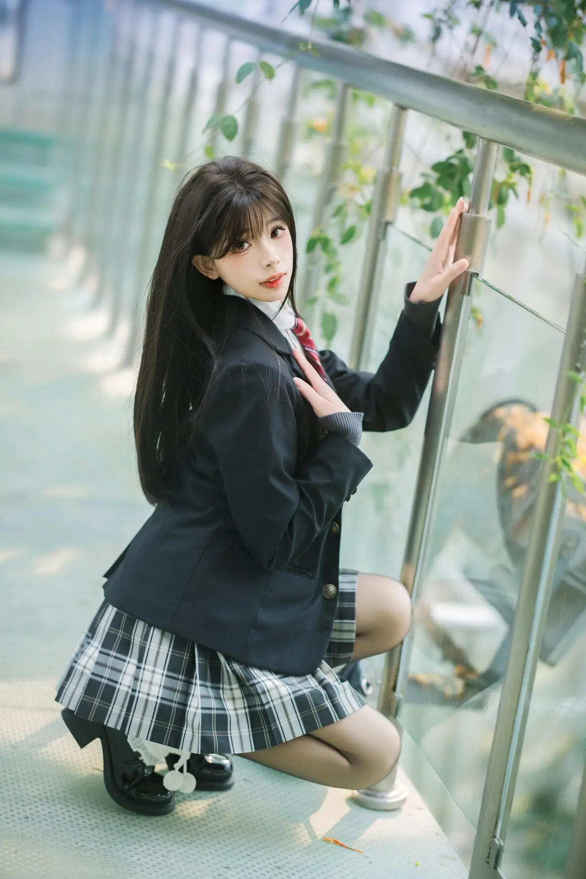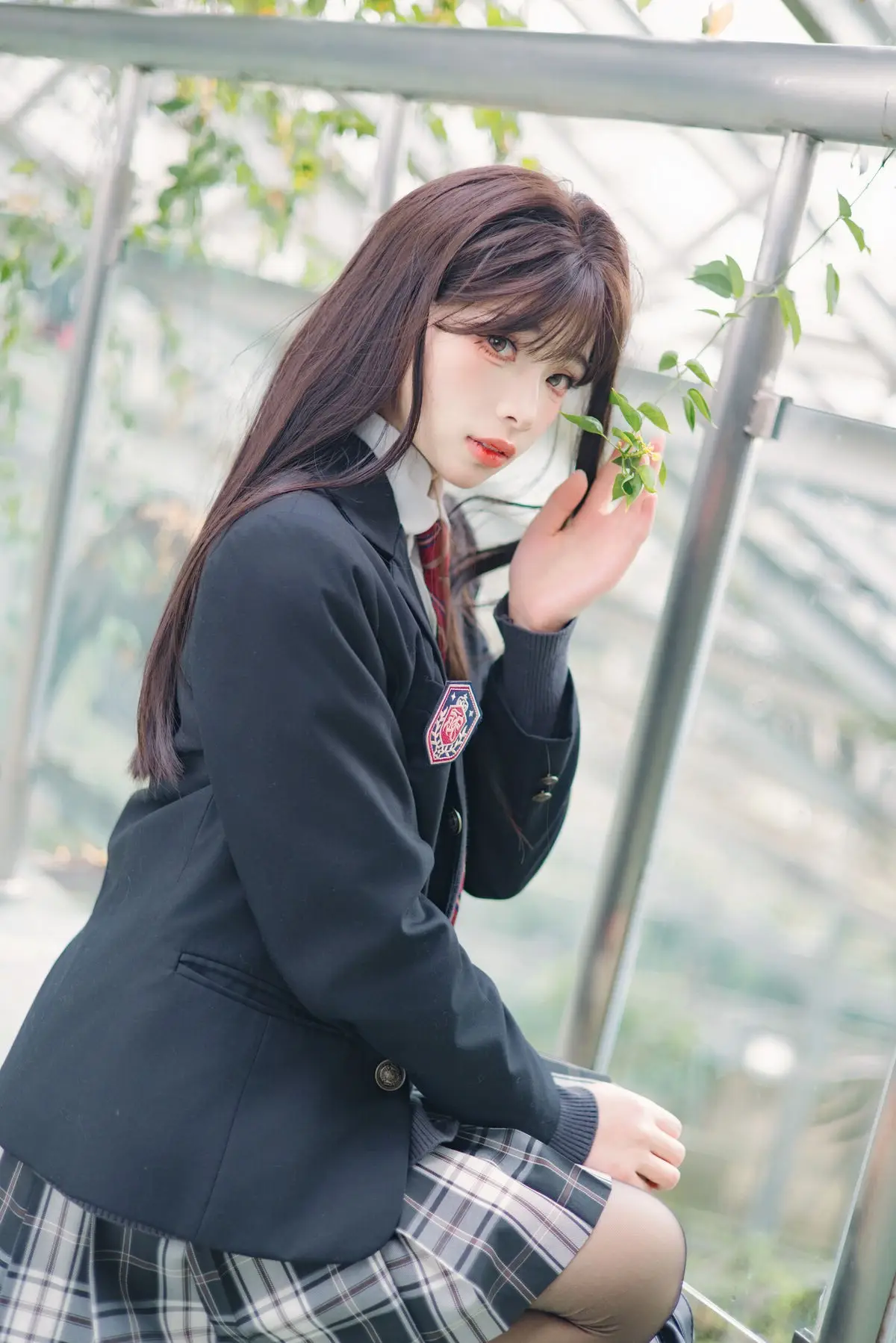 In the YiTuYu Vol.8662 collection, Xian Nu Juan captivates as she gracefully strolls through the vibrant greenery of a botanical garden. The young woman, with her flowing dark hair, dons a stylish dark jacket and a lively plaid skirt, exuding a fresh yet subtly mysterious charm. Captured from an elevated perspective through the dense foliage, the image evokes a sense of observing a muse wandering amidst majestic nature. Gentle natural light illuminates her attire and hair, accentuating Xian Nu Juan’s delicate beauty. This photograph is more than a mere snapshot; it tells a story of immersion in nature’s boundless splendor, where every step is a new discovery within the tranquil embrace of the botanical surroundings.#XianNuJuan #YiTuYu #BotanicalGarden #NatureWalk #AsianModel #JK #JKUniform