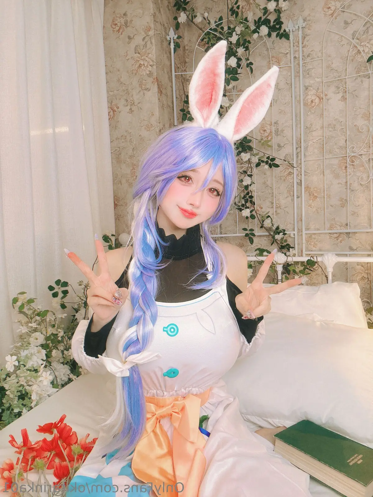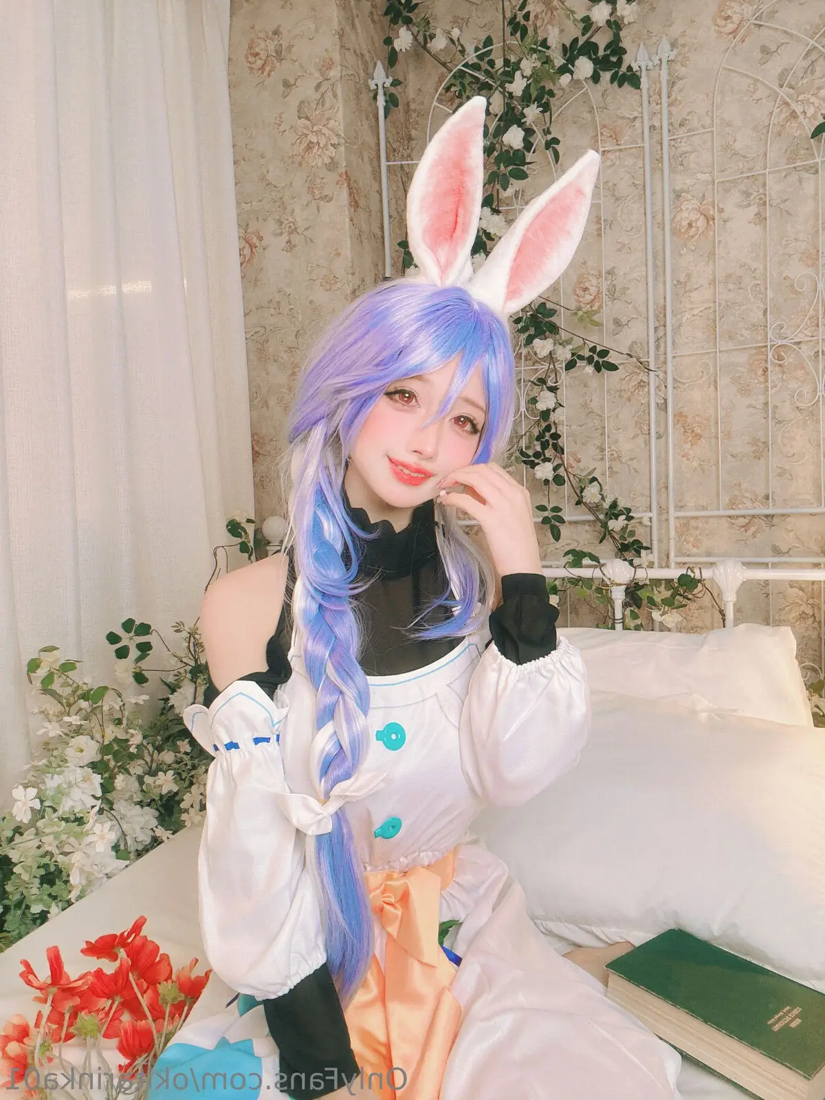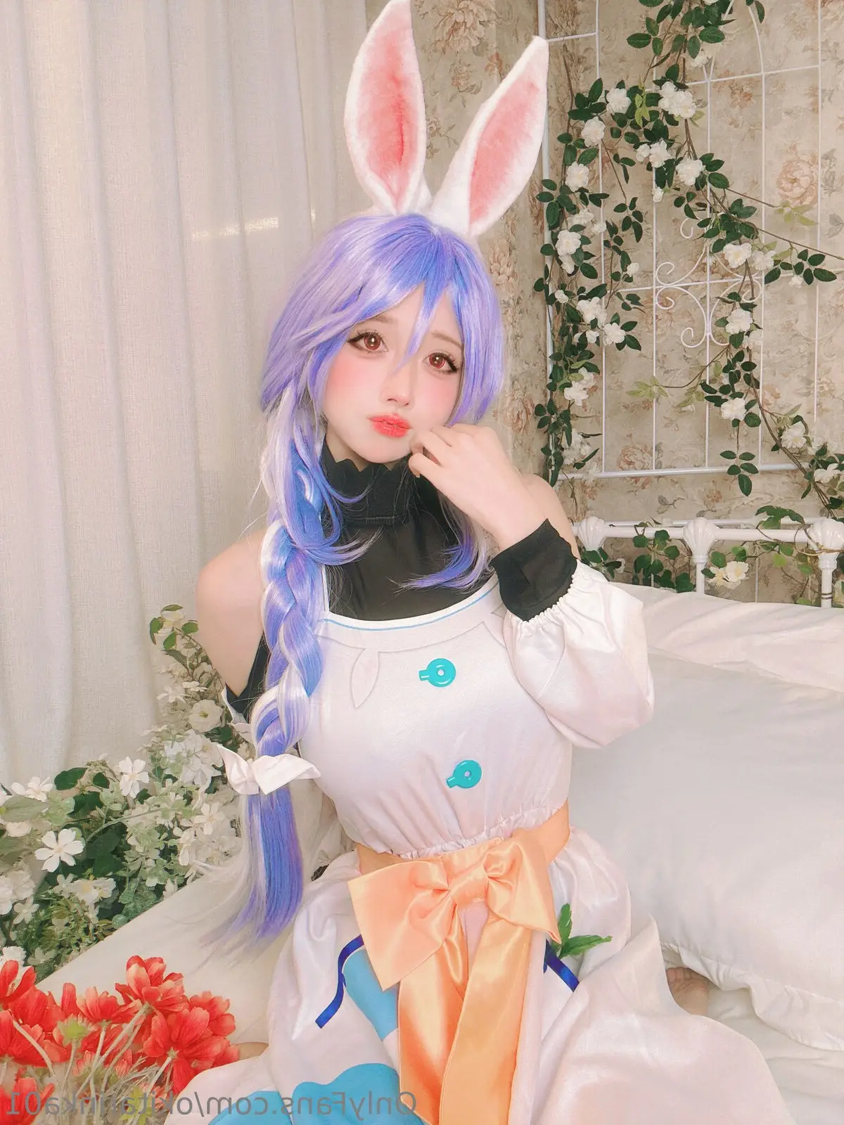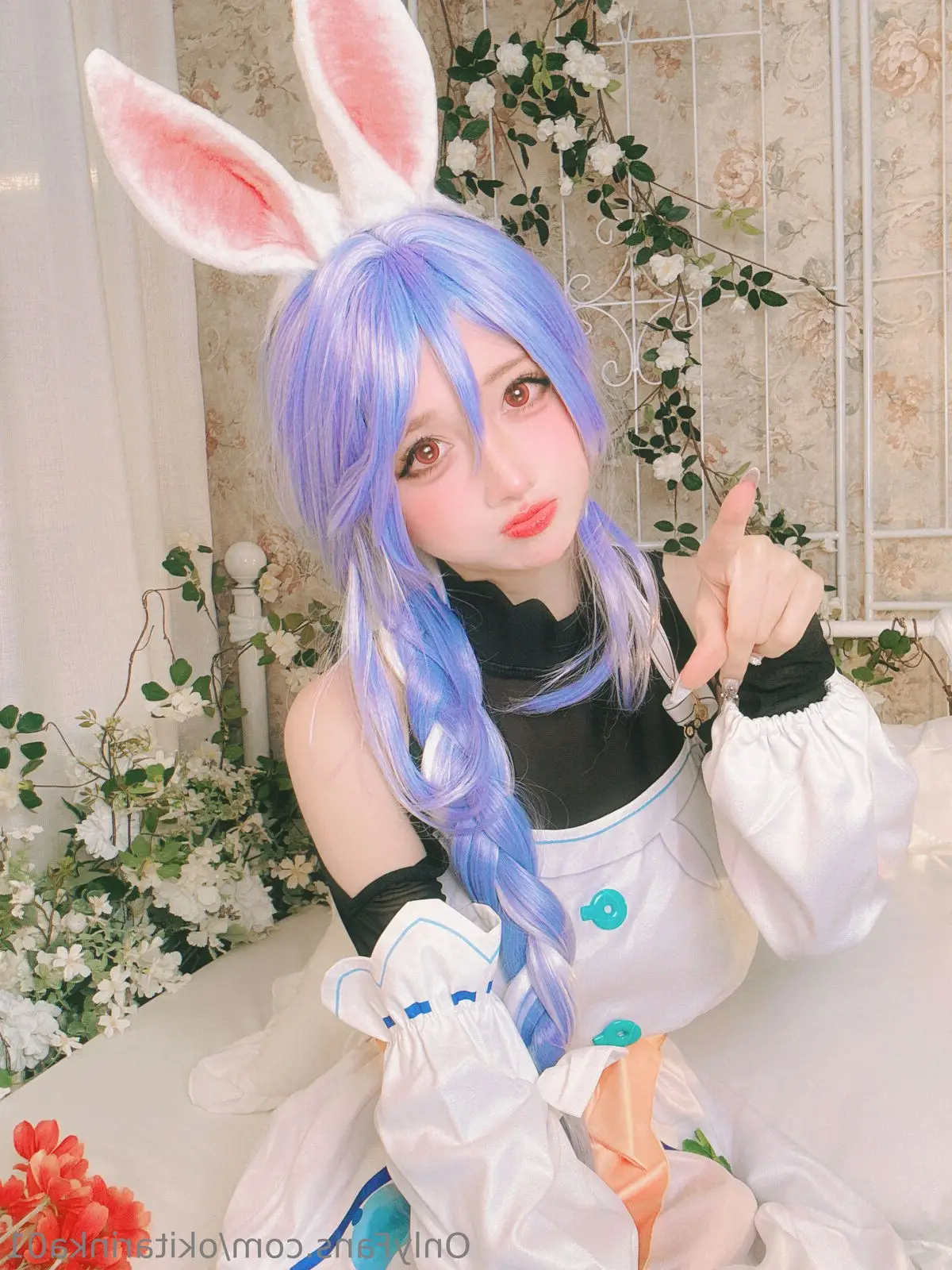 This stunning photo features cosplayer Okita Rinka gracefully transformed into Pekomama. With her soft pastel purple hair, adorable pink bunny ears, and sparkling eyes, Rinka radiates a sweet and playful charm. The meticulously designed costume, blending bright colors, highlights her skill and dedication. Her natural pose and gentle smile create an inviting and friendly presence. This is more than just a cosplay; it's an artistic expression of passion and creativity, sure to delight fans and those who appreciate the beauty of anime and manga aesthetics.#CoserRinka #PekomamaCosplay #OkitaRinka #BunnyGirl #CuteCosplay