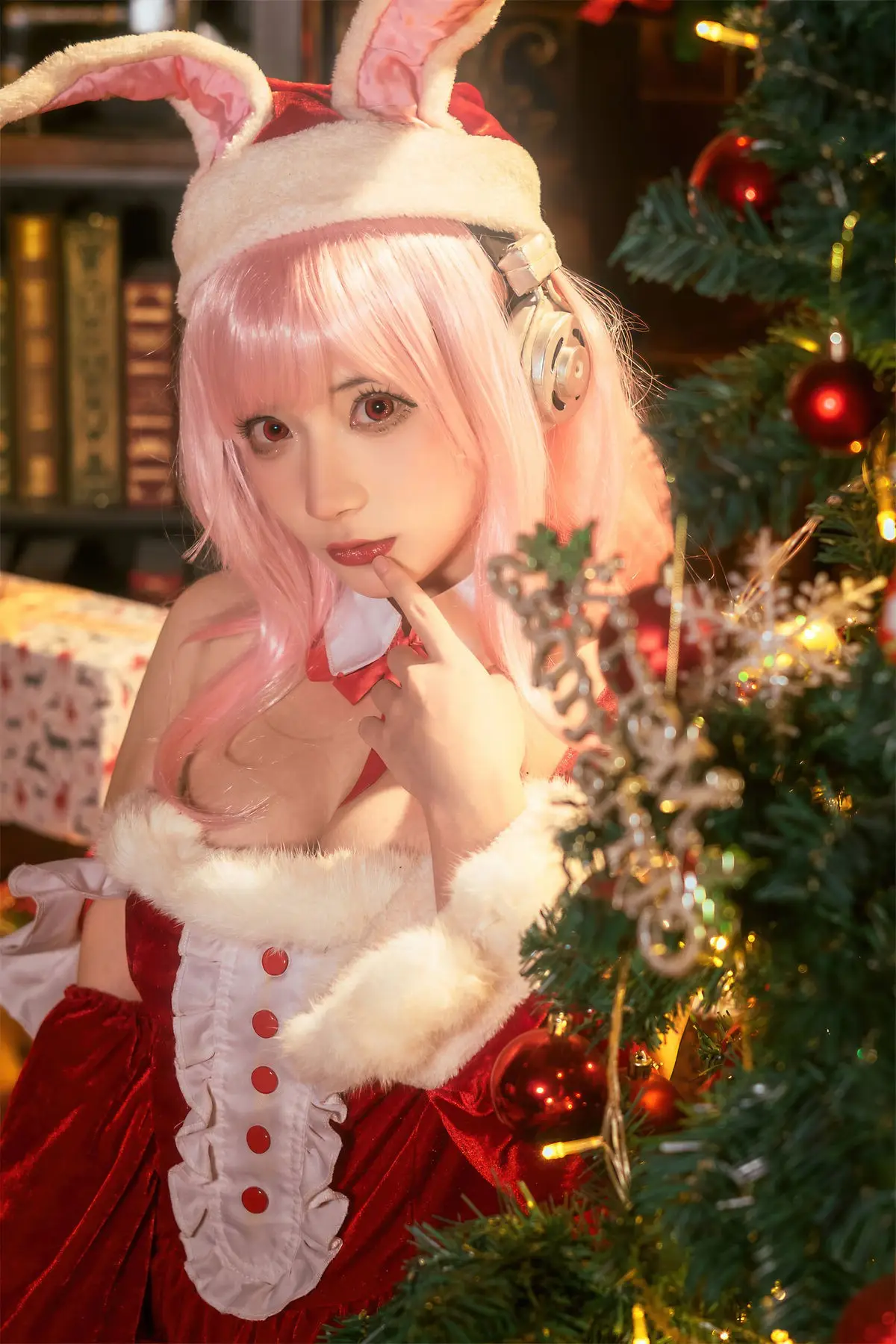 Immerse yourself in the festive atmosphere with the stunning portrayal by coser 是三不是世w as Christmas Sonico. This captivating image captures the sweet and alluring pink bunny girl beside a dazzling red Christmas tree. Dressed in a stylized Santa Claus outfit, complete with adorable bunny ears and her signature pink hair, Sonico exudes a beauty that is both innocent and seductive, drawing every gaze. The sparkling lights from the tree and the shimmering gifts in the background further enhance the warm, magical ambiance of the holiday season. This is an unforgettable image, brimming with Christmas spirit and the enchanting allure of cosplay.#SonicoChristmas #CoserSonico #AlluringChristmas #ChristmasBunnyGirl #HolidayCosplay