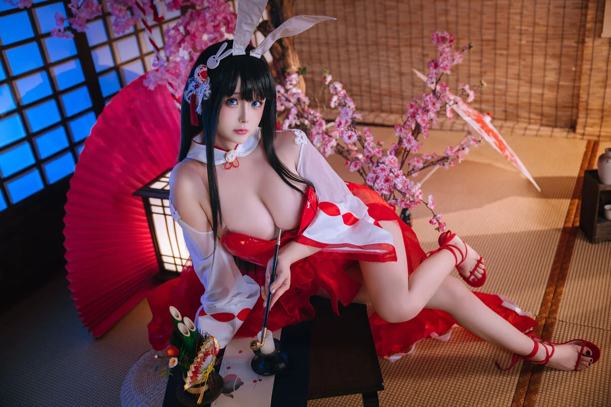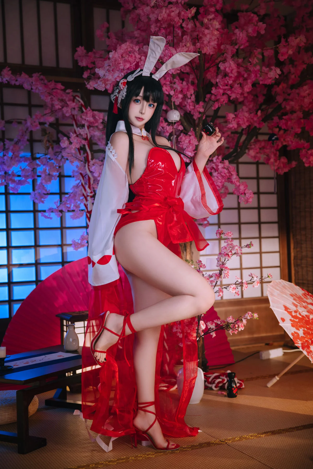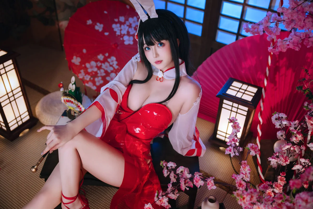 In the realm of visual storytelling and modern pop culture, the Bunny Girl aesthetic remains a timeless symbol of elegance mixed with a hint of playfulness. This latest collection featuring the renowned cosplayer Ri Nai Jiao (日奈娇) as Chikuma (Oyama) from the hit game Azur Lane, perfectly captures this essence. Far beyond a simple character recreation, this gallery is a sophisticated exploration of fashion photography and character embodiment that resonates with global aesthetic standards.Chikuma, a character known for her mature and composed demeanor in the Azur Lane universe, finds a new dimension in this bunny-themed interpretation. The costume itself is a marvel of design, utilizing high-quality synthetic leather that catches the light with a cinematic sheen. The contrast between the deep blacks of the bodice and the delicate textures of the accessories creates a rich visual palette. Ri Nai Jiao masterfully channels Chikuma’s personality, offering poses that feel both regal and inviting, proving that cosplay is a true performance art.