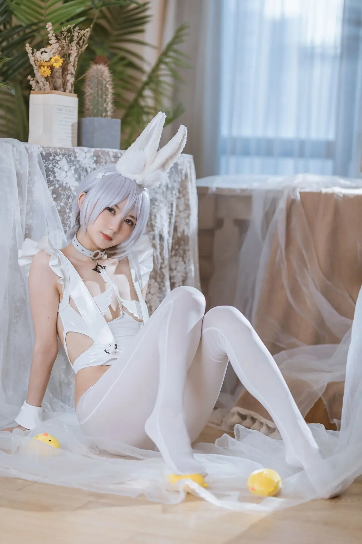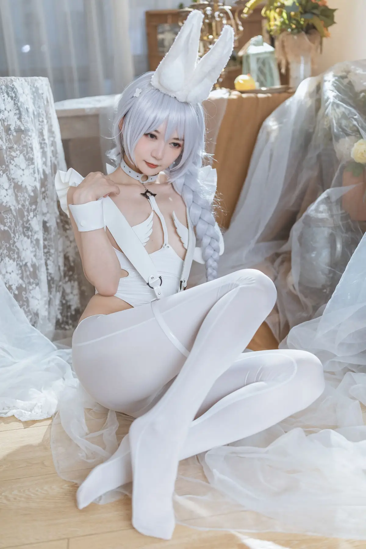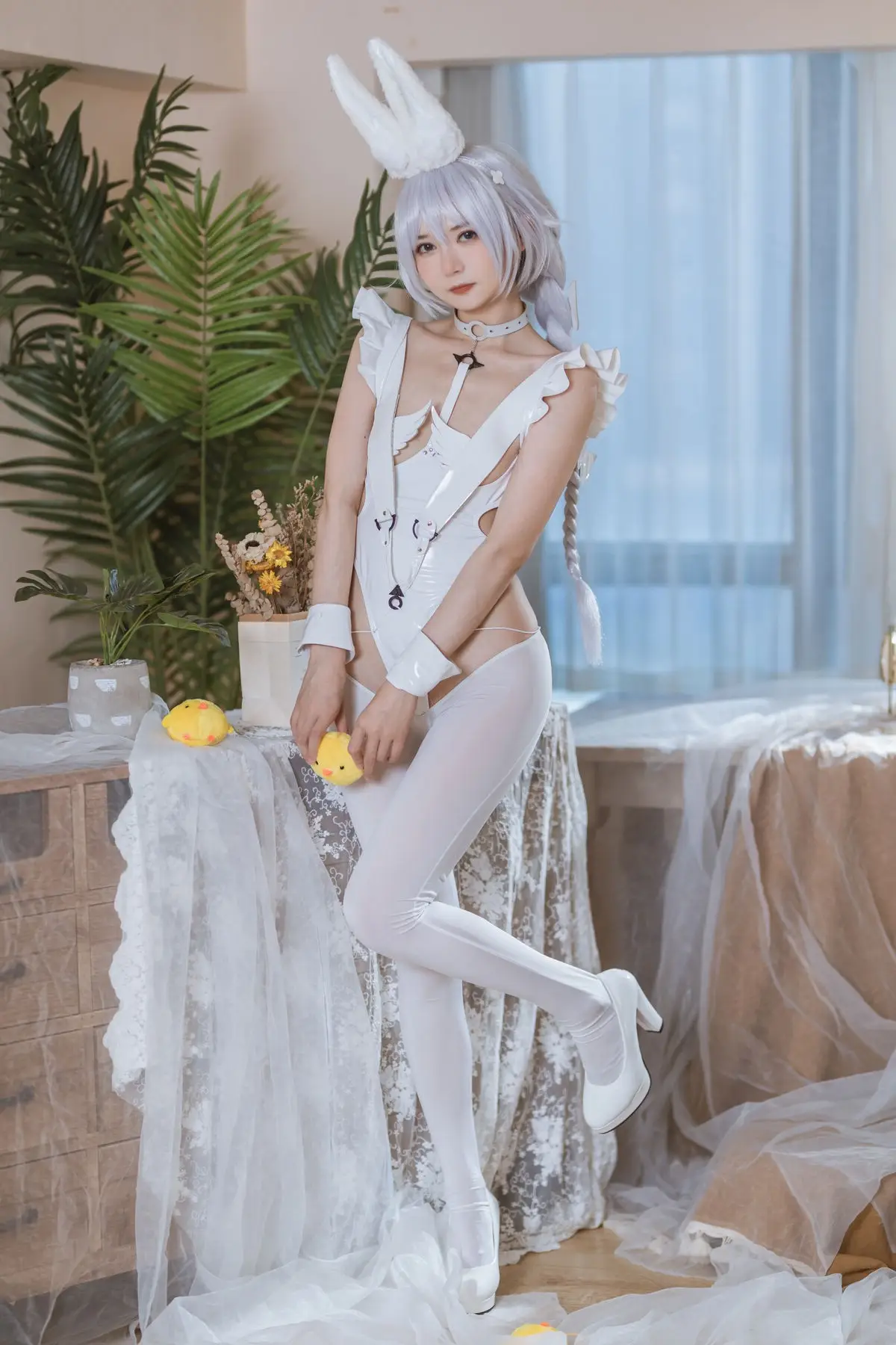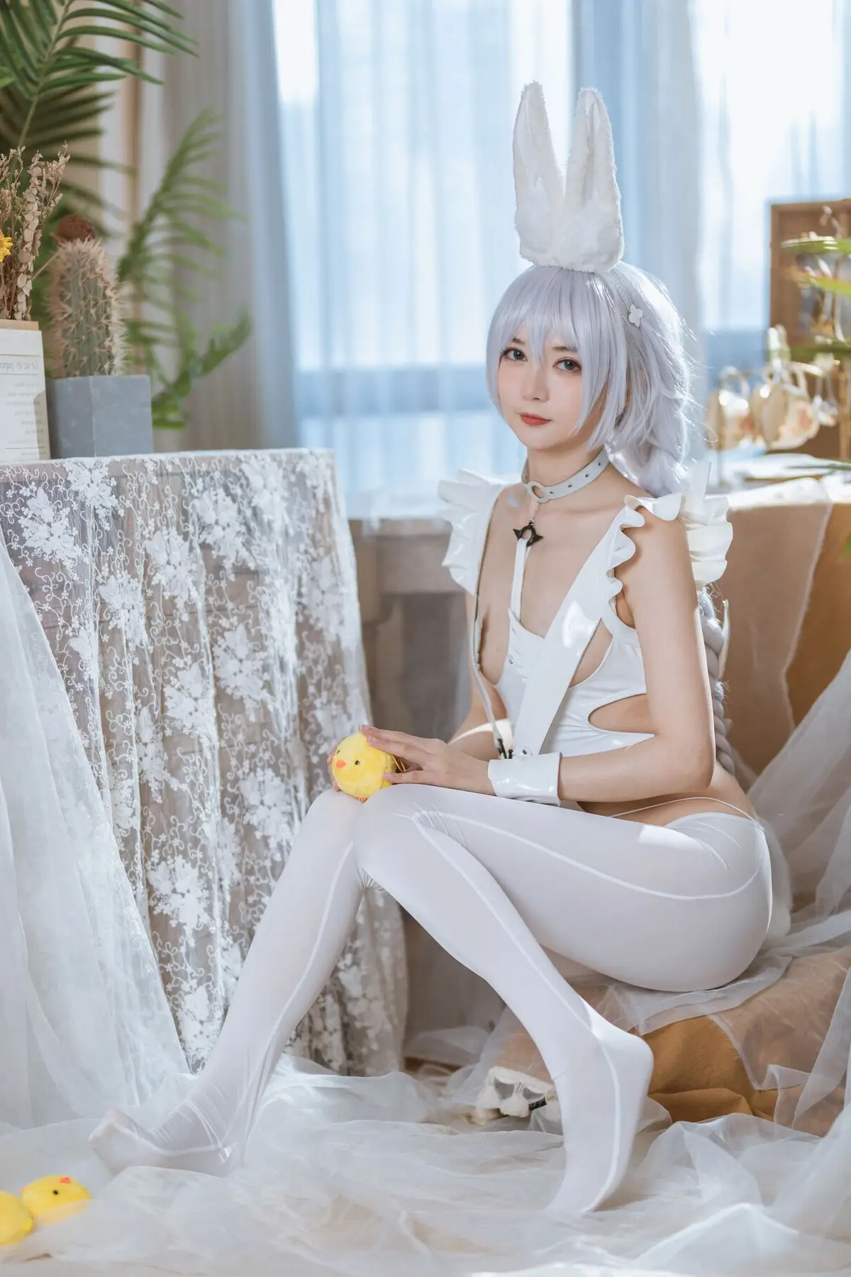 Coser 51Jiang as Azur Lane Acasta: Enchanting White Bunny Girl Cosplay