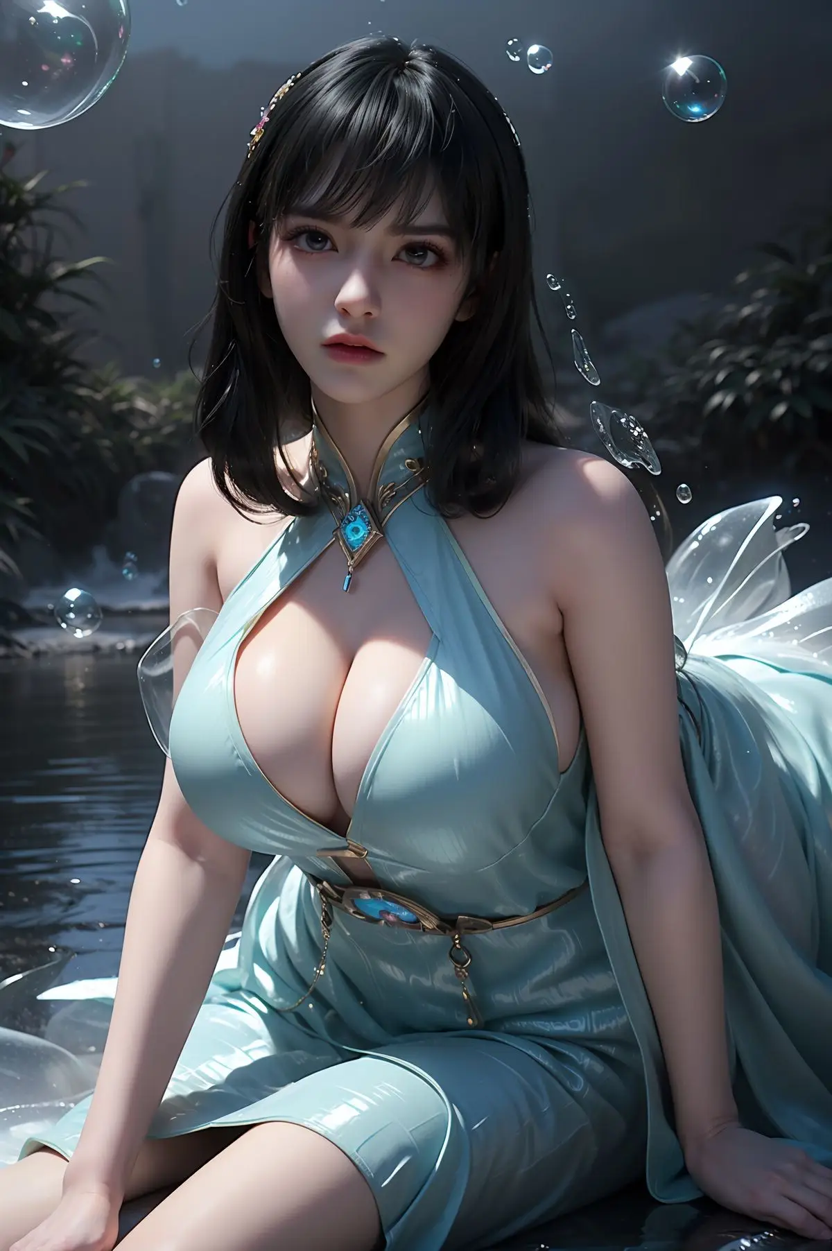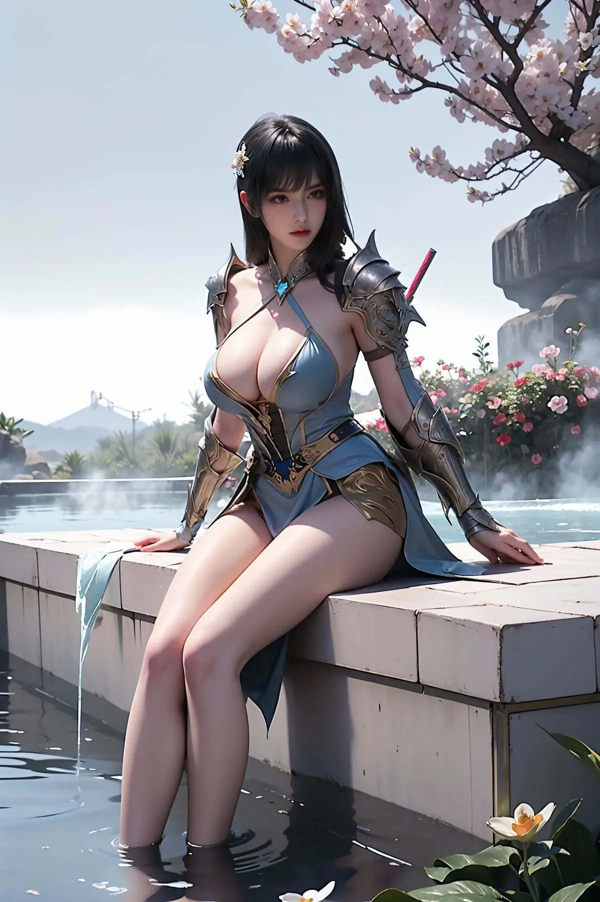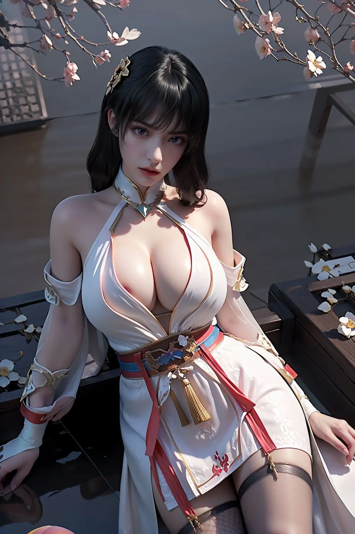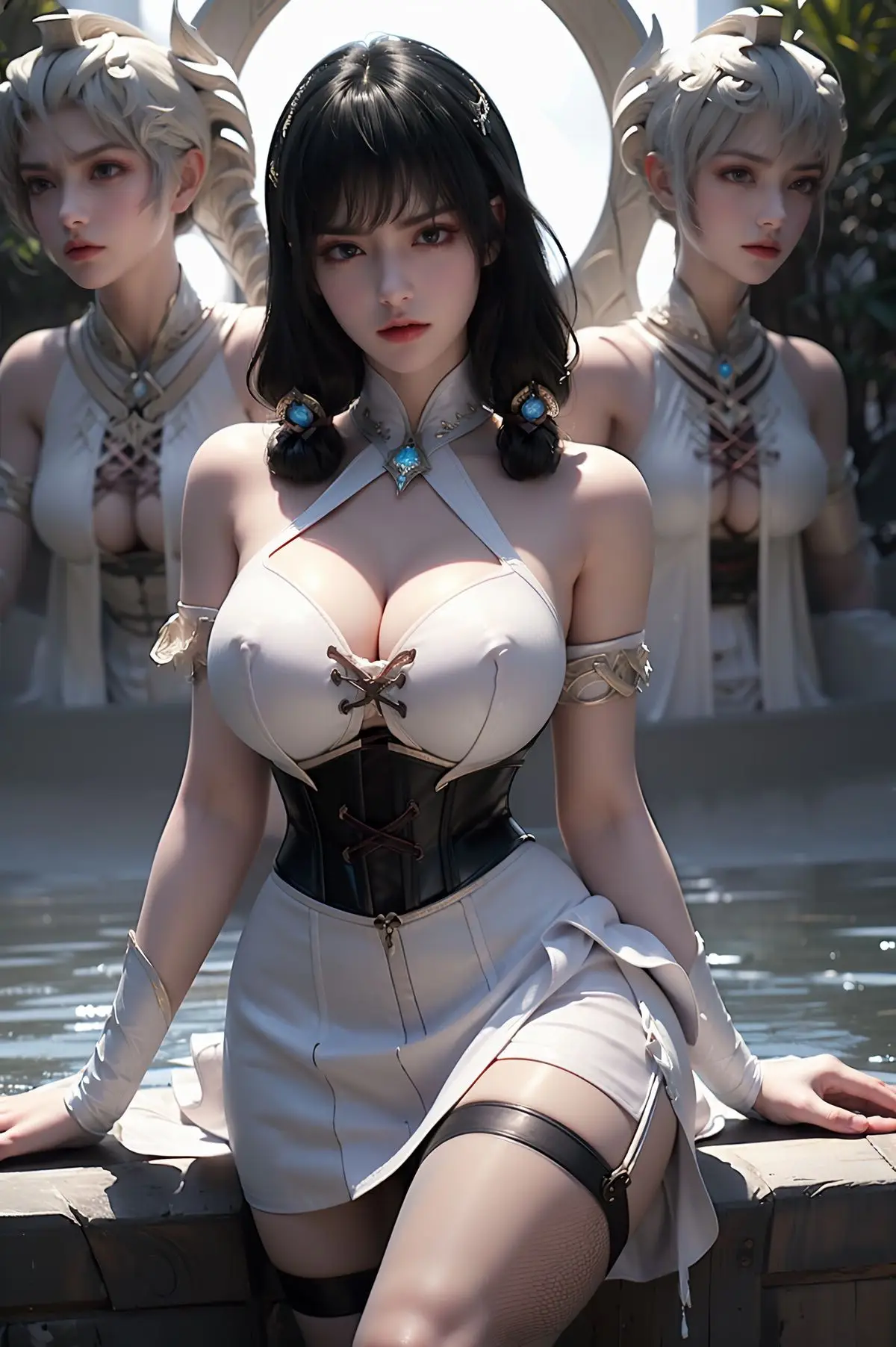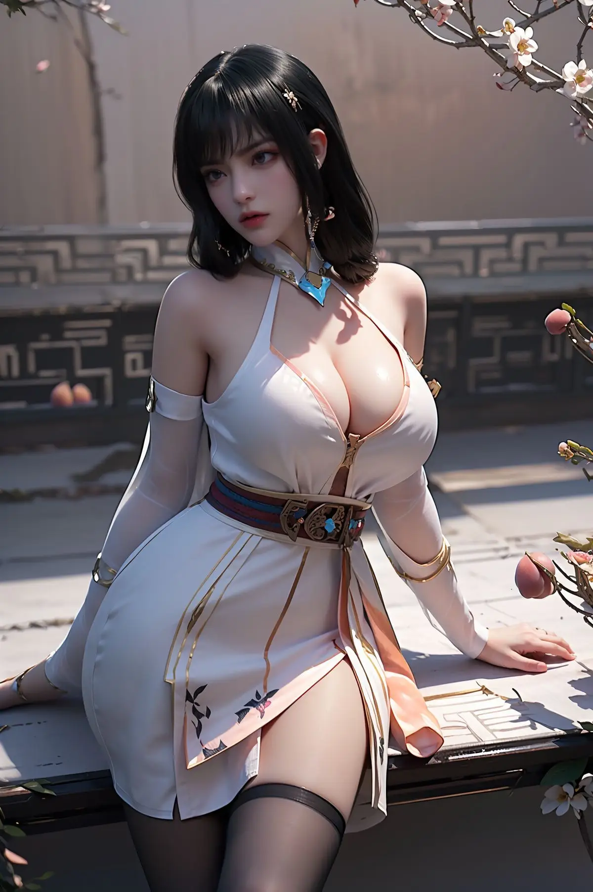Step into the enchanting world of AI Generated Yunluo, a captivating embodiment of Asian beauty. In this stunning image, Yunluo exudes an elegant and alluring charm, dressed in a pristine white outfit that masterfully blends traditional aesthetics with modern fashion. Every detail, from the subtly revealing high-slit dress to the unique turquoise necklace, accentuates her graceful figure and magnetic presence. Her flawless fair skin, lustrous dark hair, and expressive eyes create a harmonious and striking overall impression. The romantic garden setting, adorned with delicate white blossoms, further enhances Yunluo's ethereal and serene beauty, inviting viewers to delve deeper into this mystical allure.#YunluoAIGenerated #AsianBeauty #ElegantWhiteDress #TraditionalModernFashion #CaptivatingBeauty