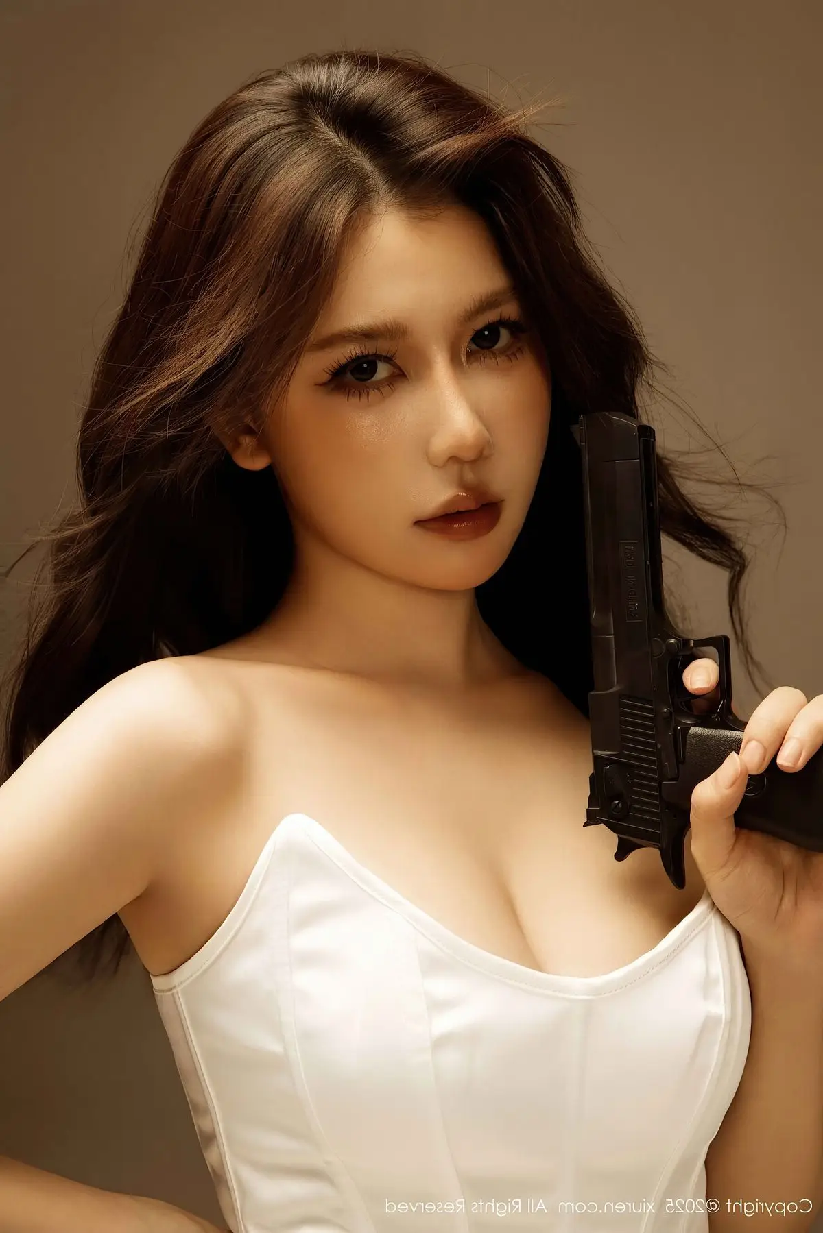 AI Generated Yunluo: Captivating Asian Beauty in Elegant White Dress - Modern Traditional Charm.