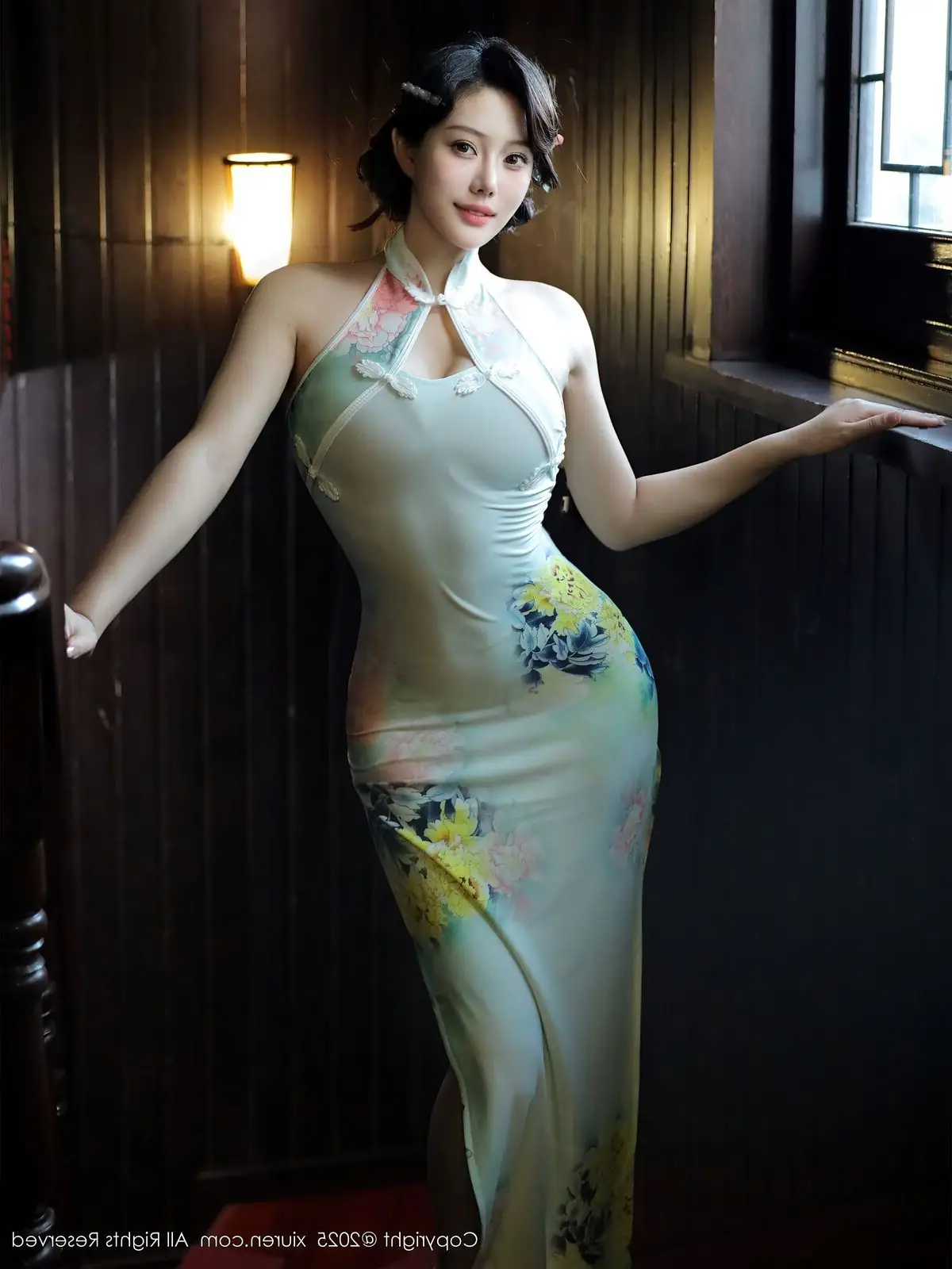 In this photo series, XiuRen model Xiao Nai Jiao shines with a captivating beauty, presenting a unique and alluring style. She dons an exquisite retro qipao, its form-fitting design gracefully enhancing her slender figure and charming curves. The perfect fusion of the classic cheongsam and mysterious black silk stockings creates an aura that is both elegant and subtly sensual. Each moment Xiao Nai Jiao appears, she exudes an enchanting charisma, with expressive eyes and a graceful pose that keeps viewers enthralled. This collection not only showcases her physical beauty but also portrays the model's confidence and distinctive appeal, a harmonious blend of traditional aesthetics and modern allure.