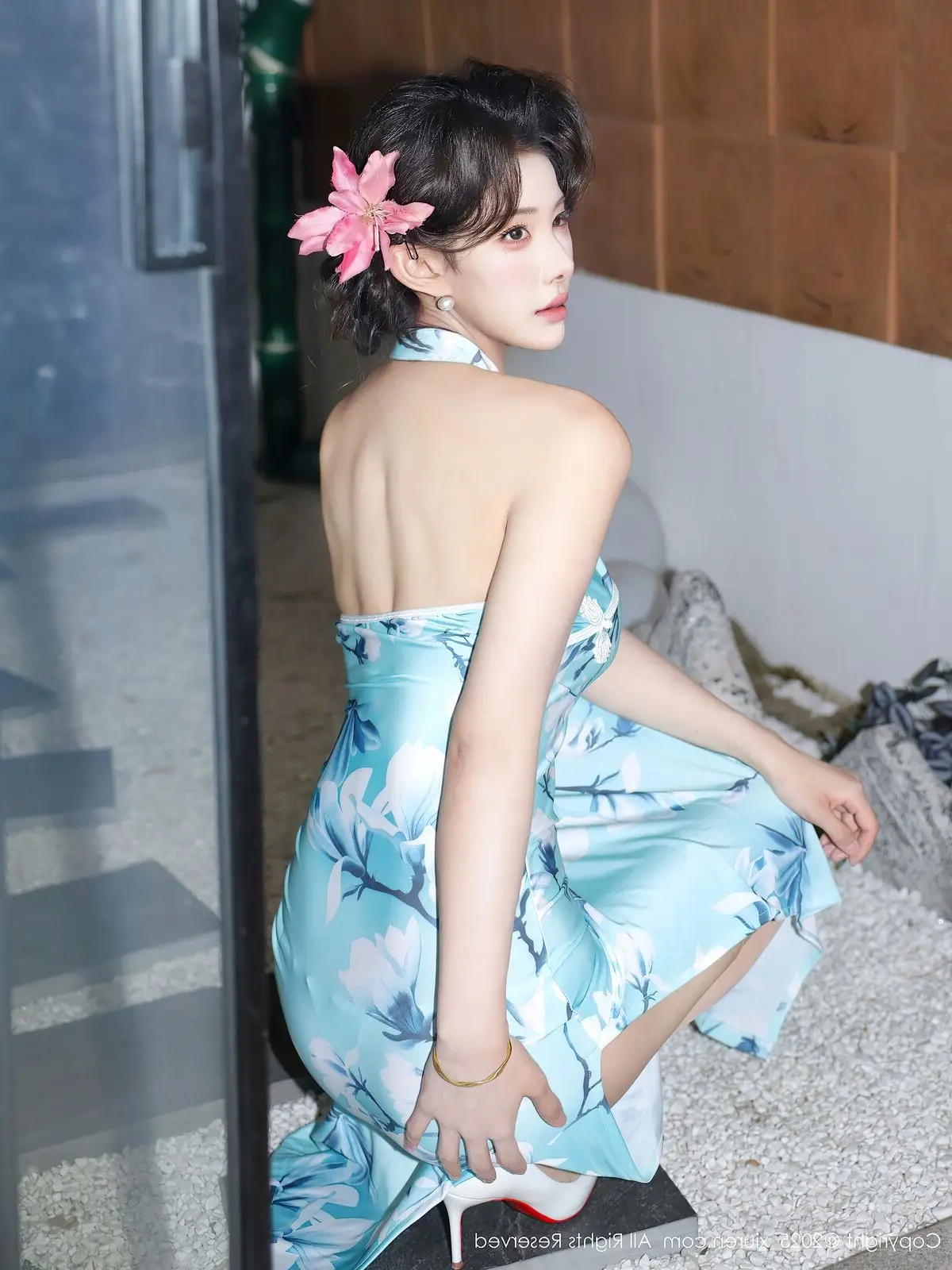 Immerse yourself in Shi An An's Vol.390 photo collection from XingYan Star Face, where Asian beauty is celebrated with exquisite finesse. Model Shi An An gracefully showcases her figure in a deep blue cheongsam, perfectly merging traditional elegance with contemporary allure. Each frame exudes confidence and grace, highlighted by her captivating gaze and delicate curves. This image is more than just a fashion statement; it's a narrative of irresistible charm. The collection promises an impressive visual experience, captivating every glance and leaving a lasting impression on viewers.