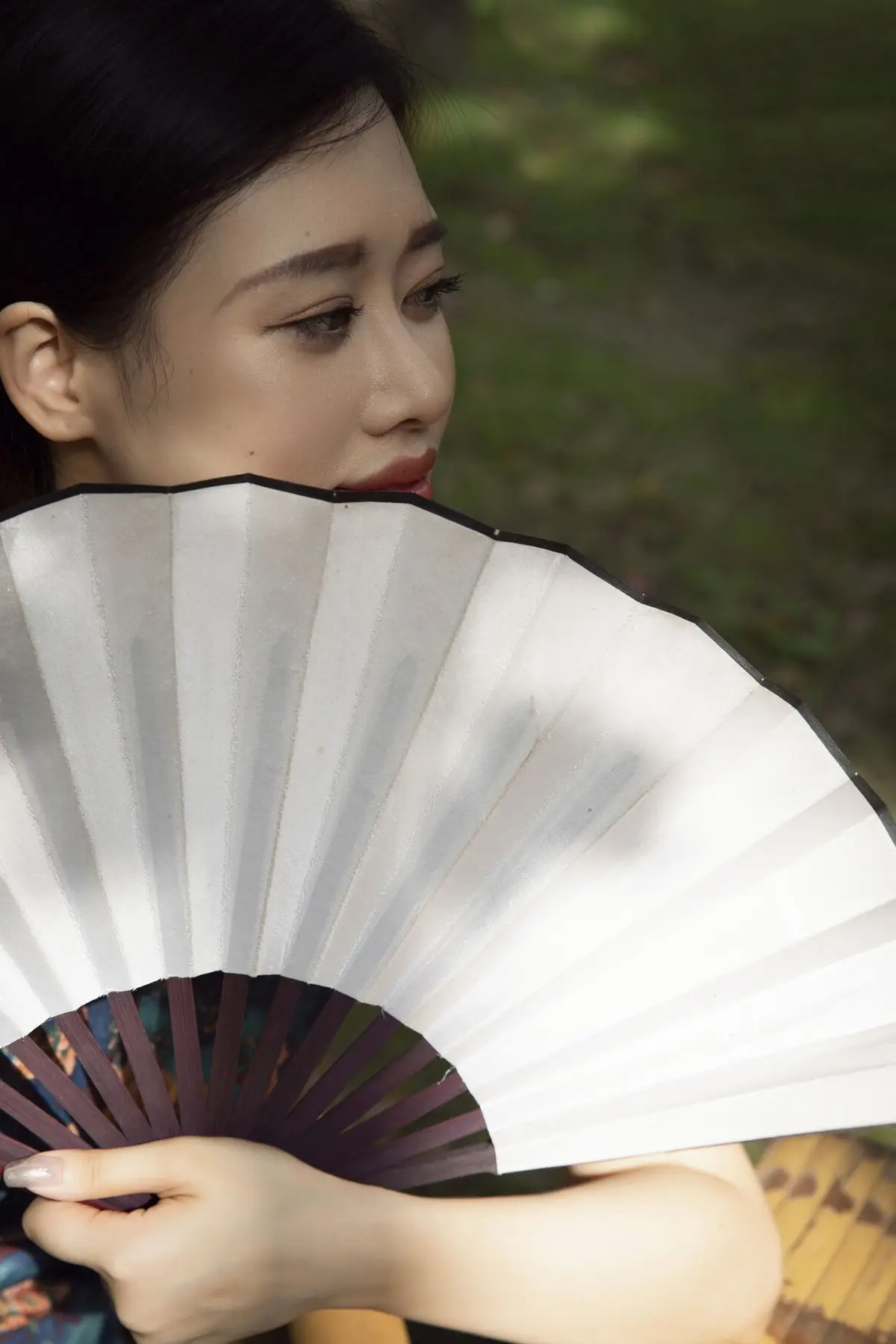 This stunning photograph beautifully captures model Chenaling_CL adorned in an exquisite traditional Cheongsam. The dress, featuring intricate blue floral patterns, accentuates her gentle charm and elegant posture. Chenaling_CL is gracefully seated, holding a classic fan, her gaze distant and contemplative, evoking a poetic and serene moment. The lush green backdrop enhances the overall harmony and timeless allure of the scene. More than just a portrait, this image is an artistic portrayal of the grace and enduring appeal of an East Asian woman in her traditional attire. This Vol.8523 collection promises to captivate admirers of cultural beauty and refined artistic expression.