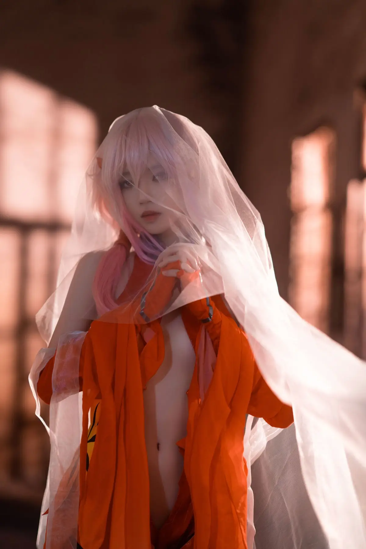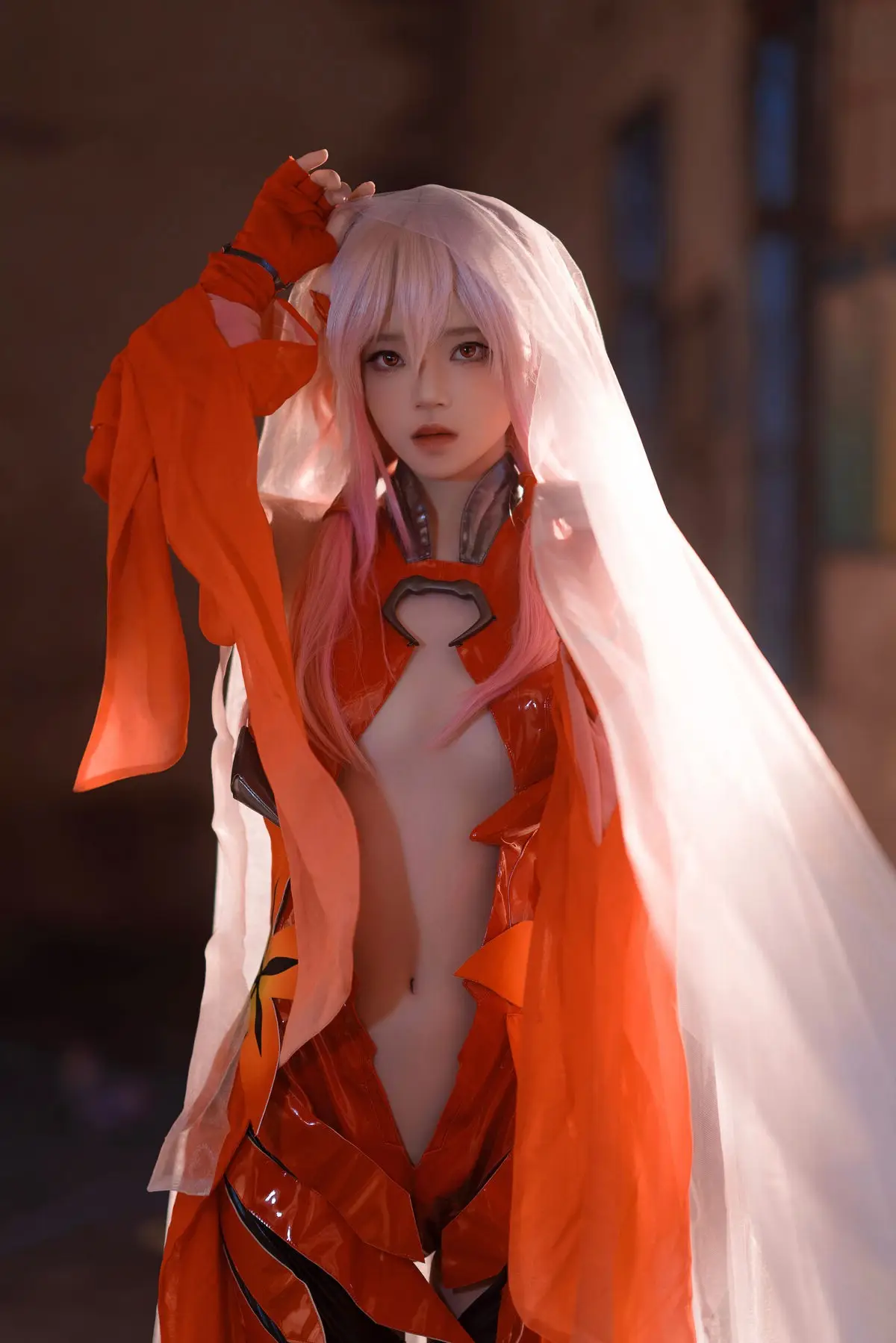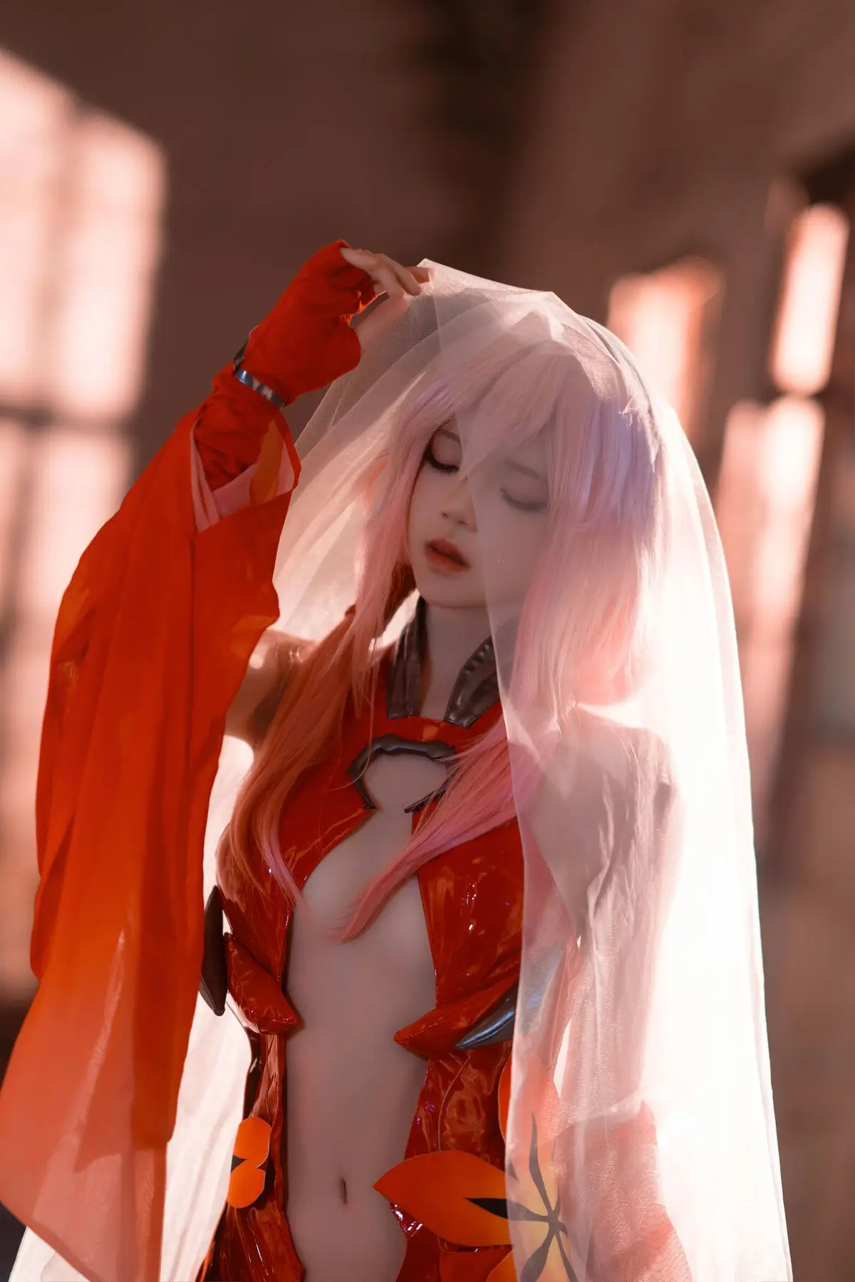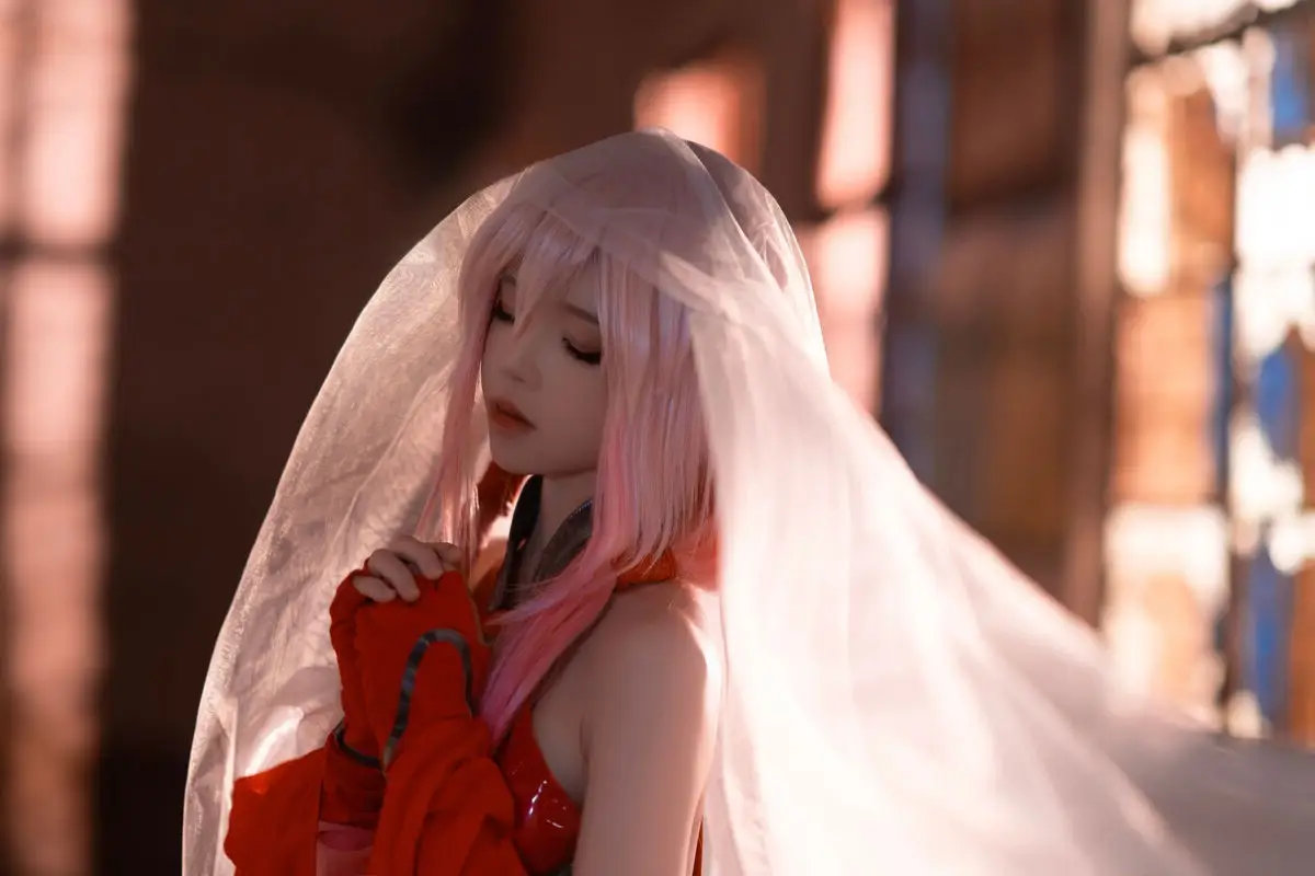 Coser 桜桃喵 masterfully brings Inori Yuzuriha from Guilty Crown to life, presenting a vibrant and enchanting portrayal. Her rendition, featuring Inori's signature pink hair and flowing red attire, perfectly encapsulates the character's ethereal and mysterious charm. The image, set against a dramatic backdrop of a dilapidated structure, creates a striking contrast that highlights Inori's fragile yet resilient presence. Every detail, from the intricate costume to the subtle expression, is meticulously crafted, conveying the depth and emotion of 楪祈. This breathtaking piece of cosplay artistry captivates viewers and flawlessly reinterprets the world of Guilty Crown.#Coser桜桃喵 #InoriYuzurihaCosplay #GuiltyCrown #CherryMeowCosplay #AnimeCosplay