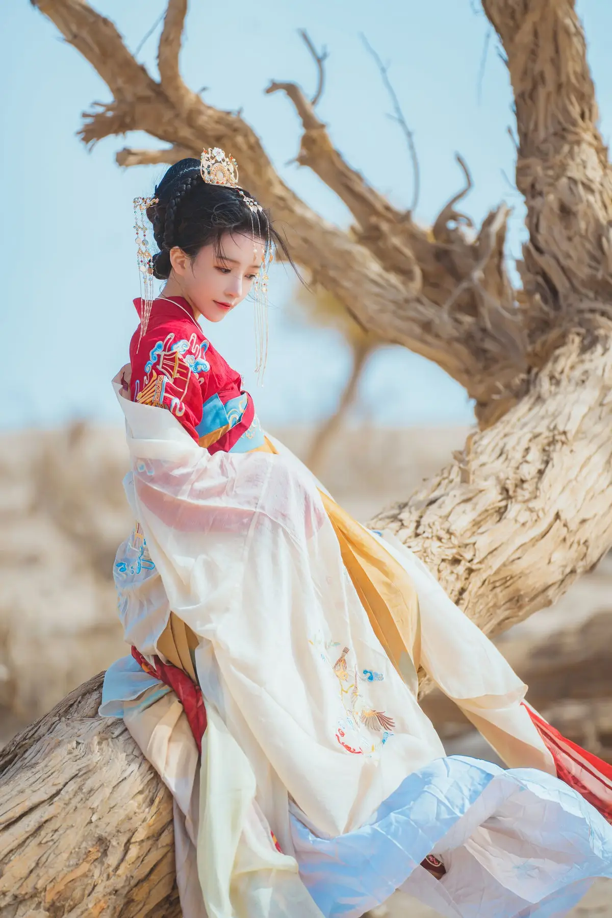 Coser Cherry Meow embodies the breathtaking 'Jinghong' beauty in this exquisite Hanfu photoshoot. Her magnificent traditional Chinese attire adorned with warm colors and intricate patterns perfectly highlights her grace and ethereal charm. Set against a serene natural backdrop featuring an ancient tree with golden autumn leaves the scene creates a harmonious and poetic visual narrative. Natural lighting accentuates every detail from her elegantly styled hair to her gentle gaze. This collection transcends mere cosplay offering an artistic portrayal of classical Chinese aesthetics evoking wonder and admiration for a golden era of culture and timeless beauty.#CherryMeow #Coser #Hanfu #Jinghong #AncientBeauty #CosplayPhotography