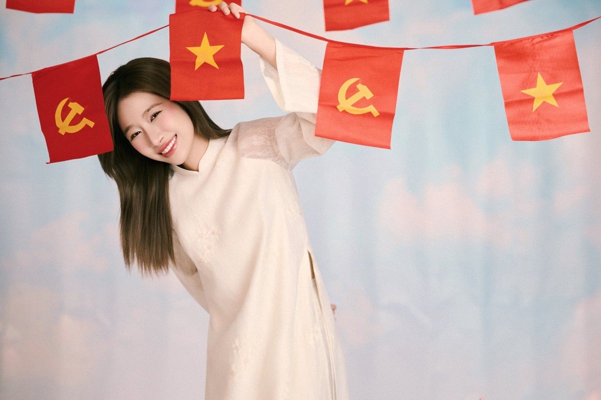 In her latest photo series Hot girl World Cup Linh Kul captivates with her gentle and elegant beauty donning the traditional white Ao Dai She skillfully conveys the meaningful message of beautiful peace through her radiant image alongside the sacred red and yellow star flag This picture not only honors the graceful charm of Vietnamese women in Ao Dai but also expresses deep love and national pride for the country With a sunny smile and clear eyes Linh Kul subtly communicates patriotism and the aspiration for a peaceful and prosperous Vietnam This serves as a meaningful gift ahead of National Day September 2nd reminding everyone of the values of peace independence and the beauty of national cultureGraceful Vietnamese Woman in Traditional Ao Dai