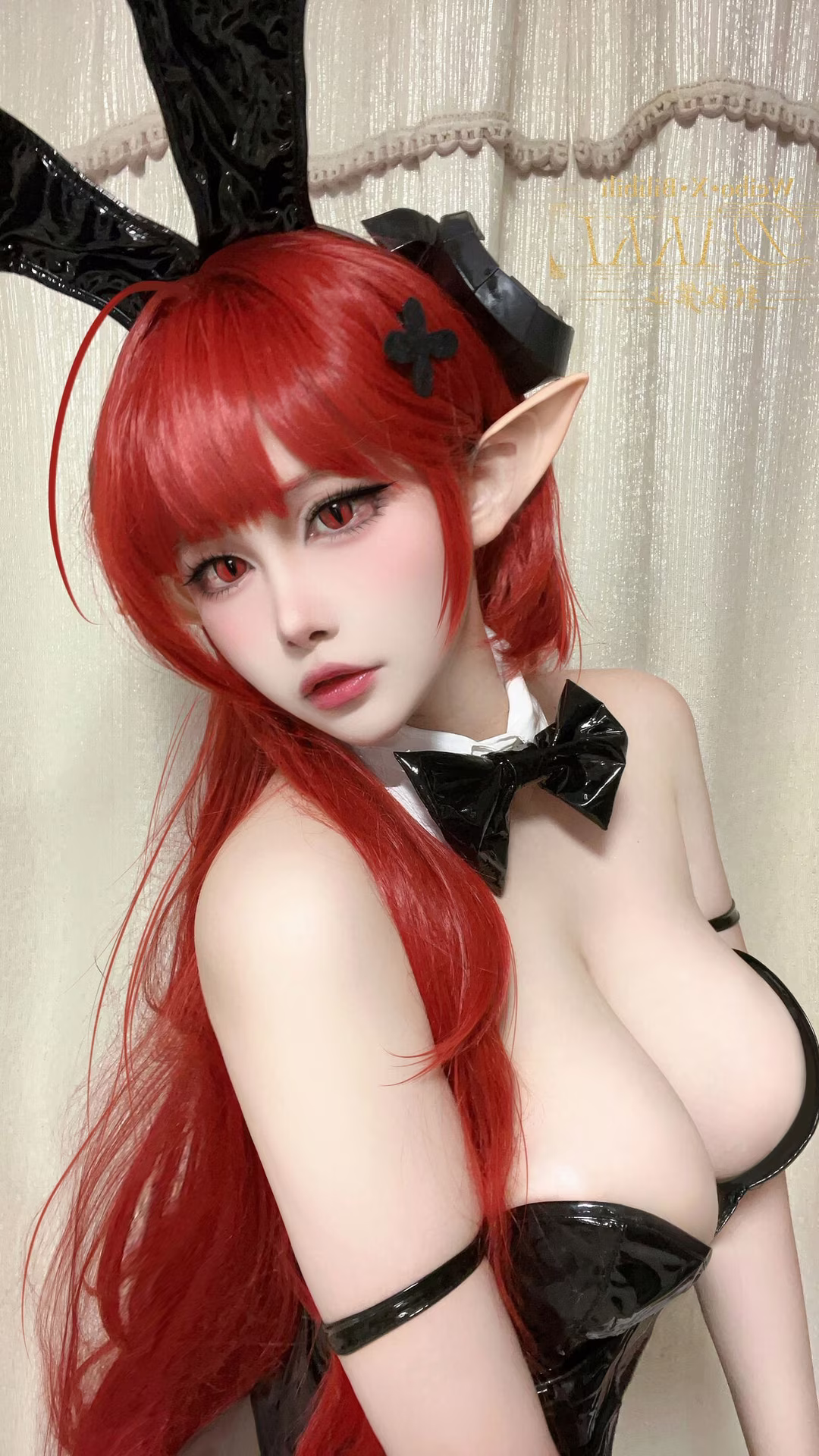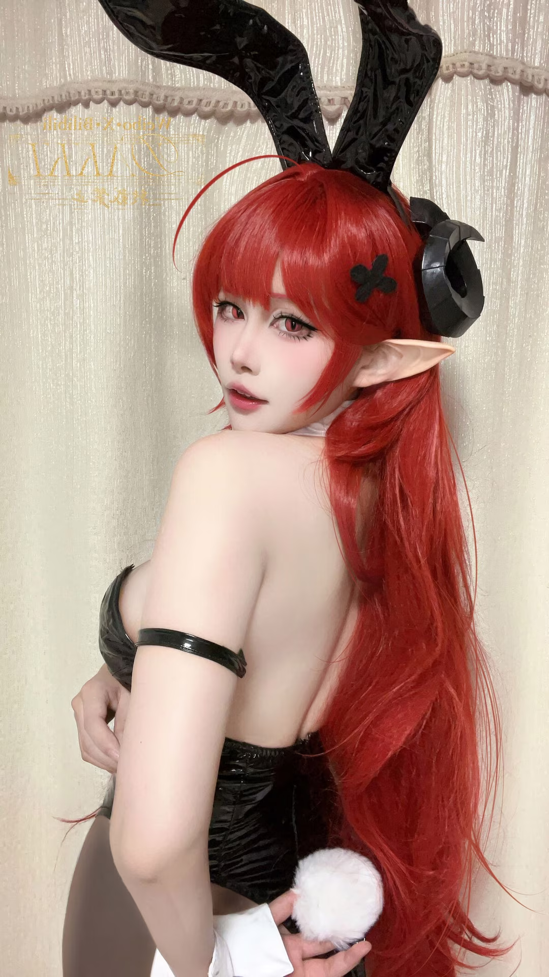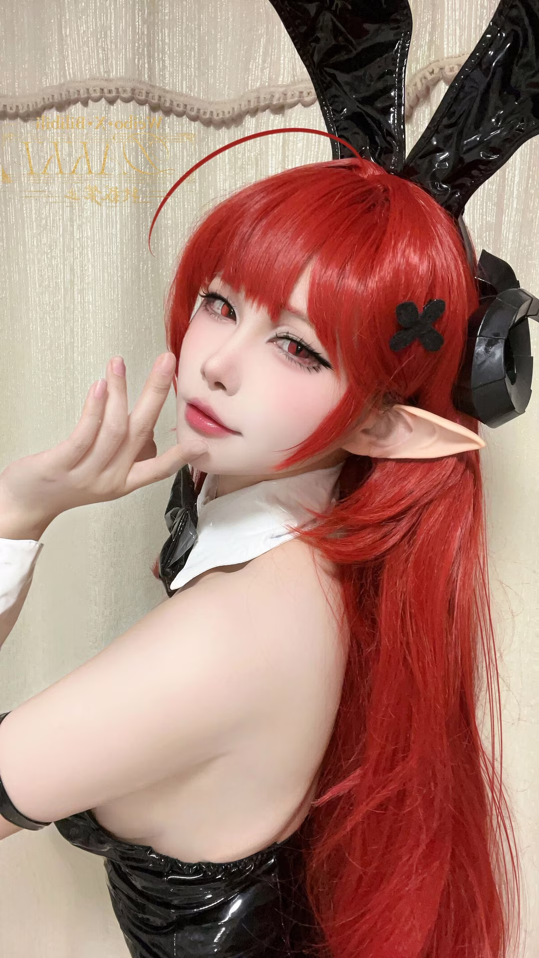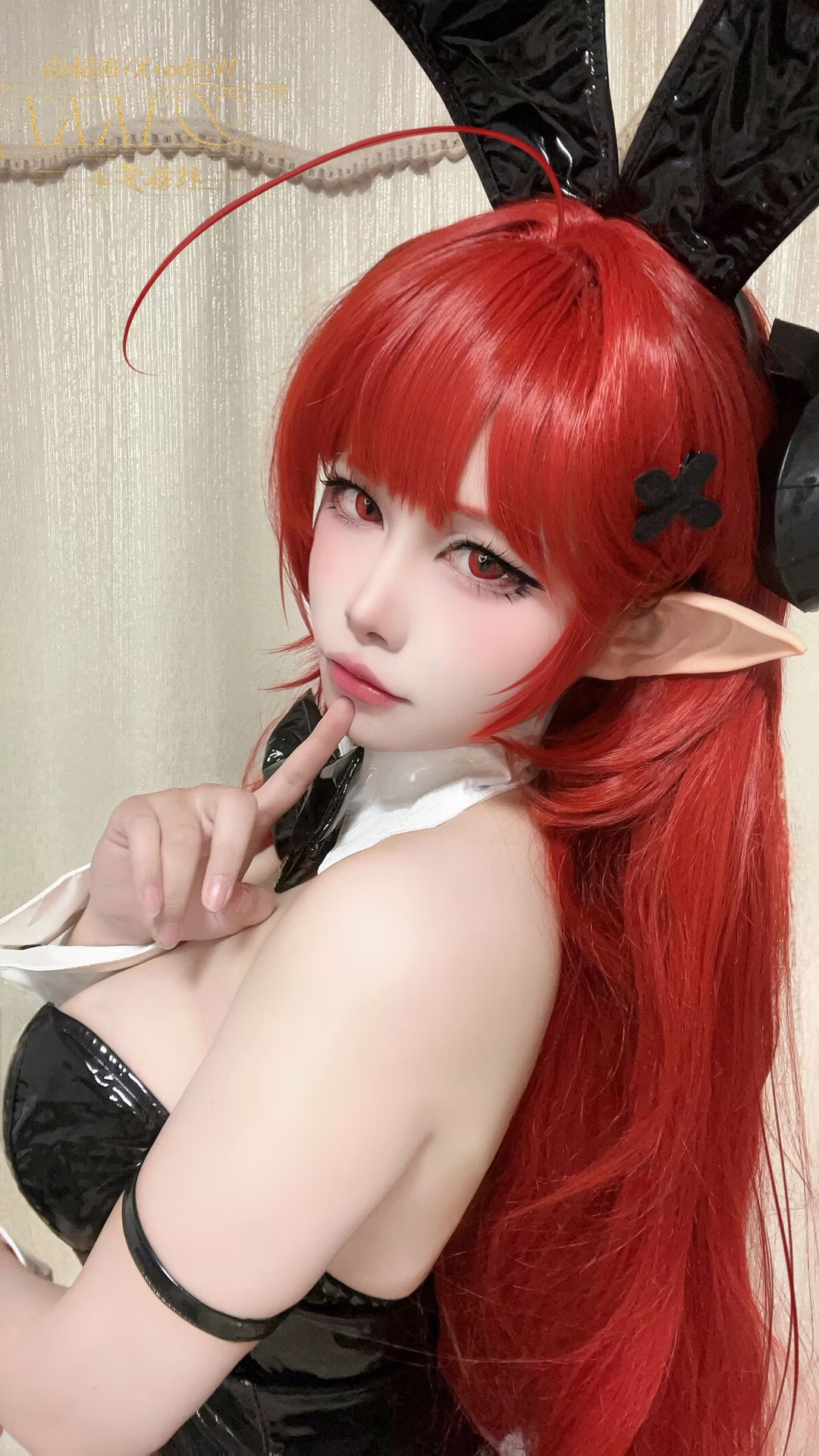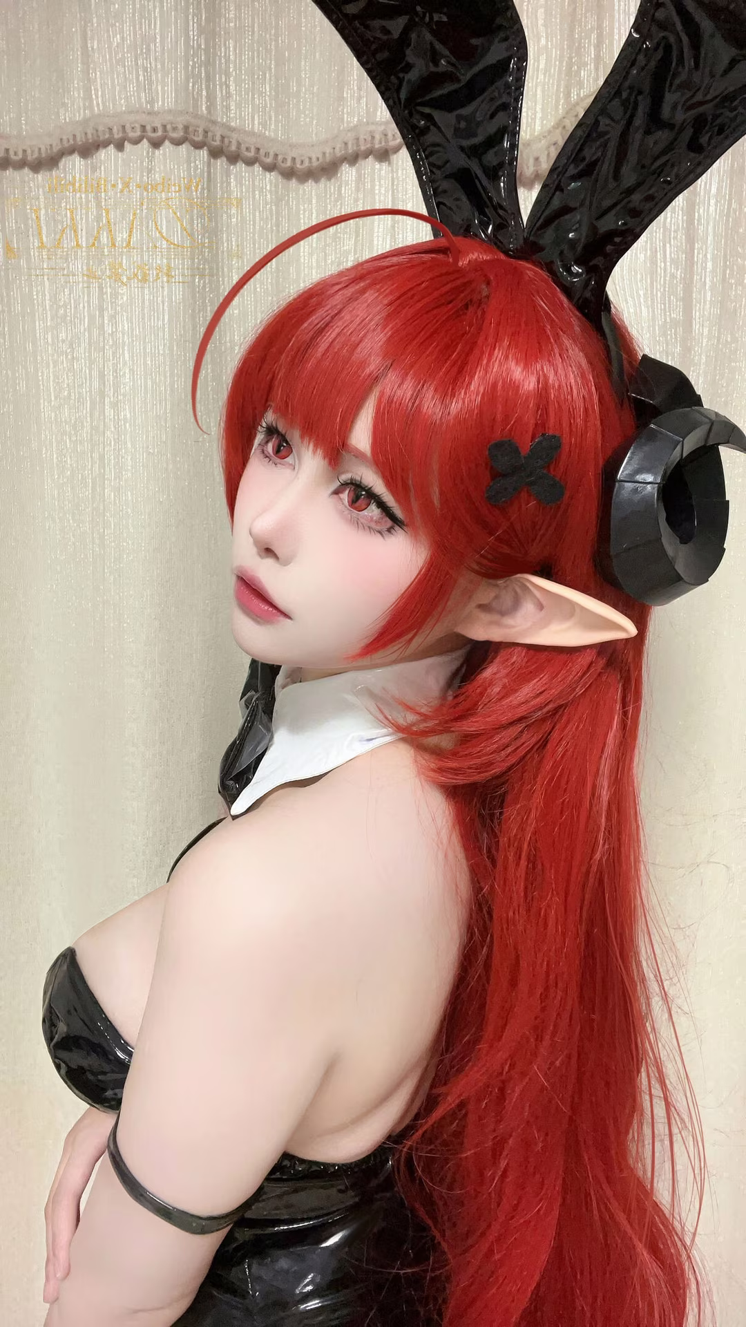 In this captivating cosplay photoshoot, Coser Dakki伊 masterfully embodies Hindenburg from the popular game Azur Lane. With her vibrant red hair, glossy black bunny ears, and a form-fitting, alluring outfit, Dakki伊 brings forth a Hindenburg that is both powerful and enchanting. Every detail, from the hairstyle and sharp makeup with captivating eyes to the confident demeanor in each pose, is meticulously executed, showcasing the cosplayer's dedication and passion. The image not only celebrates the character's beauty but also affirms Dakki伊's talent and creativity, delivering a lively and compelling rendition of Azur Lane's Hindenburg that is sure to delight fans.