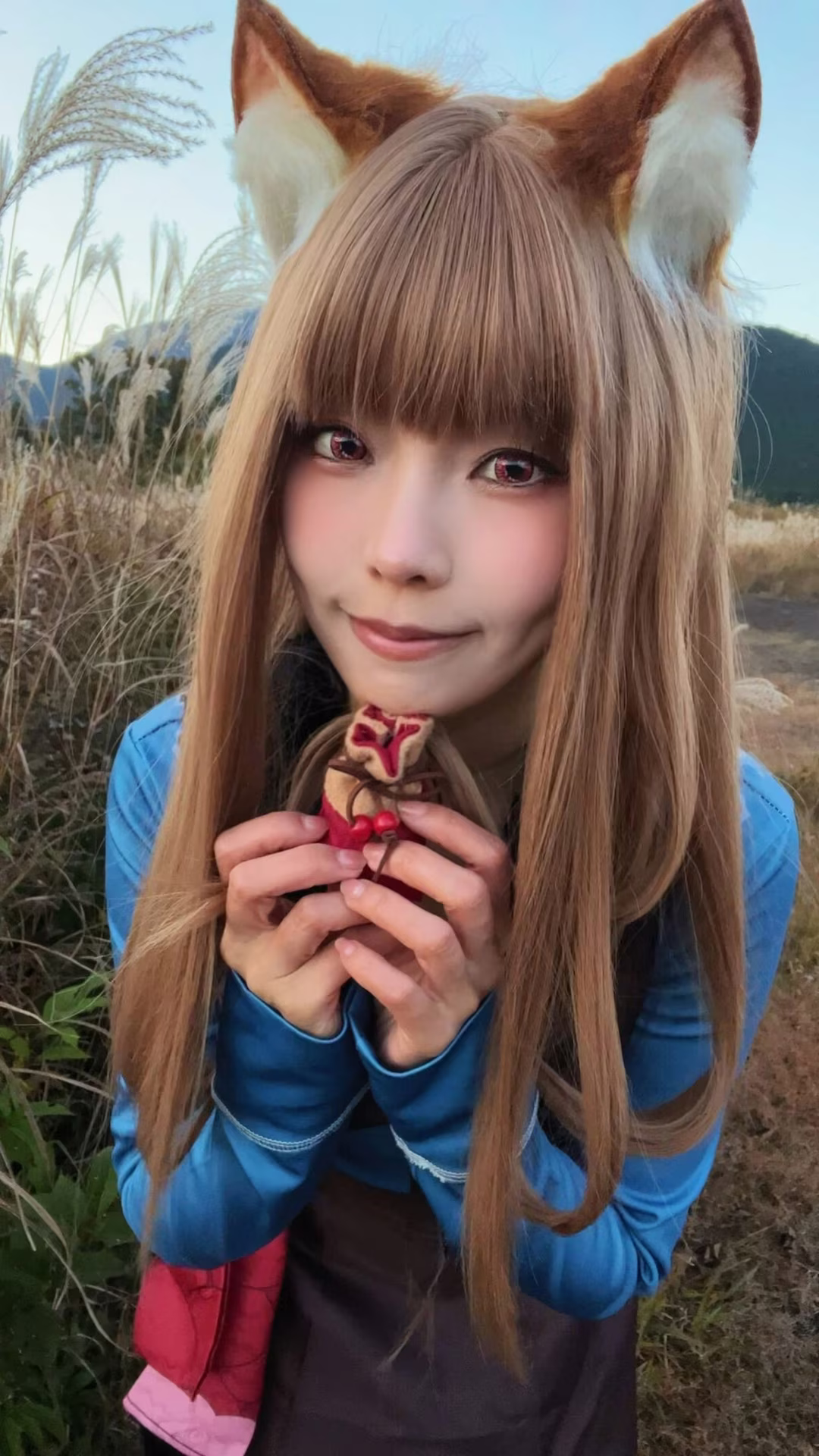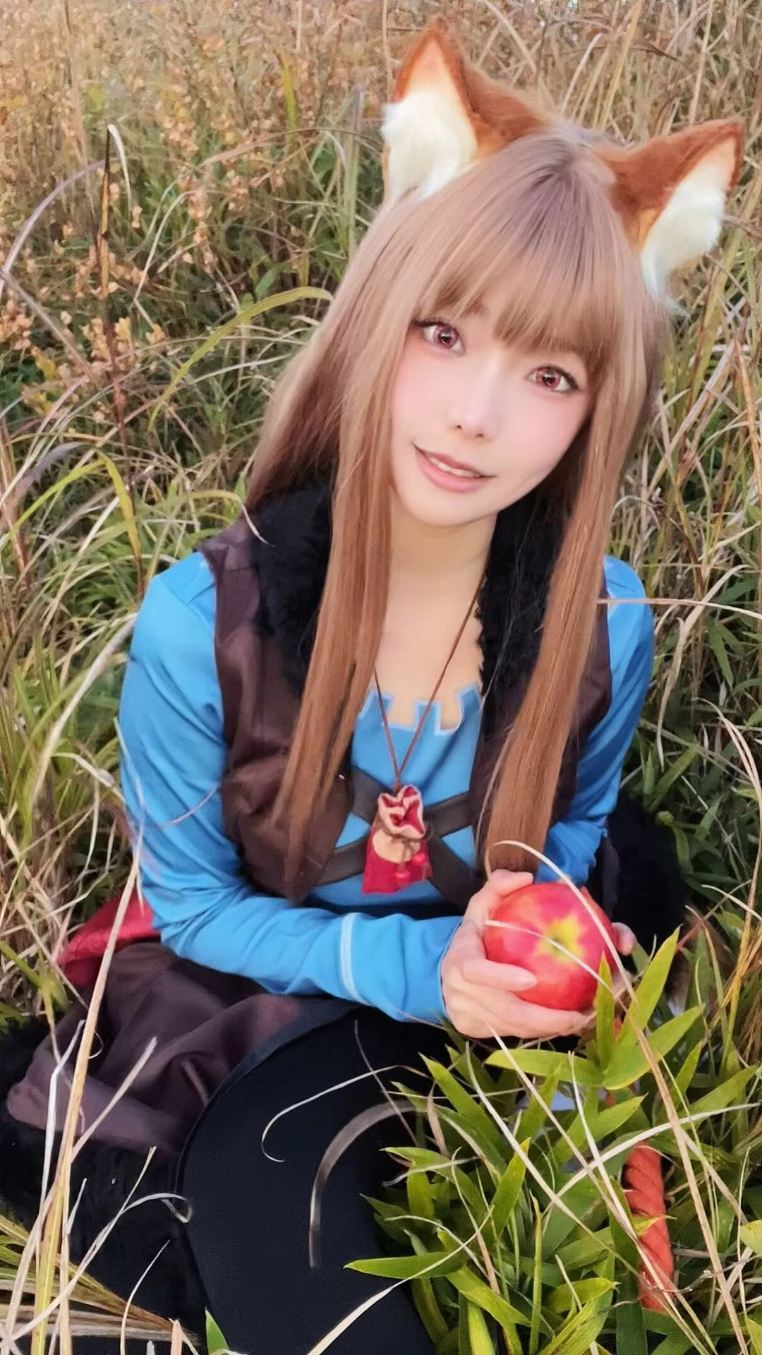 Coser Ely_eee: Holo's Radiant "Soft Glow" Cosplay Amidst Warm Grass