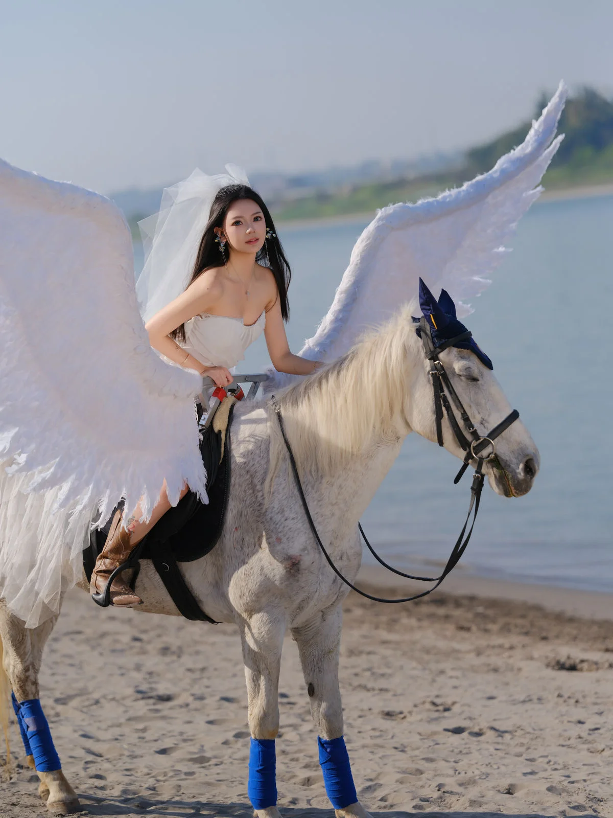Step into a world where mythology meets modern art in this breathtaking scene from the YiTuYu艺图语 Art Language Vol.8882 z collection. The image captures a moment of pure transcendence as a muse, dressed in a flowing snow-white gauze skirt, rides a majestic Pegasus along the serene shoreline. The choice of fabric adds a layer of ethereal lightness, fluttering softly against the backdrop of the calm waters and golden sand. There is an undeniable sense of grace in her posture, reflecting a harmonious connection between human and nature. This visual narrative goes beyond mere fashion photography, it is an exploration of fantasy and elegance. The soft color palette and the grand scale of the wings create a cinematic atmosphere that feels both nostalgic and avant-garde. It invites the viewer to escape the mundane and embrace a dreamscape filled with wonder and poetic beauty, making it a perfect piece of inspiration for those who appreciate high-concept visual storytelling and sophisticated aesthetic vibes that resonate with the soul.#EtherealAesthetic #MythicalVibes #FashionPhotography #PegasusDream #VisualArt