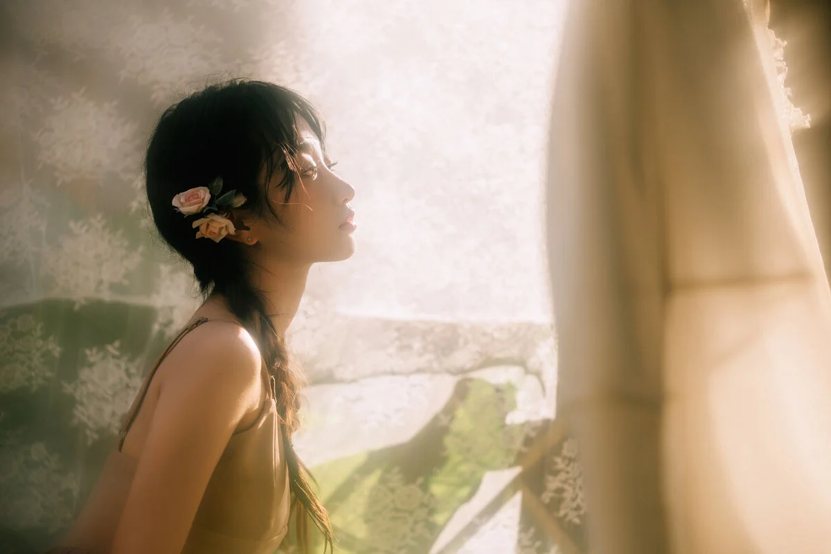 Bathed in the soft and ethereal glow of a sunlit window, Lin Mu Ting Zi embodies the timeless elegance of French-style aesthetics in this YiTuYu Vol.8928 collection. The scene is a masterclass in visual storytelling, where the delicate interplay of light and shadow highlights the graceful curves of her silhouette and the soft texture of her skin. Wearing a sheer, flowing garment that whispers of romance, she stands amidst blooming roses, creating a mood that is both intimate and poetic. Her gentle expression and the way she interacts with the natural elements evoke a sense of nostalgic longing and quiet beauty. This artistic series captures more than just a pose, it captures a feeling of serene solitude and refined femininity, making it a perfect inspiration for those who adore minimalist yet deeply emotional photography. The lush greenery outside the window provides a vibrant contrast to the delicate interior, grounding the ethereal atmosphere in a moment of pure, natural connection.