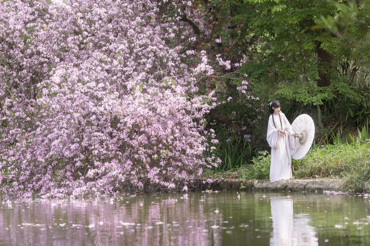 Step into a realm of poetic beauty where time seems to stand still among the blooming spring branches. Qiao Qiao embodies the essence of an ancient muse, dressed in a flowing Hanfu that mirrors the delicate pastel hues of the blossoms above. The soft texture of the fabric and the intricate traditional hair ornaments highlight a sophisticated aesthetic that honors cultural heritage while remaining timelessly elegant. As she wanders by the misty lakeside, every gesture is filled with a quiet grace, creating a serene dialogue between the soul and the landscape. The composition uses a soft focus and a dreamlike palette to evoke a sense of nostalgia and romanticism, reminiscent of classical paintings. This visual journey captures the fleeting beauty of spring, inviting the viewer to pause and appreciate the harmony of nature and the refined artistry of traditional fashion. It is a perfect blend of visual storytelling and emotional resonance that defines the true spirit of artistic photography.#TraditionalFashion #SpringVibes #ArtLanguage #EtherealBeauty #TravelPhotography