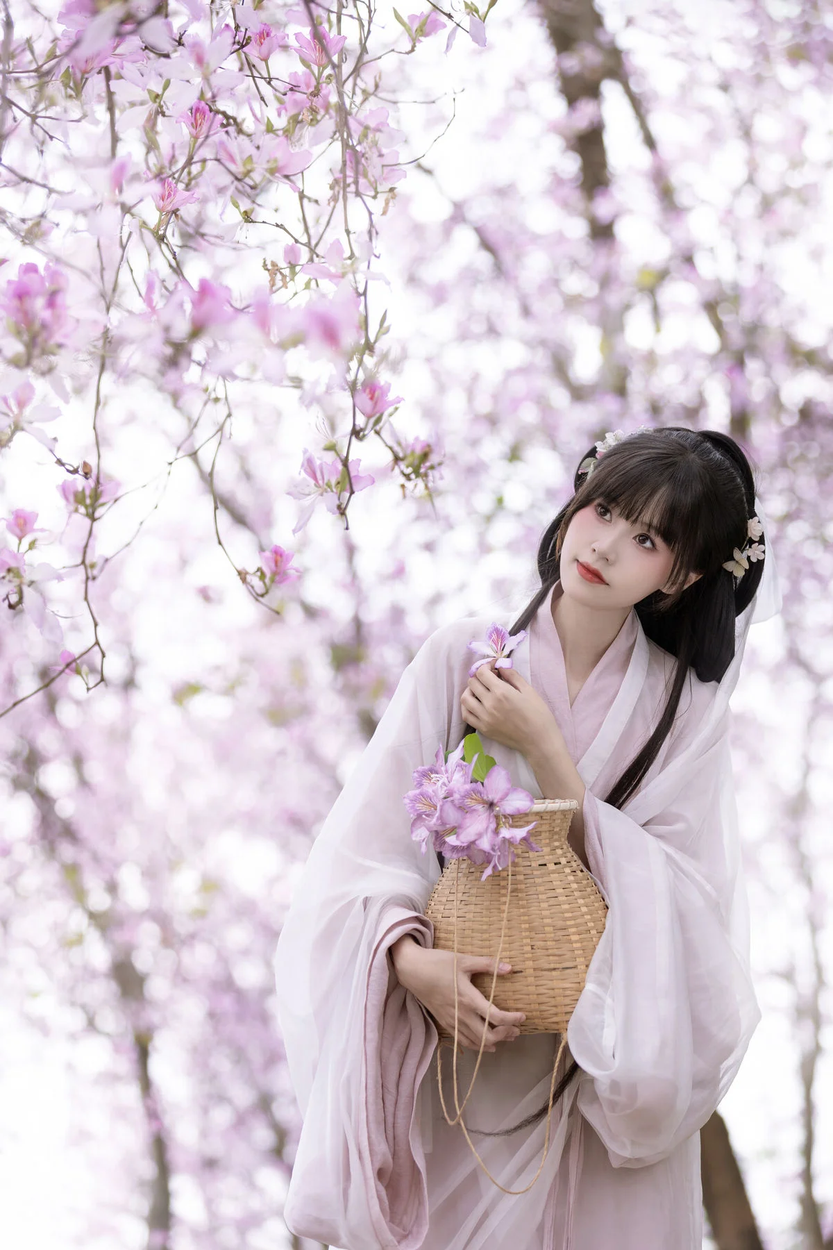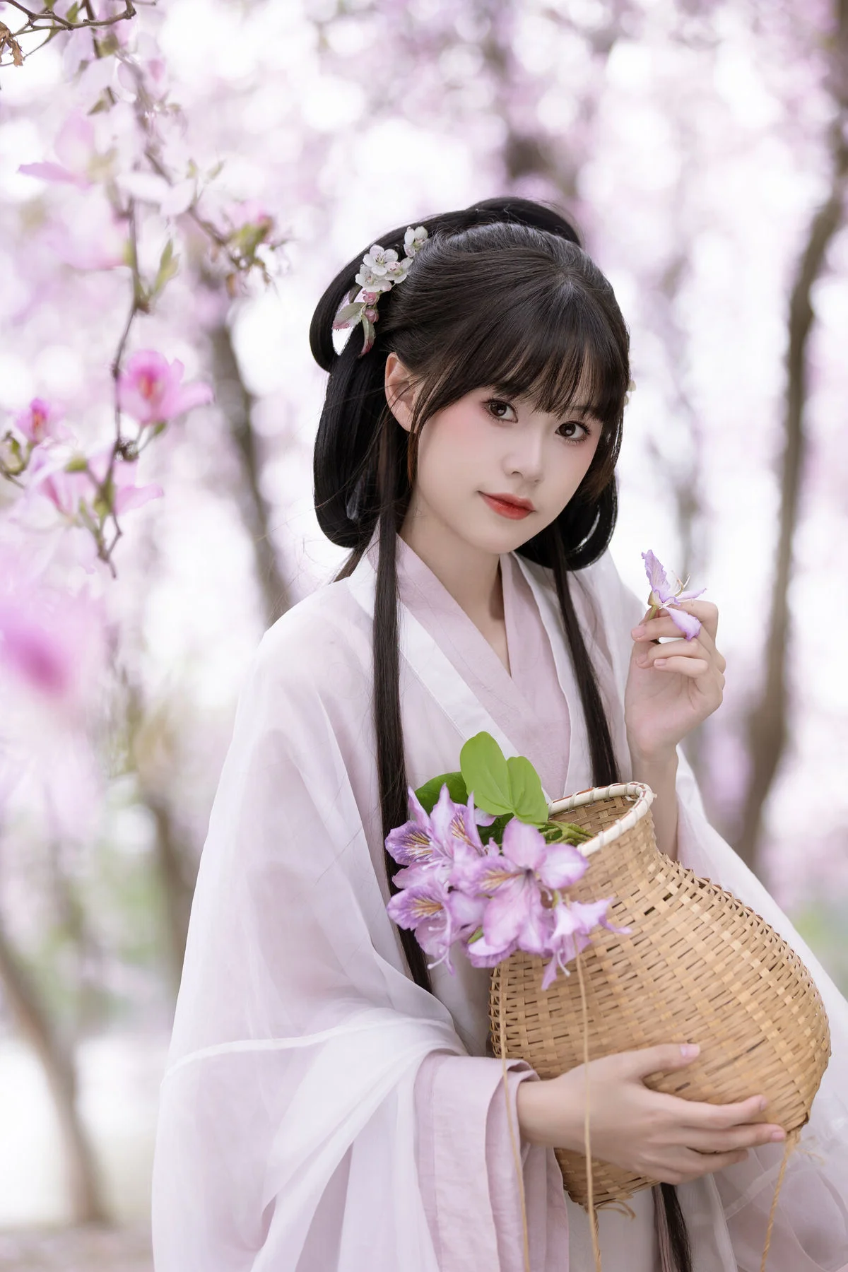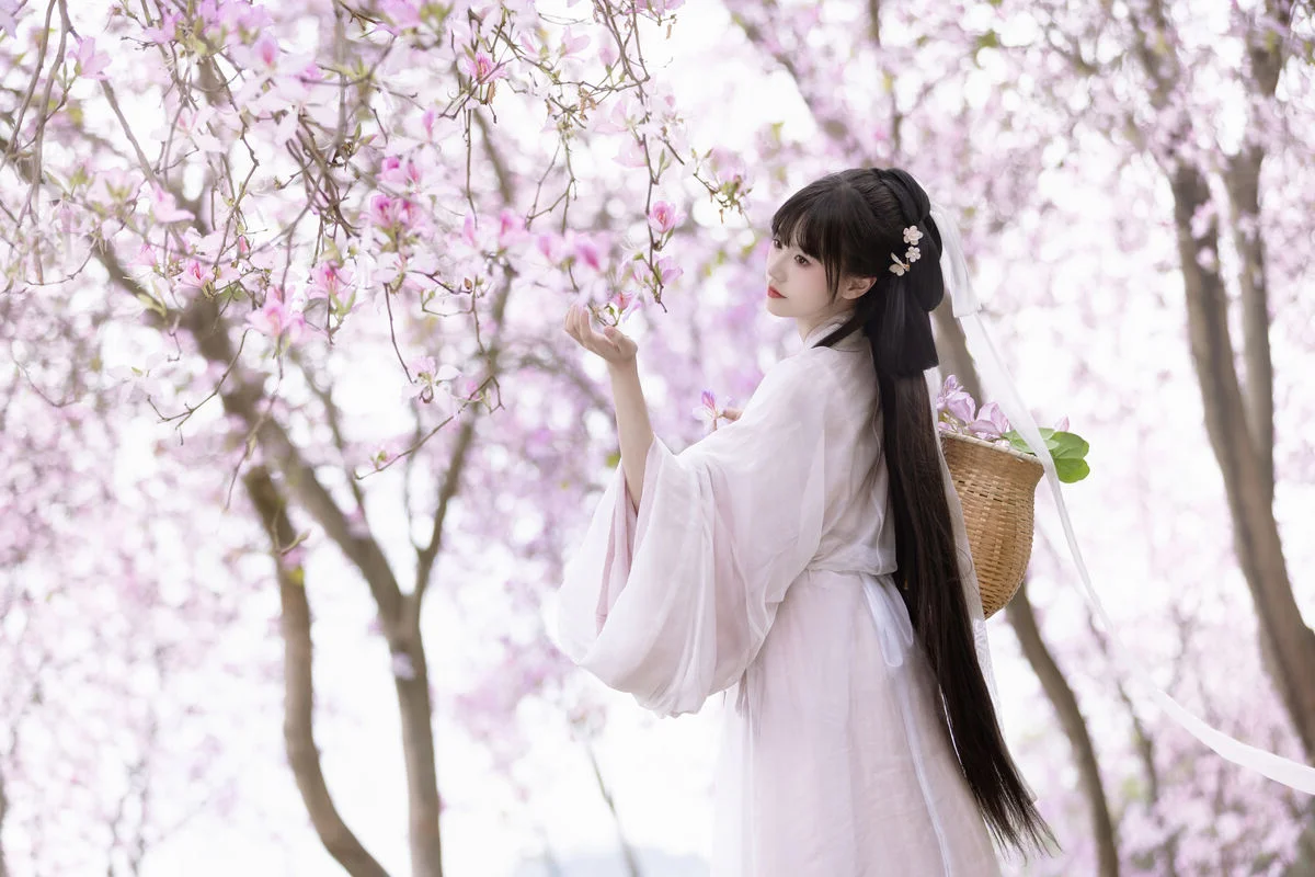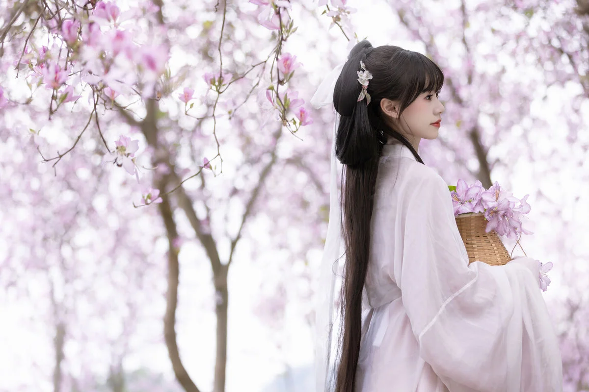 Stepping into a dreamlike spring morning, the muse Gui Yuan Ba Bao Zhou captures the essence of ethereal beauty in the YiTuYu Vol.8891 collection. Dressed in a flowing Hanfu featuring a delicate gradient of peach pink and vibrant sunset orange, she stands gracefully amidst a canopy of blooming blossoms. The lightweight chiffon fabric dances with the gentle breeze, reflecting a sophisticated sense of style that honors traditional aesthetics. Her gentle expression and the classic round fan in hand evoke a sense of nostalgia and poetic romance, as if she has just stepped out of an ancient painting. The soft natural lighting enhances the pastel tones of the scene, creating a visual symphony of color and emotion. This artistic portrayal is a celebration of spring renewal and the timeless elegance of cultural fashion, inviting the viewer to lose themselves in a world of tranquility and floral enchantment.#HanfuFashion #SpringAesthetic #EtherealBeauty #CulturalHeritage #FloralPhotography