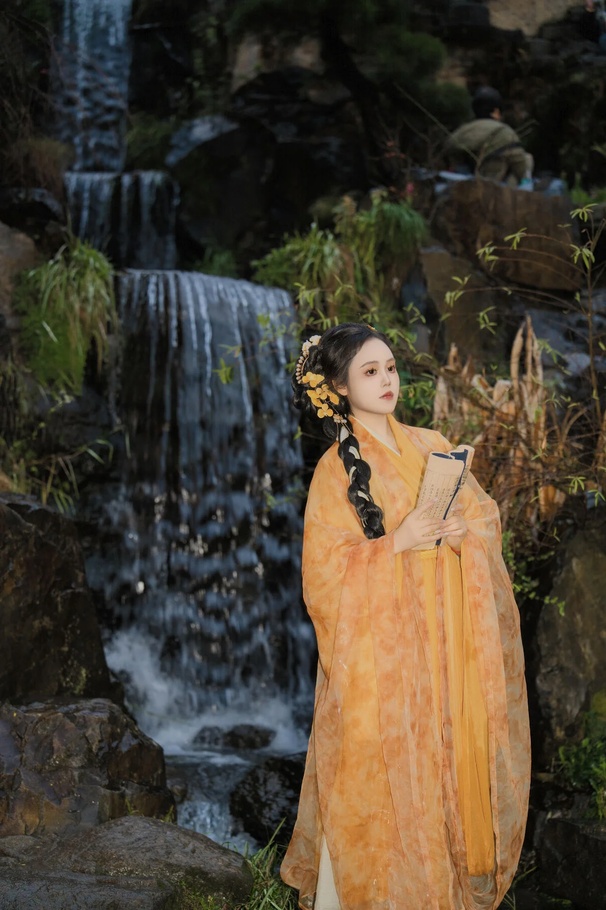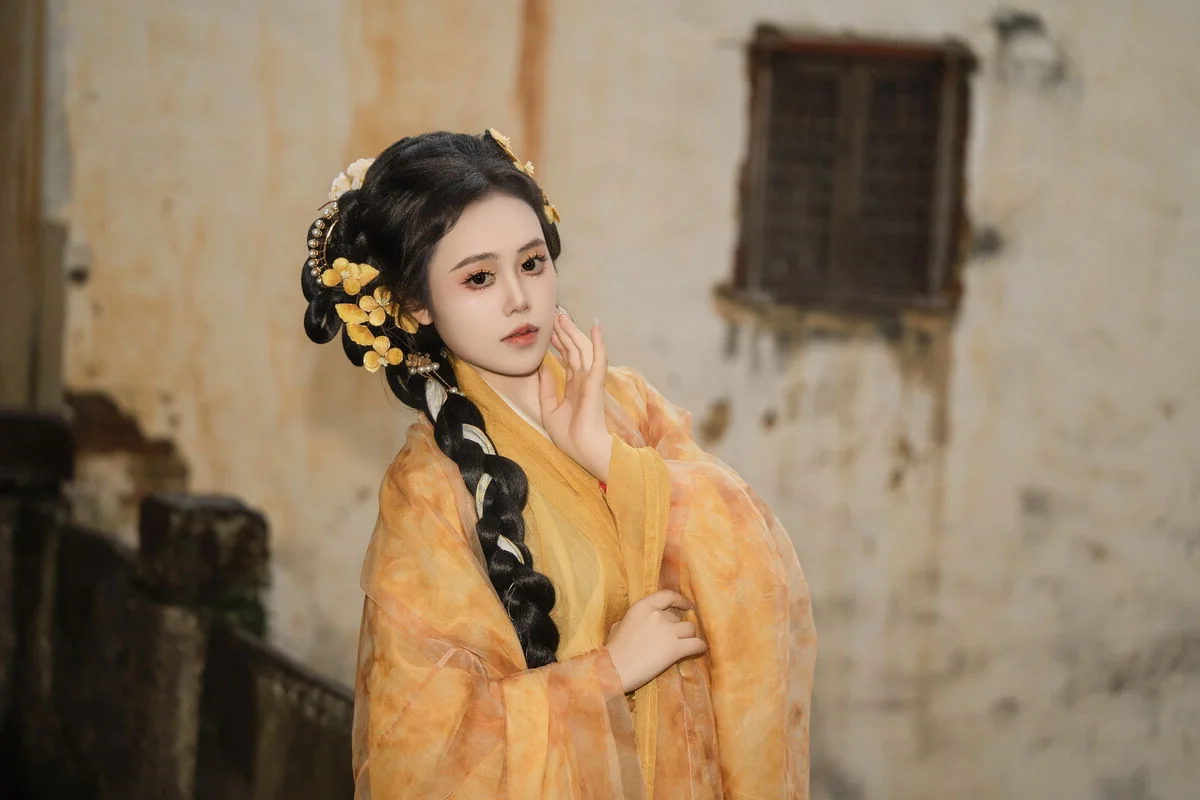 Stepping into a realm of timeless elegance, Zhou Feng Qin captures the essence of a classical muse in the YiTuYu Art Language Vol.8913 collection. Dressed in a flowing Hanfu of vibrant amber and golden hues, she stands as a striking contrast against the misty, moss-covered stone steps of an ancient garden. The delicate, translucent fabric flows gracefully with every movement, echoing the soft whispers of a cold autumn rain and creating a dreamlike atmosphere. Her expression is one of quiet contemplation and soulful depth, drawing the viewer into a nostalgic journey through history and visual poetry. The intricate hair ornaments and the long, braided silhouette showcase a profound appreciation for traditional aesthetics and artistic storytelling. This editorial is more than just a fashion statement; it is a poetic blend of heritage and nature, perfect for those seeking inspiration in the serene beauty of the Orient and the hauntingly beautiful vibe of a rainy autumn afternoon.#TraditionalFashion #ZhouFengQin #ArtLanguage #EtherealBeauty #OrientalStyle #Hanfu #YiTuYu
