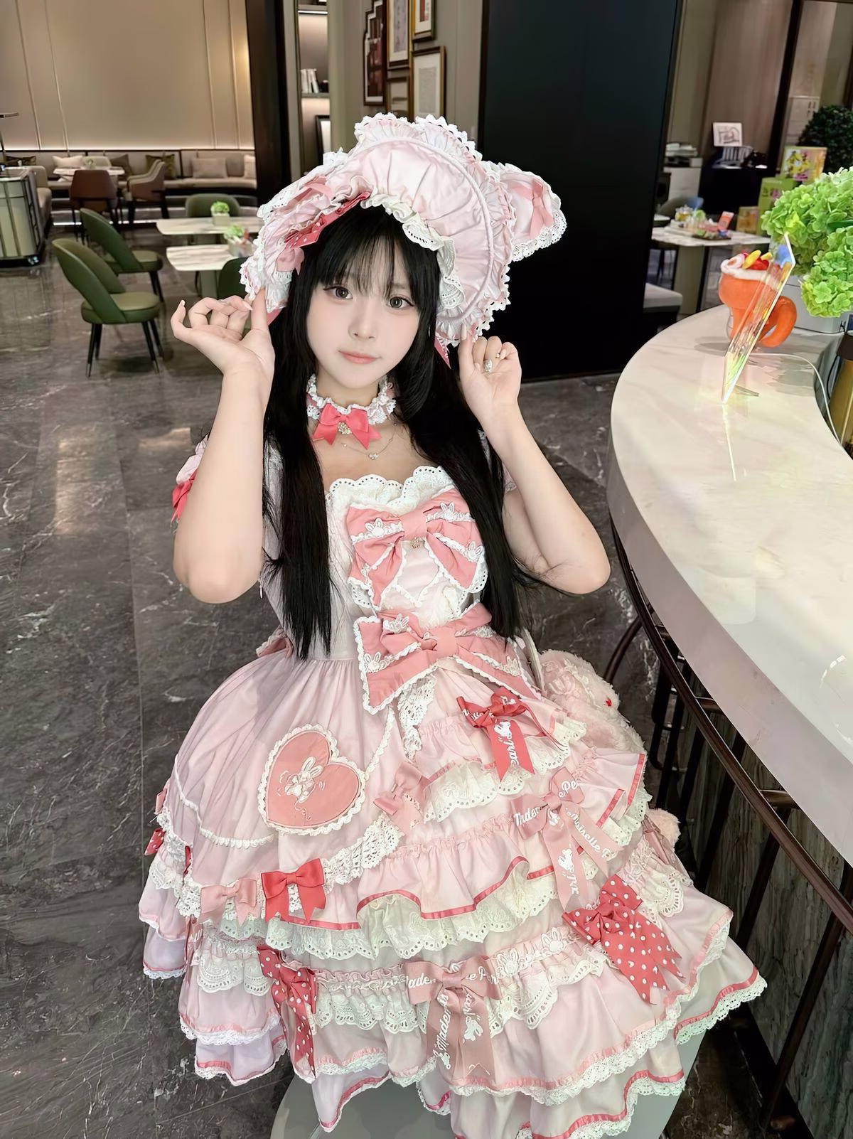 The image unveils a dreamy and sweet scene where a beautiful girl shines brightly She wears a form-fitting pink dress accentuating her graceful curves Her gentle beauty is further enhanced by white knee-high socks with pink bows creating a style both adorable and alluring The girl sits comfortably on a soft bed surrounded by romantic pink decor Her hand gently holds a blue and white striped swim ring reminiscent of vibrant summer days and sunny beach trips The picture evokes a fresh and dreamy feeling like an endless summer fantasy The harmonious blend of outfit accessories and setting creates an artistic and emotionally rich composition that draws every eye This truly captures a wonderful moment of feminine beauty and elegance
