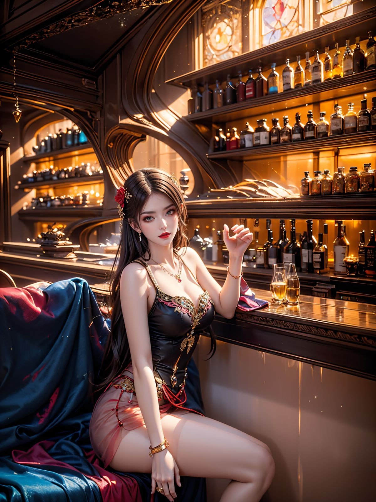 This image showcases the impressive AI Generated Zhetian Jin Yan Part01 character. She is depicted as a powerful yet incredibly seductive female warrior adorned in exquisite fantasy armor. Every detail from her dark flowing hair to her captivating gaze is rendered with realistic AI graphics emphasizing her mystical beauty. The intricate metallic armor with its elegant curves not only provides protection but also accentuates her alluring physique. This is more than just an image it is a work of AI graphic art opening a gateway into the enchanting fantasy world of Zhetian. Jin Yans regal beauty and inherent strength are sure to captivate every viewer.