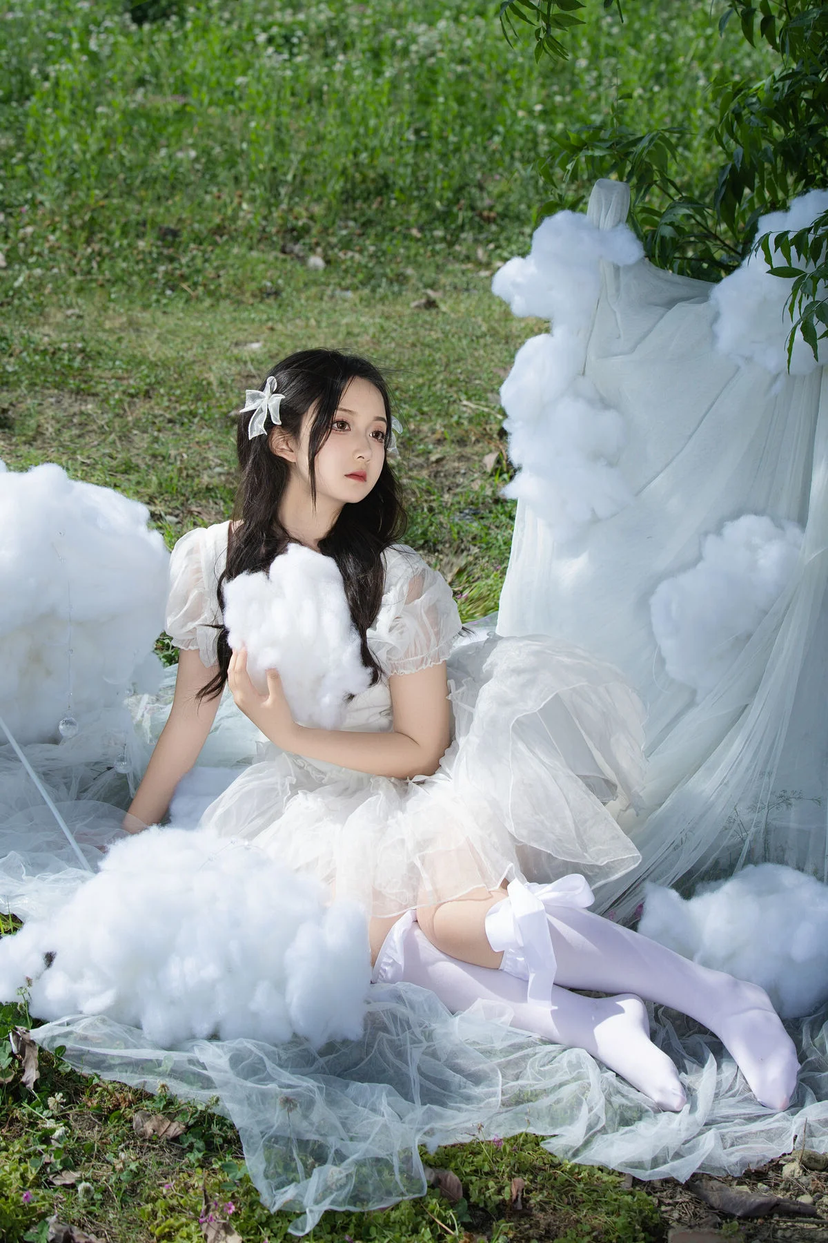 For those who appreciate the intersection of high fashion and dreamlike storytelling, these photographs provide a refreshing perspective on modern beauty. The soft shadows and bright, clean backgrounds make this set perfect for mood boards, digital art inspiration, or simply as an appreciation of professional photography. Experience the serene beauty of Gao Gao Zhang Gao Gao as she brings this cloud-inspired vision to life through the lens of YiTuYu.