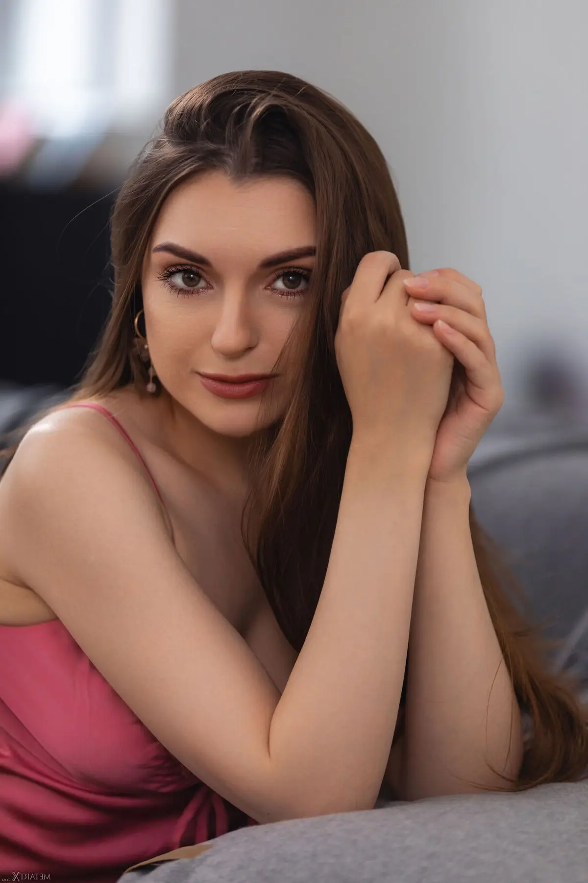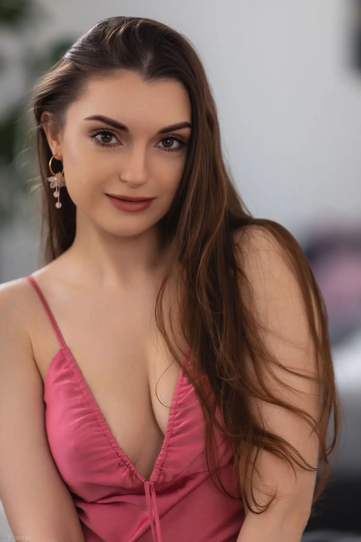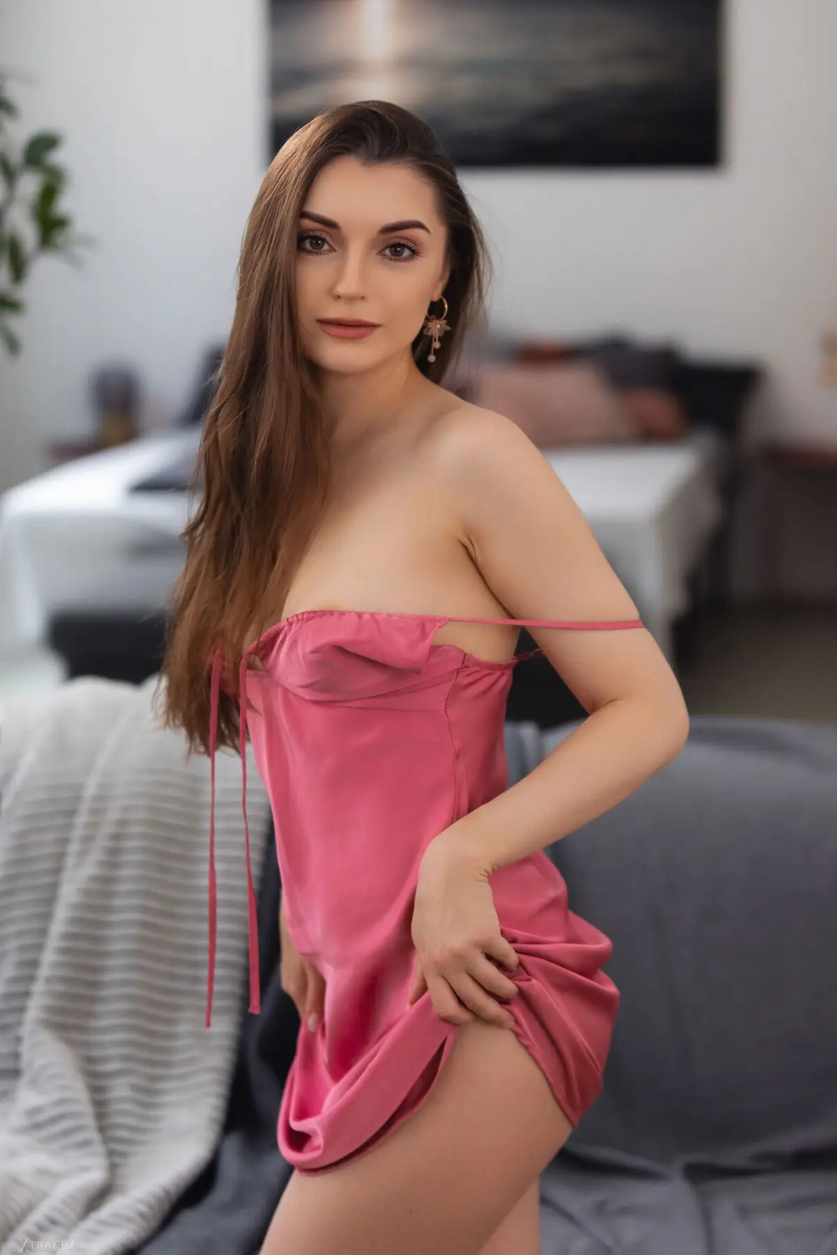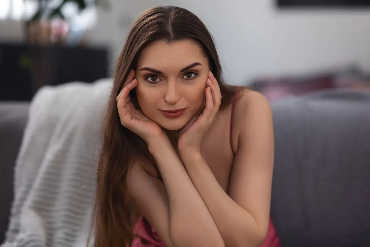 Immerse yourself in the exquisite charm of Monika May as captured in the "Melting Slowly Part1" collection. This image beautifully portrays Monika in a soft flowing pink slip dress highlighting her grace and innate femininity. Her gentle gaze and subtle gesture of touching her shoulder strap create an intimate and alluring atmosphere. Each moment seems to melt slowly revealing her comfort and elegant demeanor. This is a genuine photographic artwork inviting viewers to explore the emotional depth and confident poise of Monika May.#MonikaMay #MeltingSlowly #NaturalBeauty #FeminineCharm #ElegantStyle