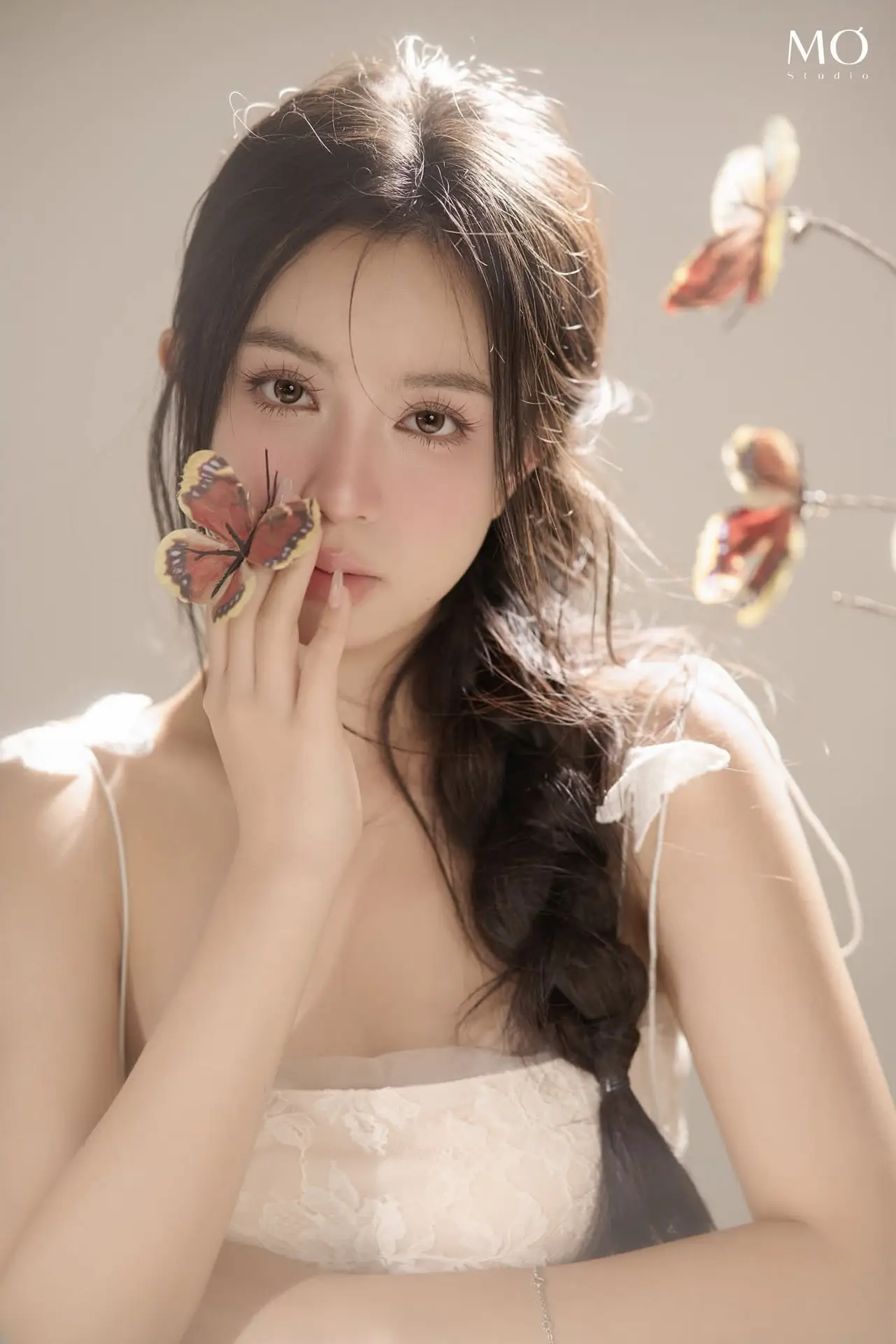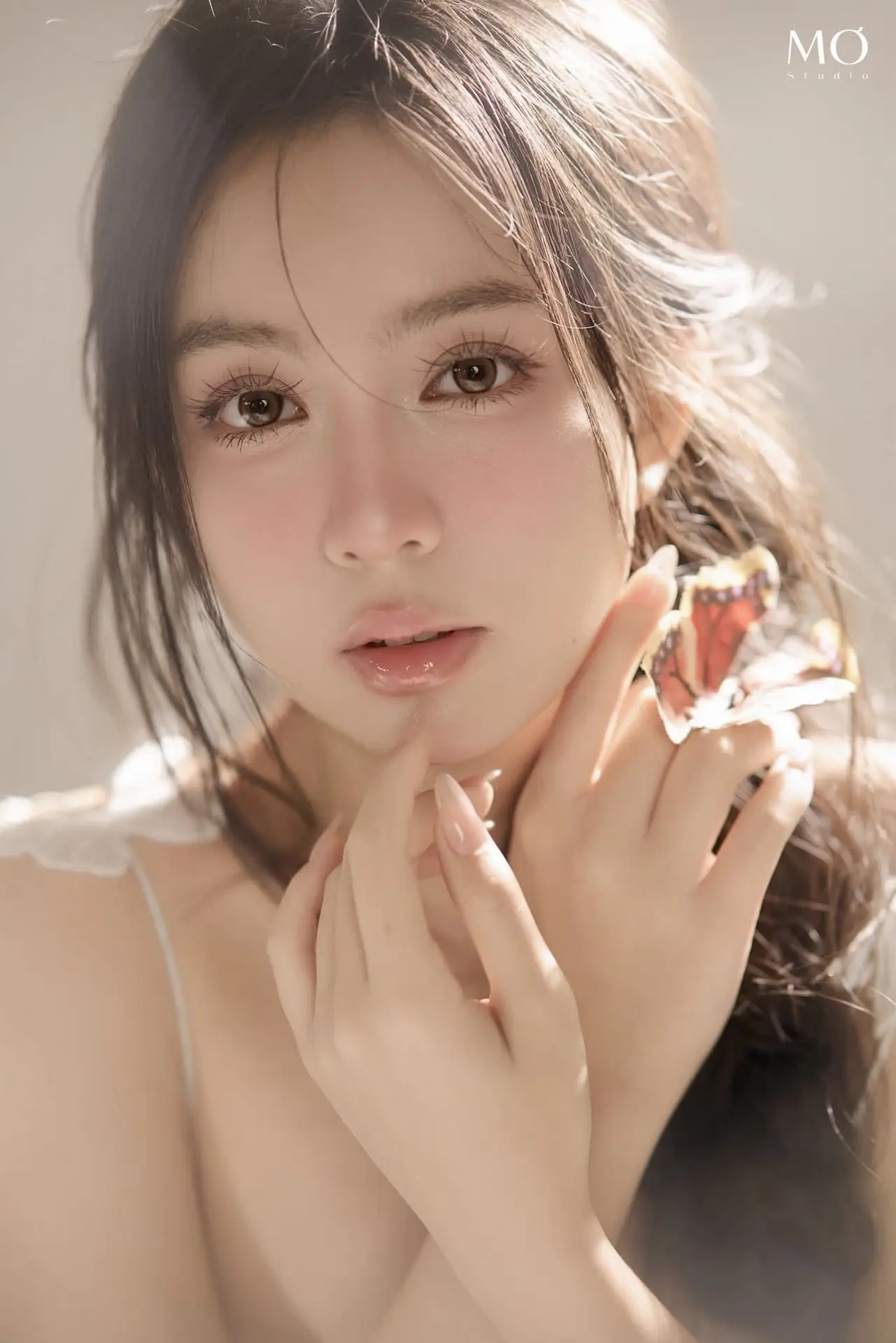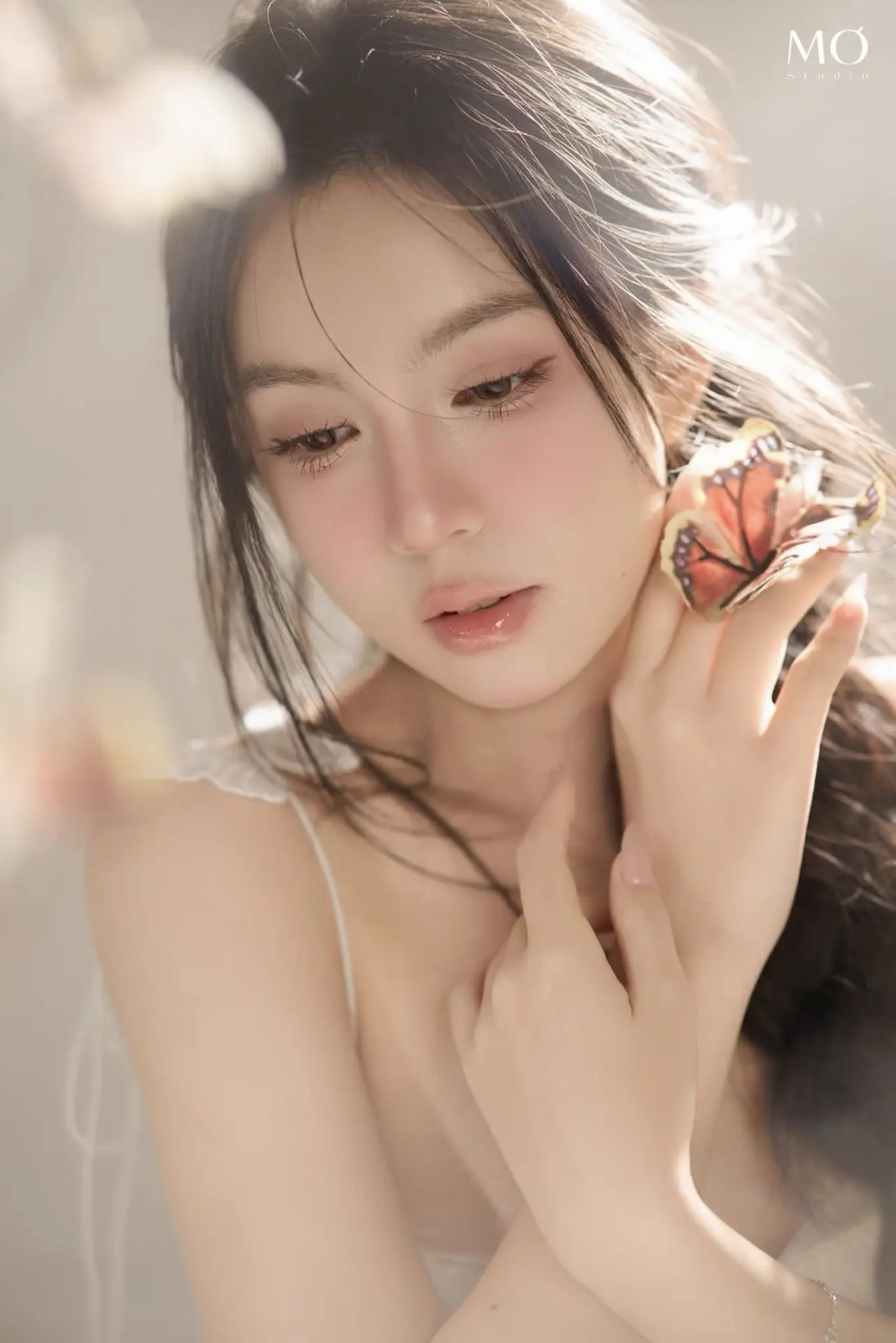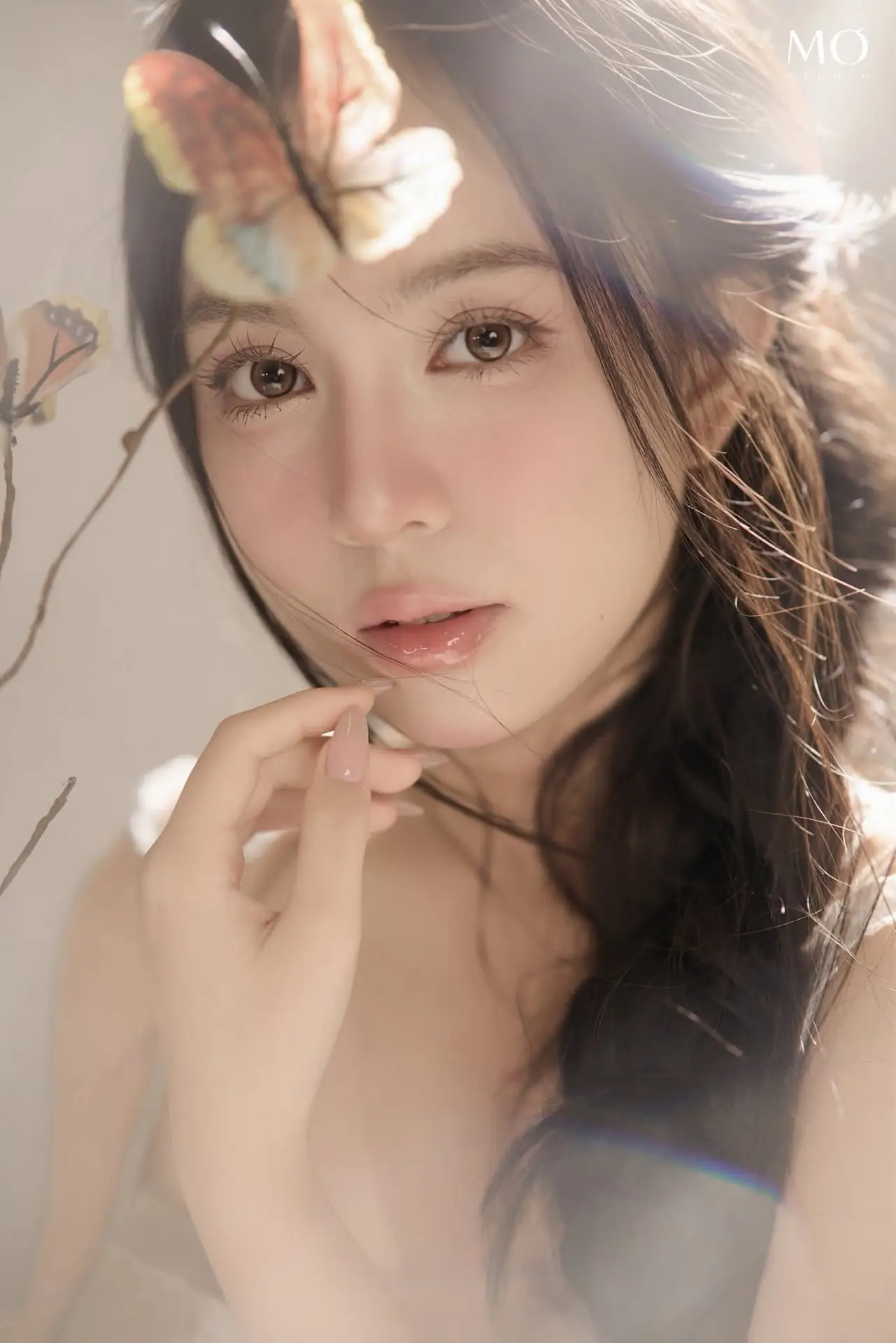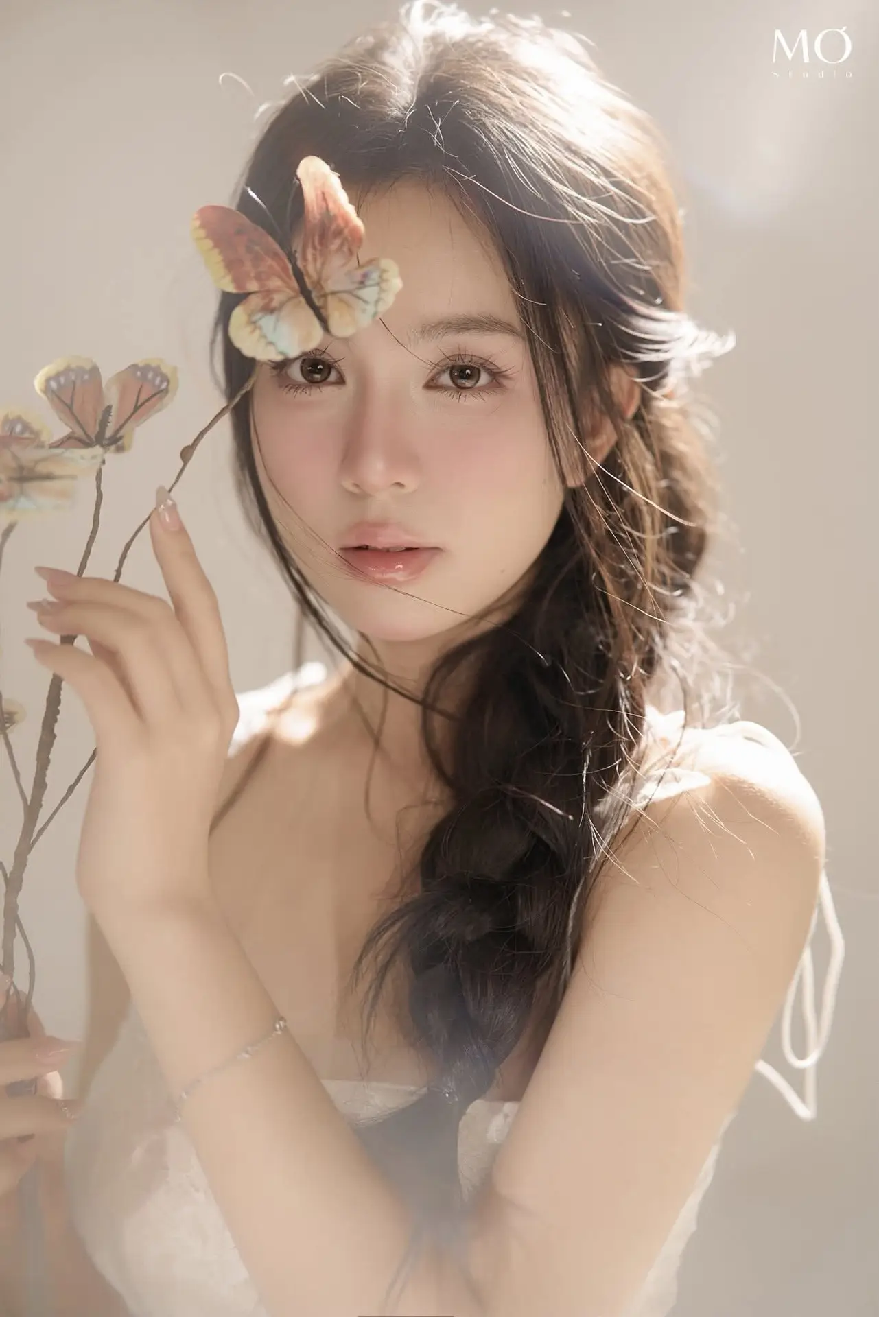 This photograph beautifully captures the ethereal beauty of a gentle girl, akin to a muse stepping out of a fairytale. Bathed in soft light, her delicate face and clear eyes radiate an exquisite purity and captivating charm. Delicate flowers or butterflies gracefully float around her, creating a romantic and dreamy setting that further accentuates her fragile beauty. With flowing hair and a light dress, combined with a graceful pose, she conveys a sense of peace and elegance. This is more than just an artistic portrait; it is an ode to natural beauty, grace, and sophistication, destined to touch the hearts of viewers.#EtherealBeauty #GentleMuse #ArtisticPortrait #FloralDream #SoftLight #VGU
