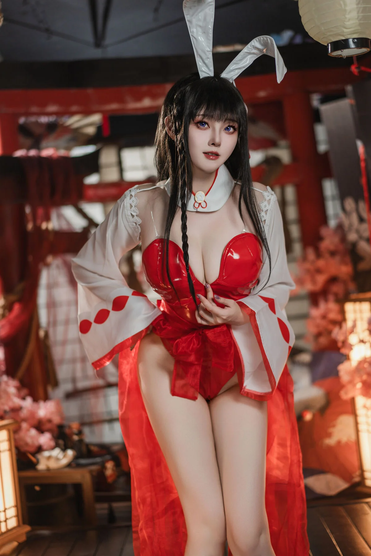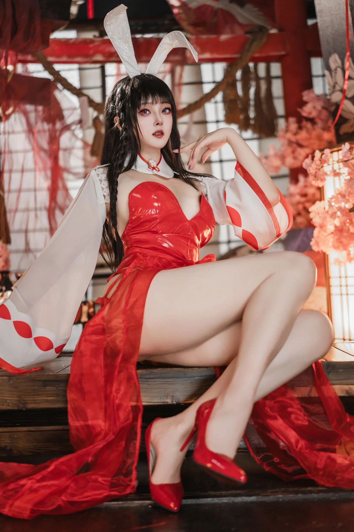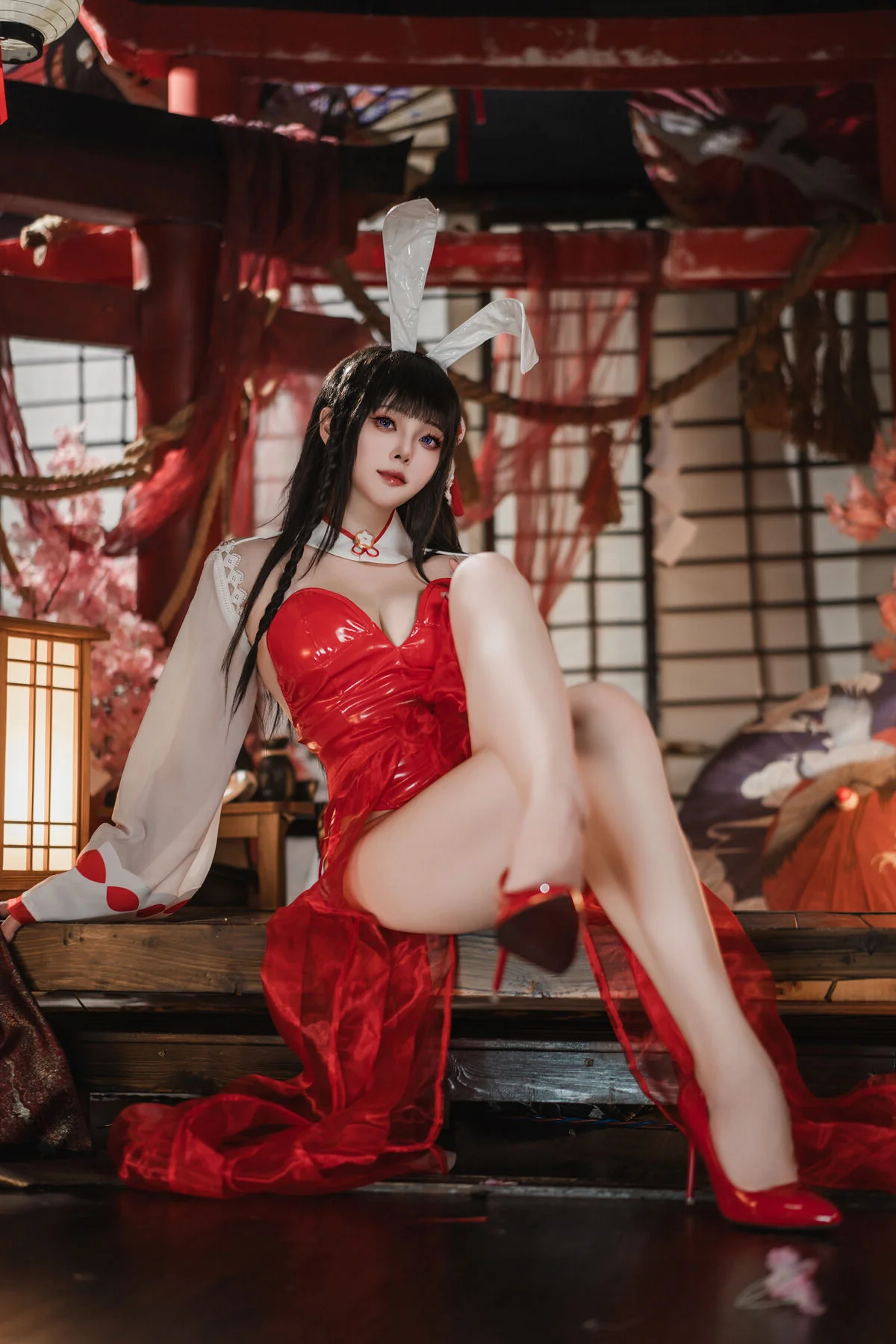 Experience the breathtaking fusion of traditional aesthetics and modern gaming culture with this exclusive Azur Lane Oyama Miko Bunny cosplay collection. Featuring the incredibly talented model Natsuko Xia Xia Zi (Natsuko夏夏子), this 72P high-definition photo set captures the essence of one of the most beloved characters from the hit mobile game, Azur Lane.In this stunning gallery, Natsuko Xia Xia Zi perfectly embodies Oyama in the iconic Miko Bunny outfit. The costume design masterfully blends the sacred elegance of a Japanese shrine maiden (Miko) with the playful, bold charm of a bunny girl silhouette. Every detail, from the intricate hair accessories to the vibrant red and white fabric, is highlighted through professional photography that emphasizes both character accuracy and artistic flair.