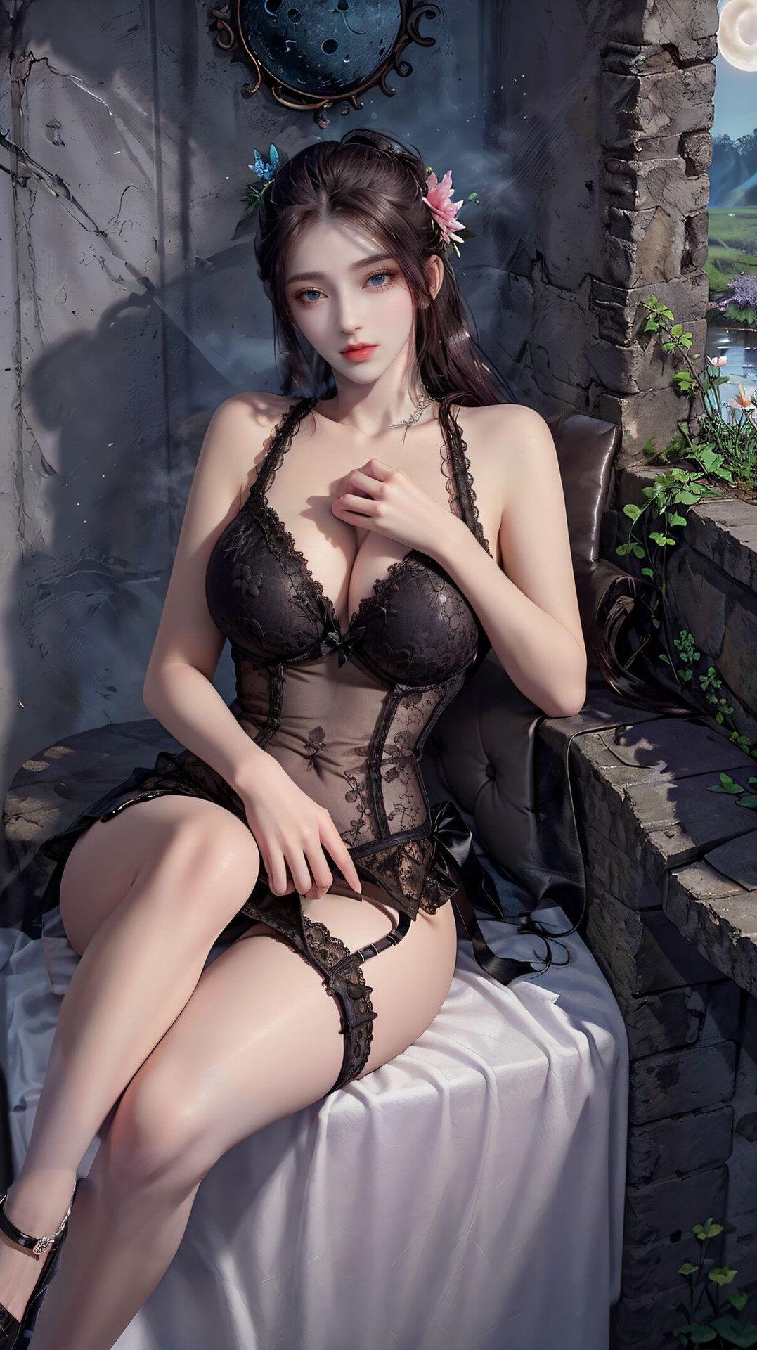 XVG No.3: Elegant Girl in Black Dress Amidst Ancient Garden Charm