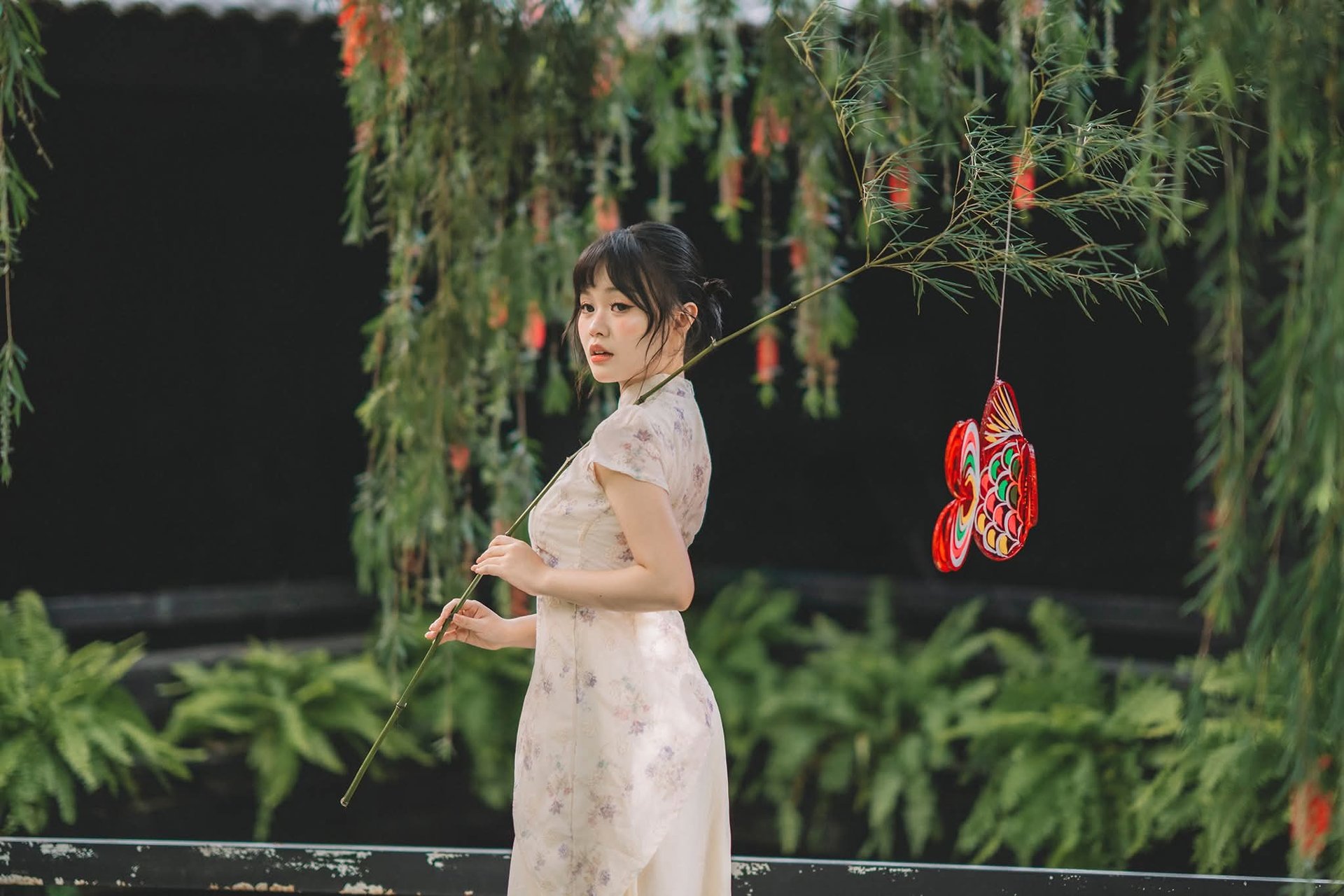 Elegant Ao Dai: Vietnamese Traditional Beauty in a Lush Garden