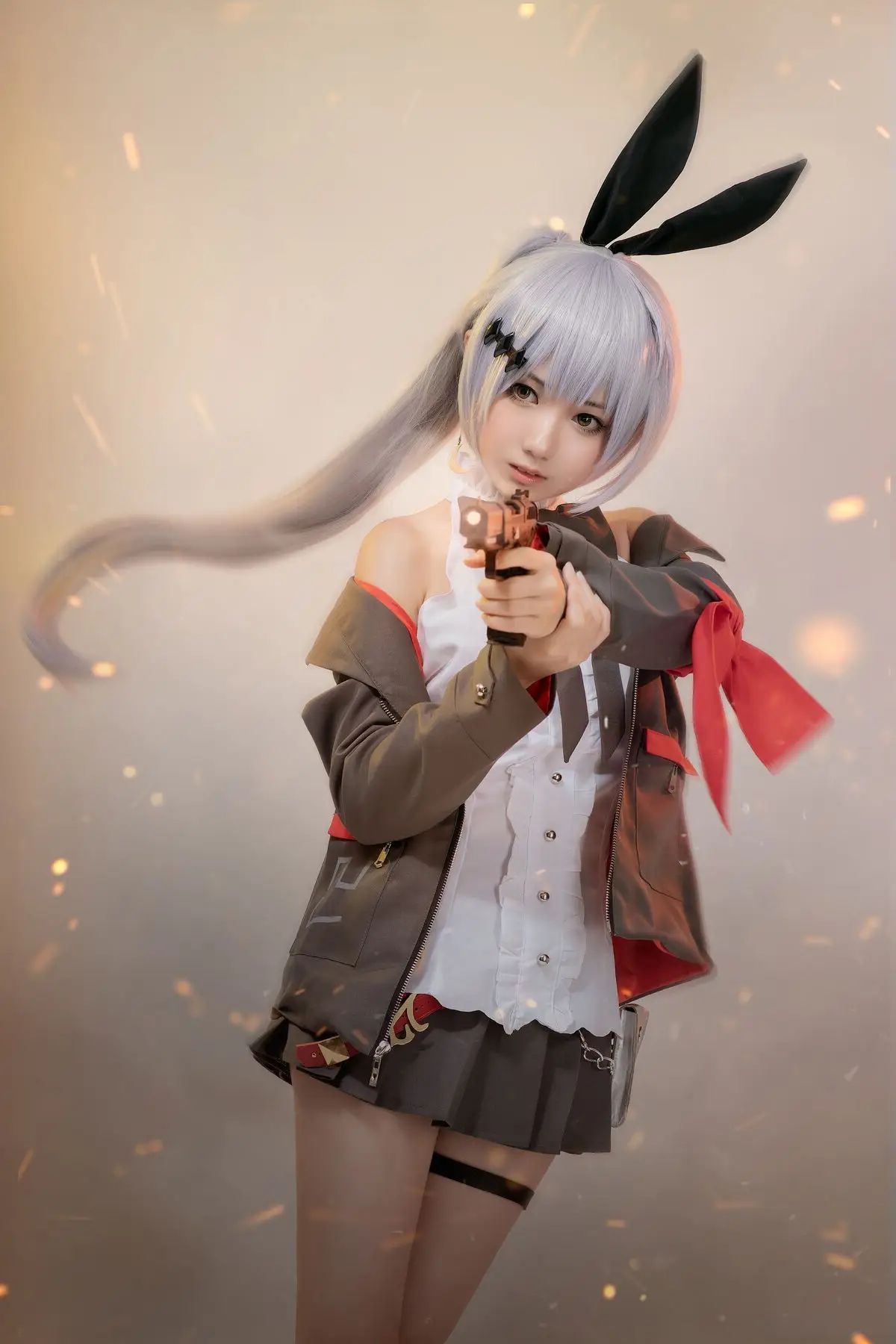 In this captivating photoshoot coser Xiaomuceng Aya masterfully brings to life the character Fn-57 from the popular game Girls' Frontline. She embodies a powerful yet alluring female warrior adorned in a meticulously detailed tactical costume. From the signature bunny ears and flowing silver hair to the firmly held handgun every element is perfectly recreated. Her focused gaze and ready-to-fight stance radiate the courageous and determined spirit of a tactical doll. This is more than just an outstanding portrayal it is a seamless blend of the coser's unique charisma and the essence of Fn-57 offering an impressive and emotional visual experience for viewers.#Coser #XiaomucengAya #GirlsFrontlineFn57 #GirlsFrontlineCosplay #TacticalDoll #AnimeCosplay