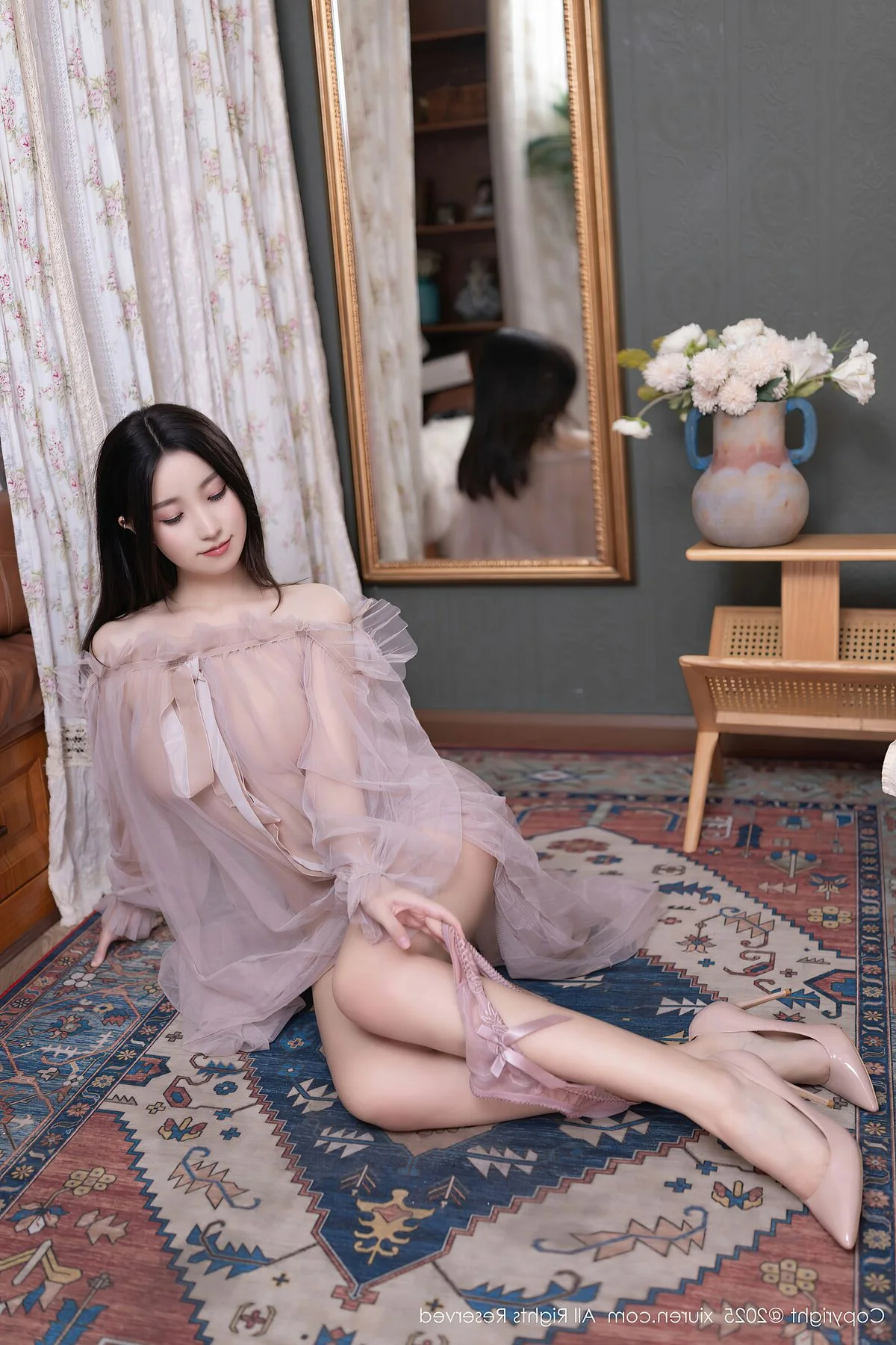 This image from the XiuRen No.10752 collection showcases model Xing Ya Da in a truly captivating light. She gracefully poses in a delicate sheer outfit that elegantly accentuates her slender figure and natural curves. Her gaze direct and confident invites viewers into a moment of pure allure and sophistication. Set in a tastefully decorated bedroom with soft lighting and a serene backdrop Xing Ya Da embodies both sensuality and grace. Each pose and expression is meticulously captured transforming the photoshoot into an artistic display of beauty and confidence. This collection celebrates not only her physical attractiveness but also her magnetic presence leaving a lasting impression on anyone who views it.#XingYaDa #XiuRen #Model #AsianBeauty #SheerLingerie #GlamourPhotography