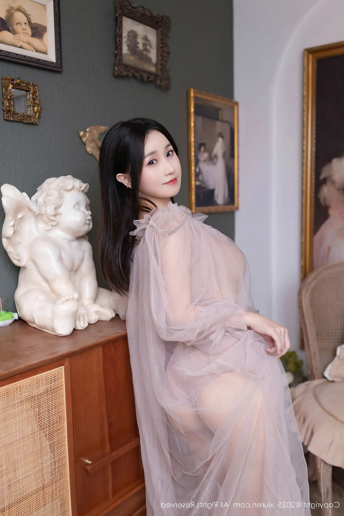 Shelly Shi Li A captures the heart in this stunning XiuRen No.10792 series, blending innocence with a sophisticated artistic edge. Dressed in delicate white lace and sheer fabrics, she stands out beautifully against the moody, dark-tiled minimalist background. The choice of long gloves and silk stockings adds a touch of vintage glamour to the modern concept, creating a visual narrative that is both poetic and bold. Her pose is graceful, reflecting a quiet confidence and a gentle expression that resonates through the lens. The soft lighting accentuates the intricate textures of her outfit, proving that fashion is most powerful when it plays with high contrast between light and shadow. This collection is a masterclass in visual storytelling, where every detail from the interior setting to the model's elegant body language evokes a sense of timeless beauty and inspiration. It is a moment of pure aesthetic pleasure, perfect for those who appreciate the fine art of portrait photography and high-fashion styling.#ShellyShiLiA #XiuRen #ElegantStyle #VisualStorytelling #FashionInspiration