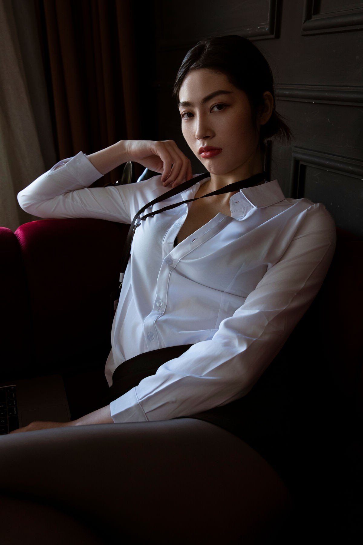 BoBoSocks No.557 Zhiyu: Elegant Chinese Model in Professional Red Suit & Glasses