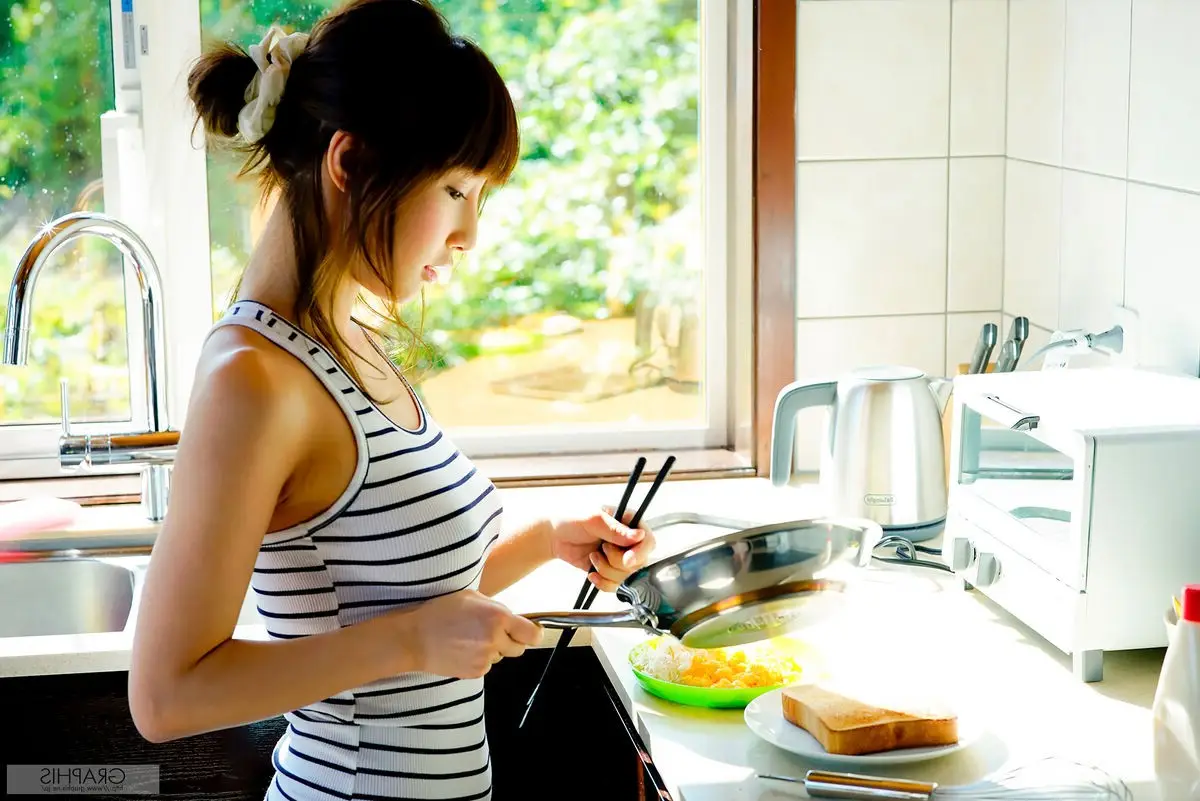 This captivating image beautifully captures JP Shunka Ayami あやみ旬果 in a cozy kitchen setting. Her radiant smile and sparkling eyes exude natural beauty and vitality. Dressed in a simple yet charming outfit, Shunka Ayami gracefully demonstrates her domestic side while preparing a meal, presenting an image of a girl who is both beautiful and capable. This picture is part of the Graphis Gals Part02 collection, where her beauty is subtly and authentically celebrated, offering a sense of warmth and sweetness. She captivates not only with her appearance but also with her bright aura, lighting up the entire space.#ShunkaAyami #AyamiShunka #GraphisGals #JapaneseBeauty #KitchenVibes