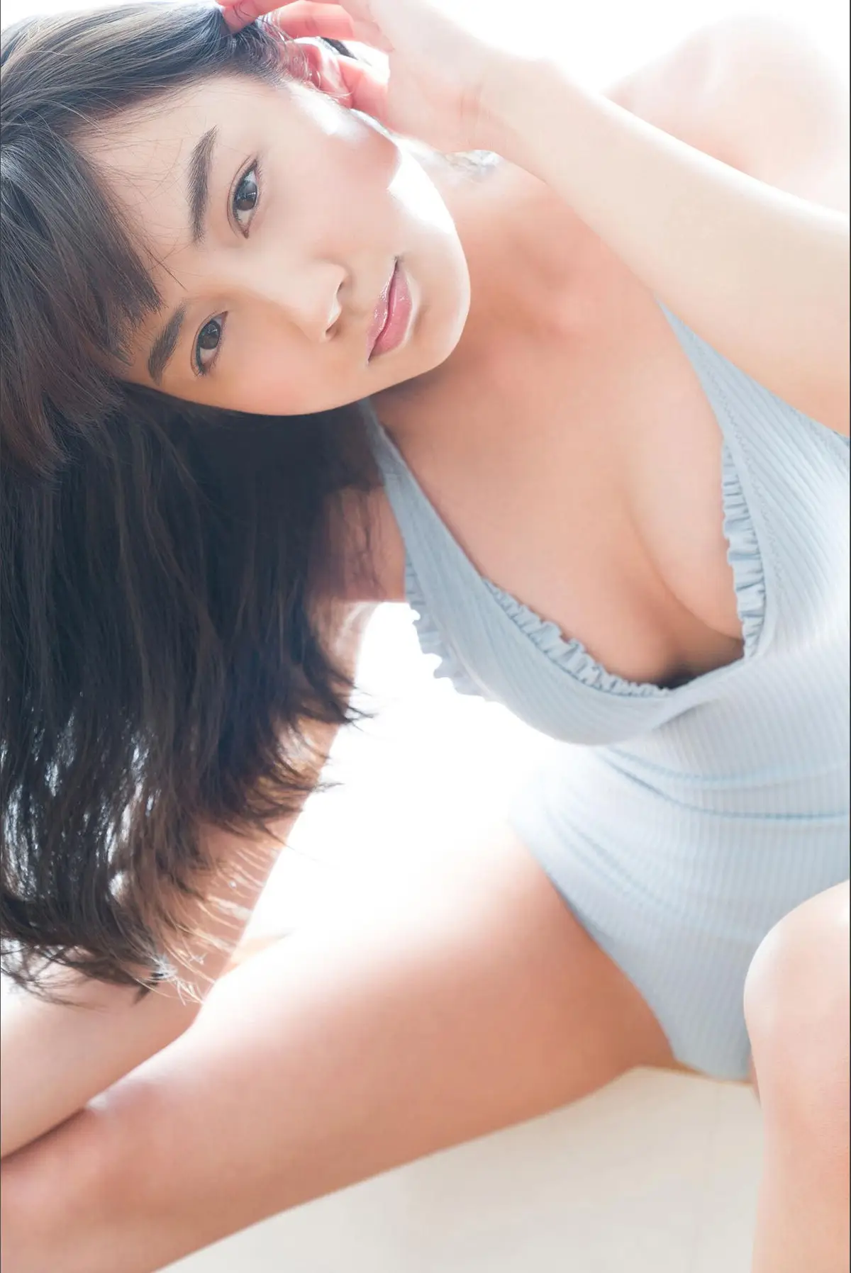 In this captivating image, Risa Yukihira shines with radiant vitality under the bright summer sun. Her confident and alluring demeanor is perfectly captured as she poses on white stairs, one hand gracefully shading her eyes, as if gazing into the vast expanse. Her casual yet stylish attire, combined with a fresh smile, accentuates her natural beauty and appealing physique. The photograph not only showcases Risa's mesmerizing charm but also conveys a sense of refreshing energy and the vibrant spirit of a lively summer day. This is a perfect representation of the youthful allure and undeniable appeal of this talented model and actress.#RisaYukihira #SummerVibes #AsianBeauty #GravureIdol #RadiantBeauty