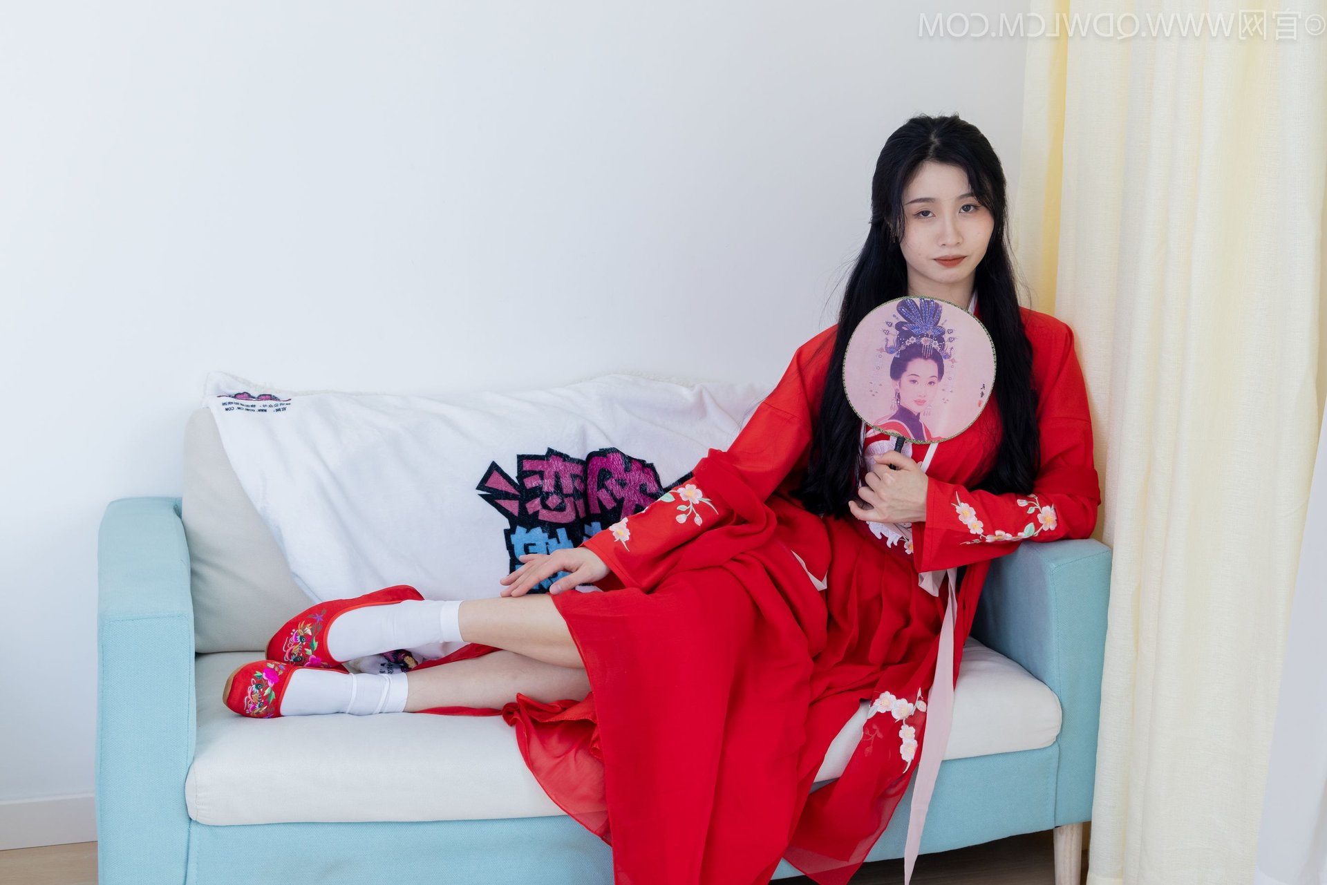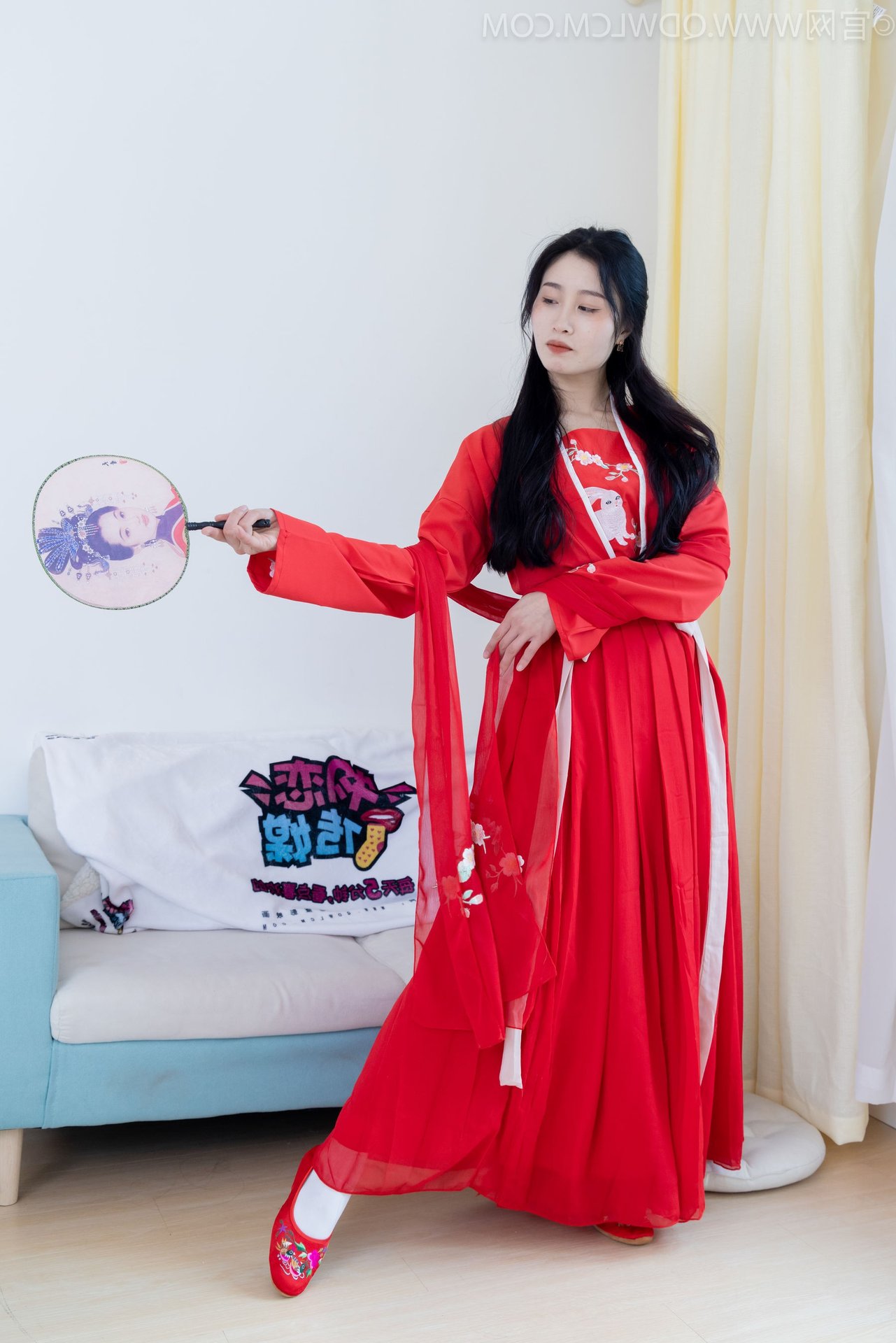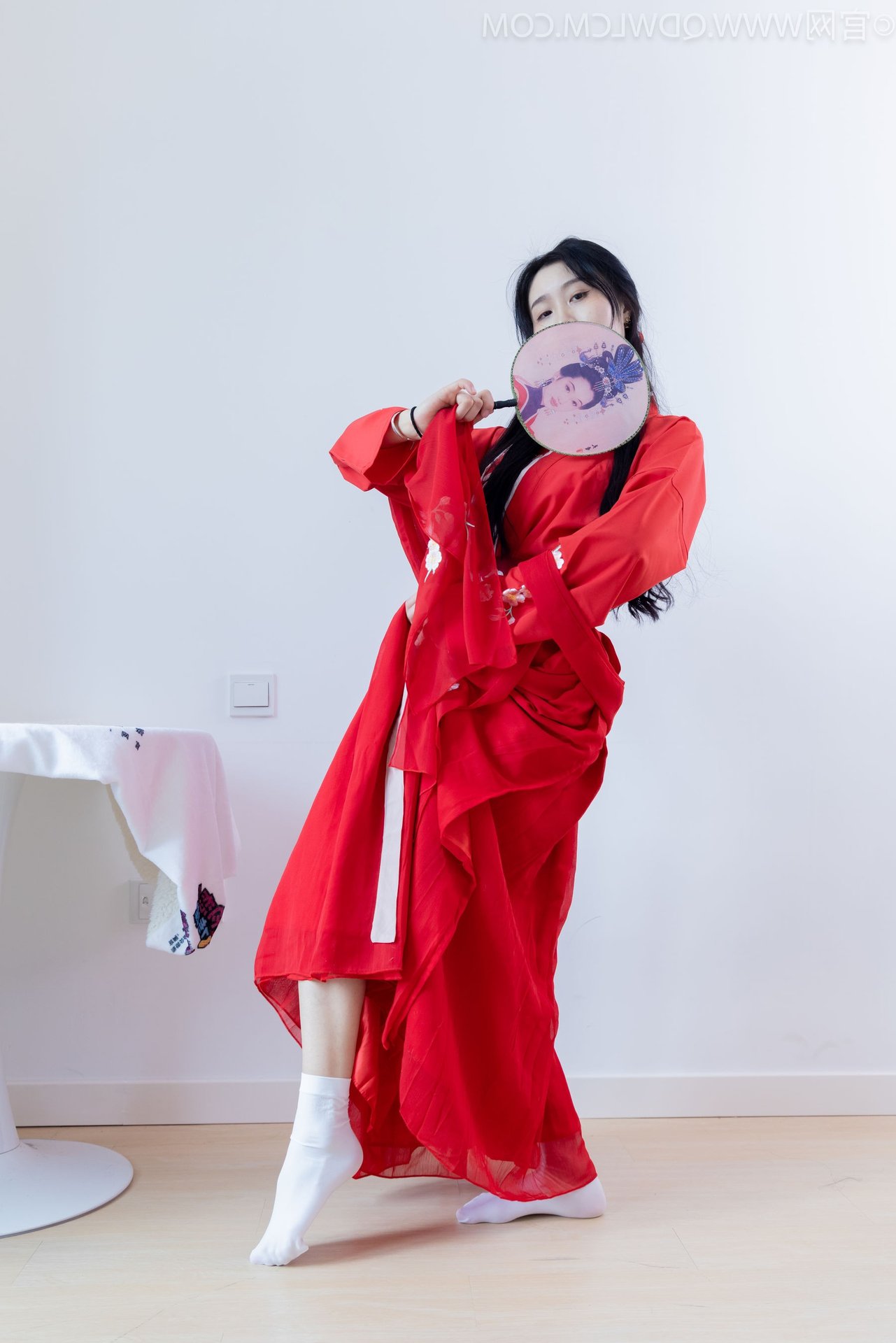 VGU No.192 Graceful Woman in Stunning Red Hanfu & Traditional Fan 1000024611